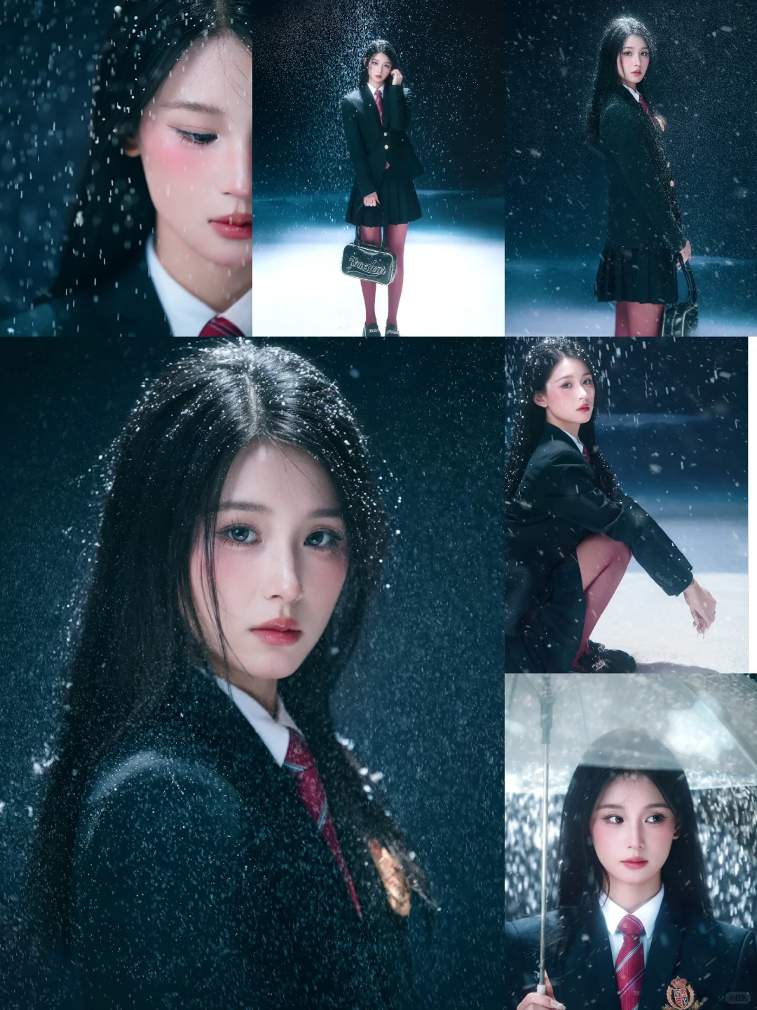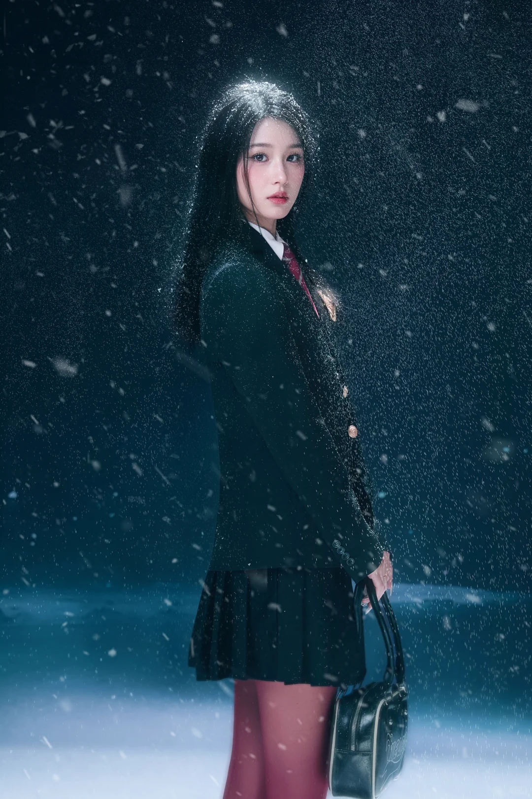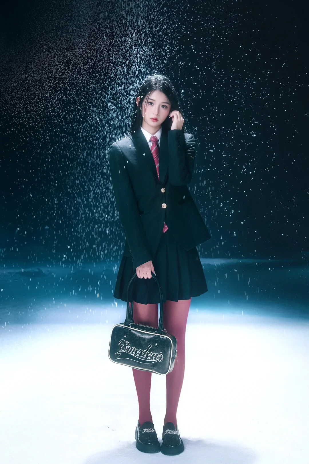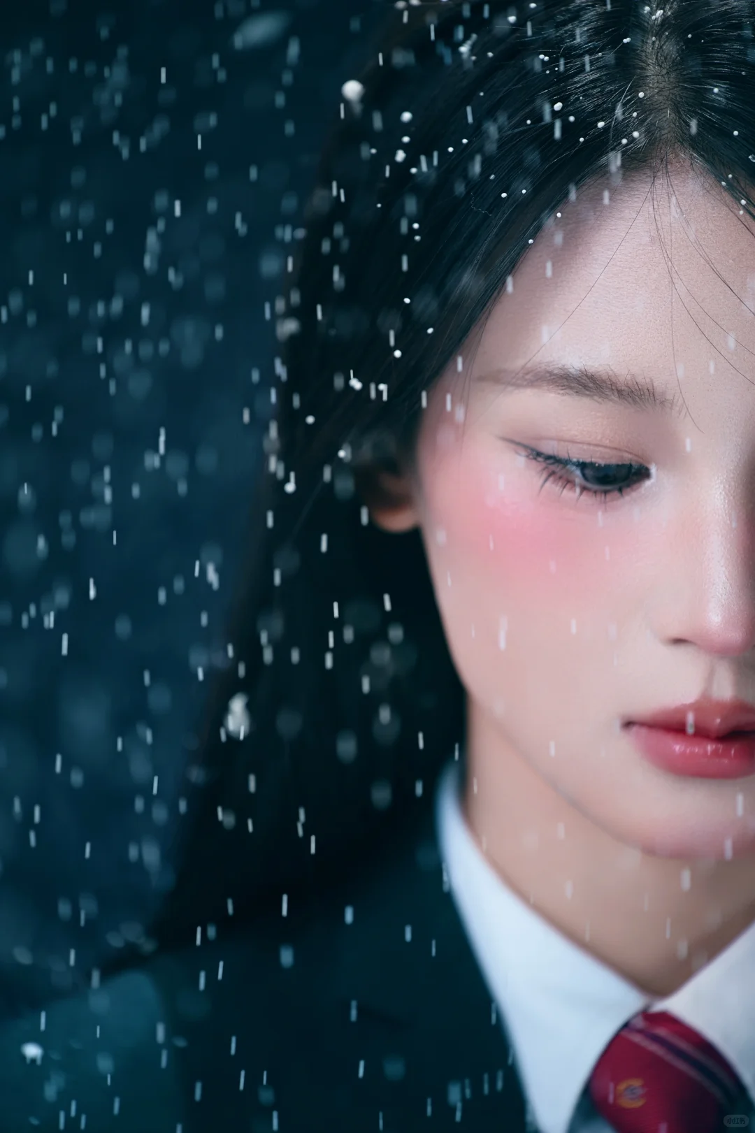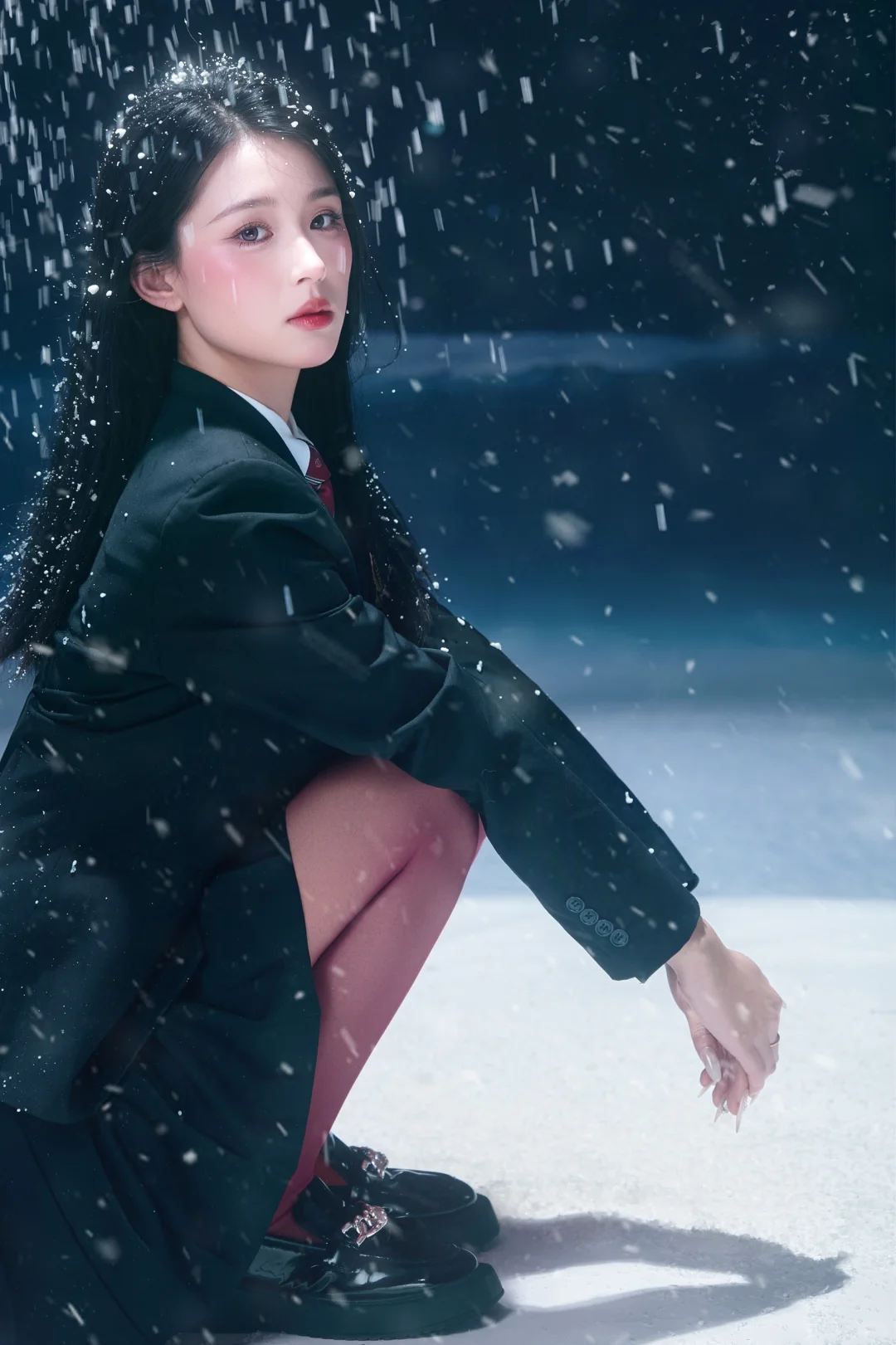 細膩又迷人的光影✨\n融合满天飞舞的雪花\n一身学院风套装➕酒红色丝袜的搭配减龄又不失时尚感\n \n#雪景写真 #写真 #临汾影子摄影工作室 #临汾写真