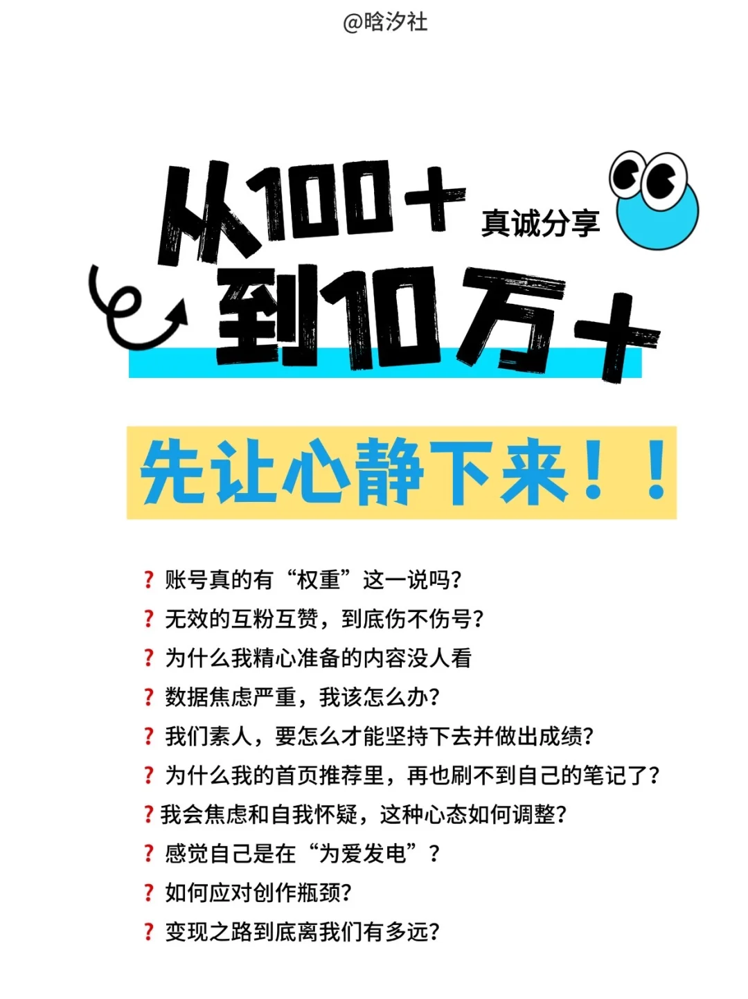🚗 成立「车圈创造社」的初心很简单\n只想有个纯粹的空间\n分享我15年来在台前幕后的真实观察\n沉淀那些闪光的案例与思考\n \n😔 可内容发了没人看\n心里真的会着急…\n我开始和很多新人一样研究各种“流量密码”\n什么“爆款标题公式”“热点追踪术”\n看得越多,人却越来越迷茫\n那份想真诚分享的初心\n好像被数据绑架了\n \n💡 直到一位前辈点醒我:\n“静下来想一想\n是你的内容价值不够硬\n还是你根本没讲出真正的洞察?”\n \n是啊,我忽然明白了\n没有扎实的行业洞察\n就算侥幸追上一个热点\n也不过是昙花一现…\n \n🚫 这段时间总有人建议\n“多做点互推,账号得提高下权重\n我看了下无非\n硬蹭热点、浮夸标题…\n \n流量可能会短暂地来了\n可来的真是我们想对话的同频伙伴吗?\n这些虚假热闹,反而让我清醒了\n \n🌱 现在的我,决定回归专业\n好好打磨内容\n我们「车圈创造社」\n不追求虚张声势的曝光\n只提供不端不装的真实案例\n \n在输出硬核干货的同时\n也搭建一个灵感流动的场域\n和大家一起搞懂营销的本质\n \n从0到1000个铁杆粉丝\n看起来很远,但我不再焦虑\n我相信,扎扎实实走好每一步\n真诚分享,输出价值\n那一天,一定不会太远\n \n💪 所有在新人,渴望突破的伙伴\n欢迎上车,我们一起造点新东西!\n \n#车圈创造社 #汽车营销 #品牌策划 #活动创意 #车圈干货 #营销案例 #创意灵感 #热点