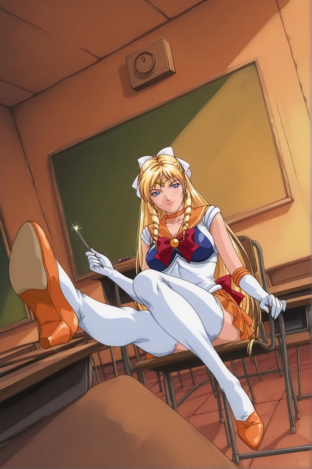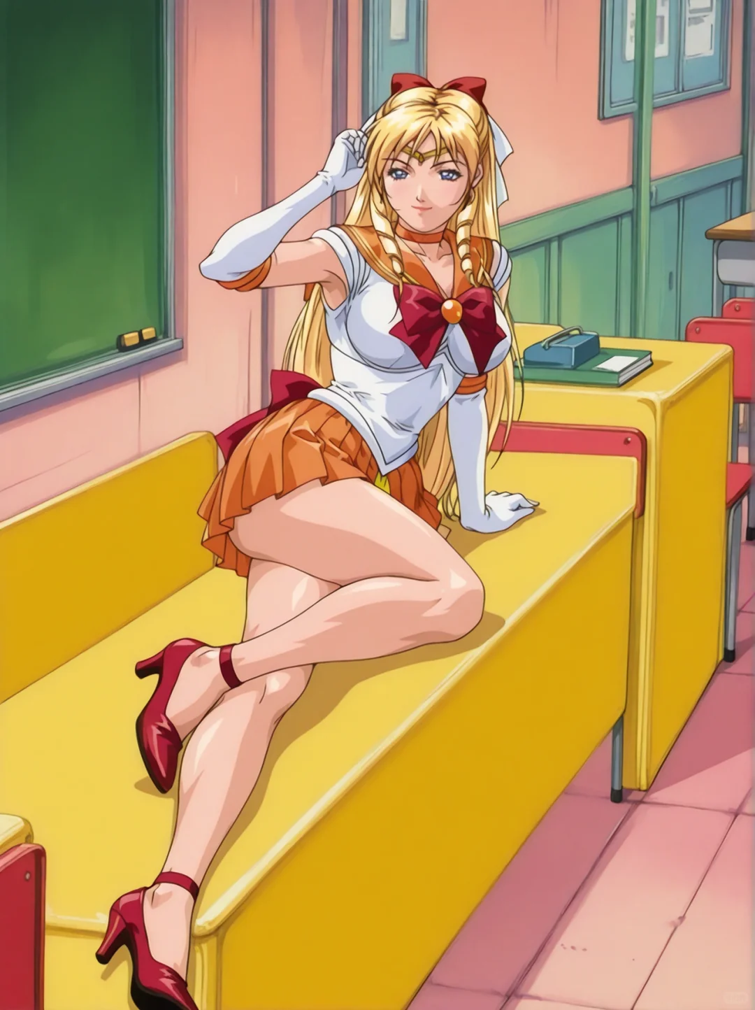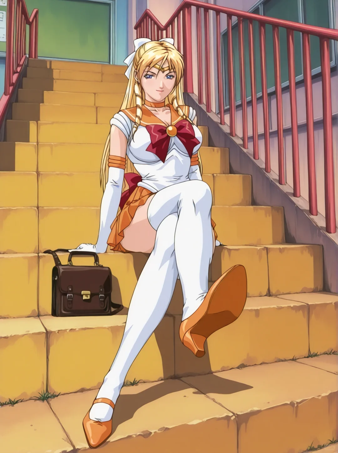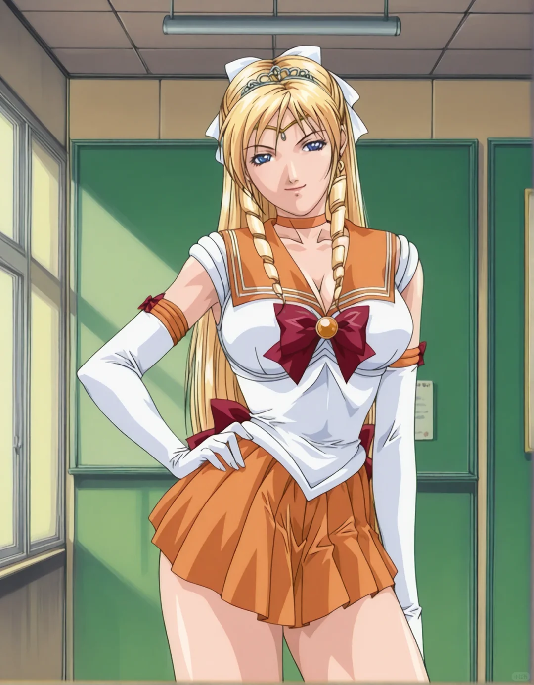 谁能拒绝校园里的爱野美奈子啊!🌙\n作为美少女战士里的金星战士,美奈子平时战斗时又美又飒,金星光芒攻击超耀眼。可换上校园风穿搭后,橙白配色的制服活力满满,金色长发扎成麻花辫,又多了几分青春可爱的感觉~\n在教室、楼梯这些校园场景里,她或自信站立,或俏皮互动,仿佛下一秒就要和同学们一起欢笑,这种又甜又有力量的校园女神既视感,真的太戳人啦!\n#美少女战士 #爱野美奈子 #校园风造型 #二次元女神 #元气少女 #ai