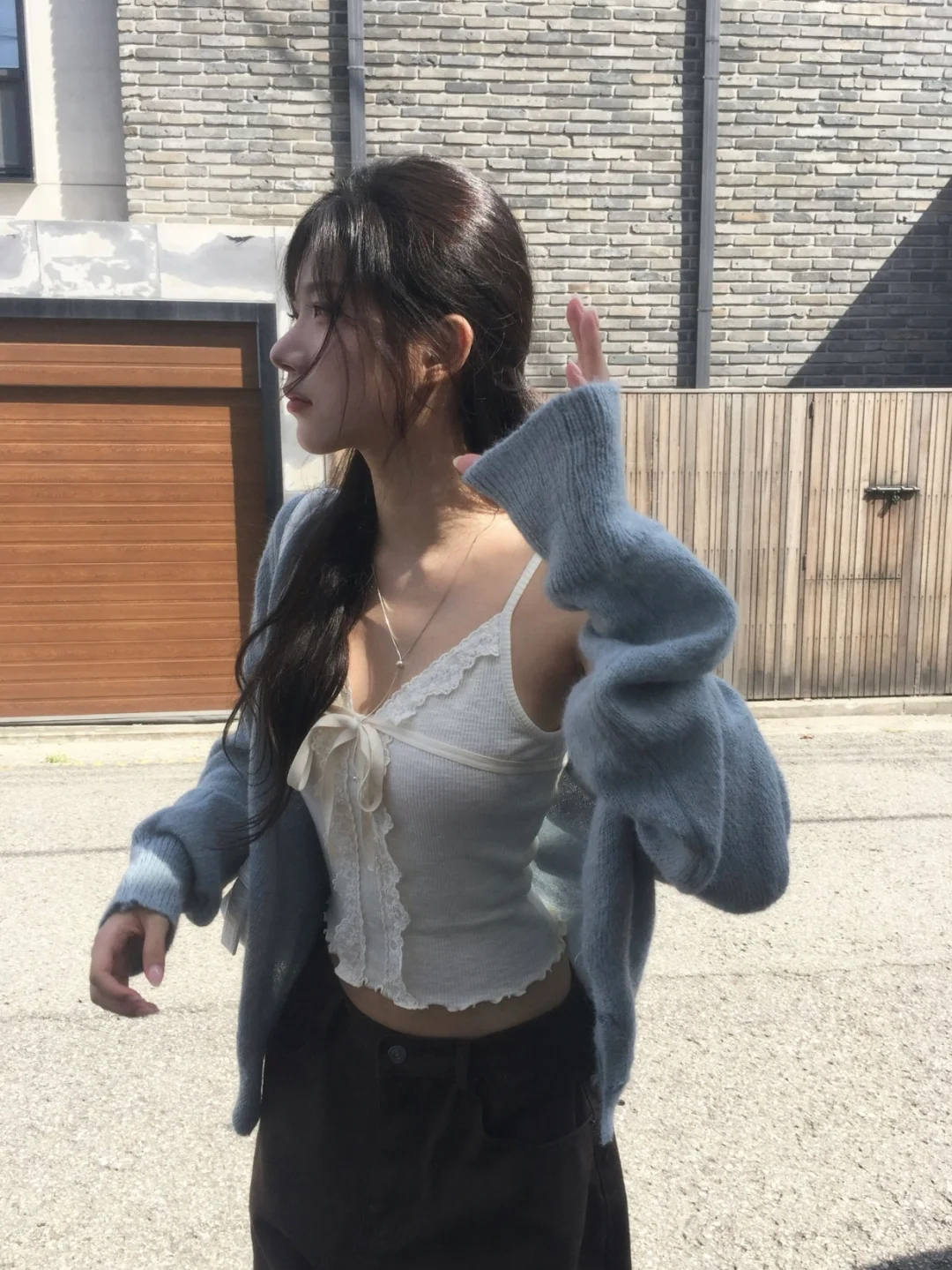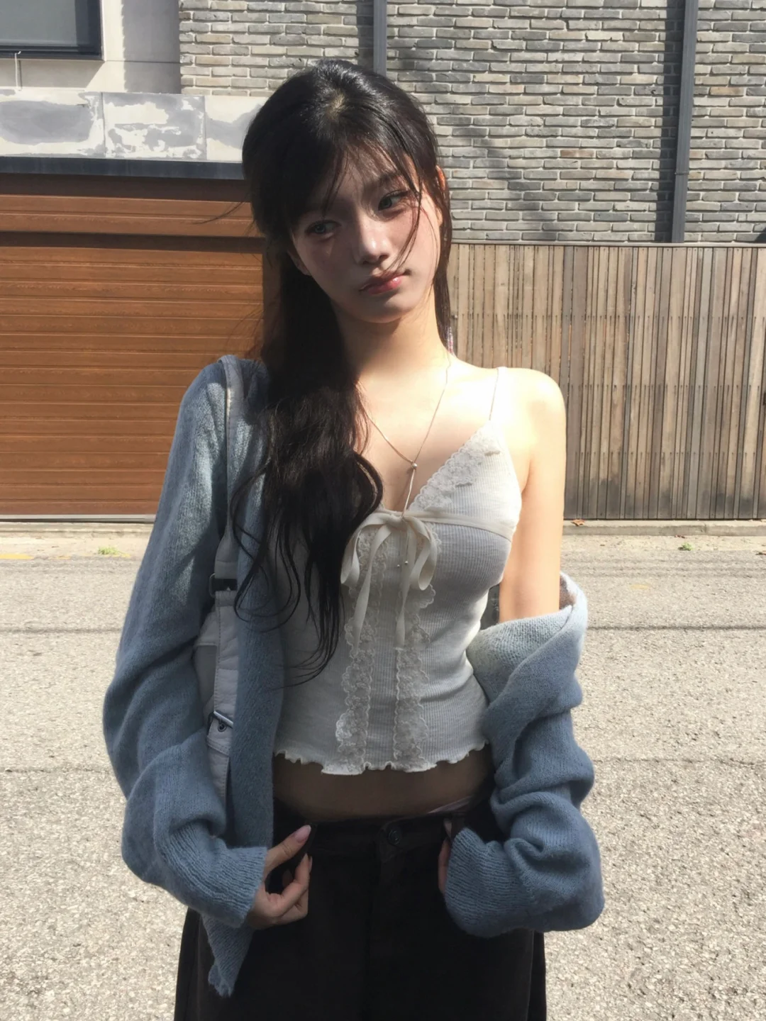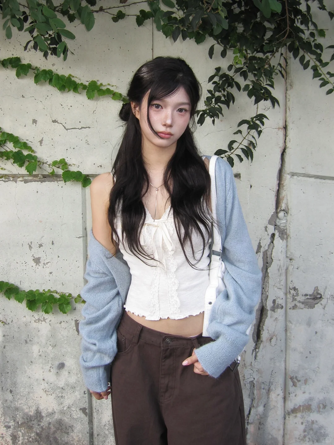 早秋这么穿,美到犯规好嘛!一起get同款当早秋氛围感美女~👯♀️\n🩵蕾丝吊带+软糯开衫+阔腿裤\n谁懂啊!蕾丝吊带纯欲感拉满,外面搭件软软糯糯的开衫,温柔又有层次,再配条阔腿裤,慵懒随性,走路都带风~\n🤍连帽卫衣+阔腿裤\n连帽卫衣一穿,青春感直接up!拉链拉开点露出内搭小小心机,搭配阔腿裤,休闲中带着酷飒,校园感or街头感随意切换~\n✨露肩条纹衫+阔腿裤\n露肩条纹衫也太嗲了吧,小露香肩,温柔又性感,搭配阔腿裤,甜酷结合,一整个拿捏住早秋时尚密码~\n-\n#韩女穿搭 #早秋穿搭 #氛围感穿搭 #韩系穿搭 #日系穿搭\n🛍️:#Floree\n#温柔穿搭 #生活感穿搭 #韩国小众品牌 #ins博主穿搭