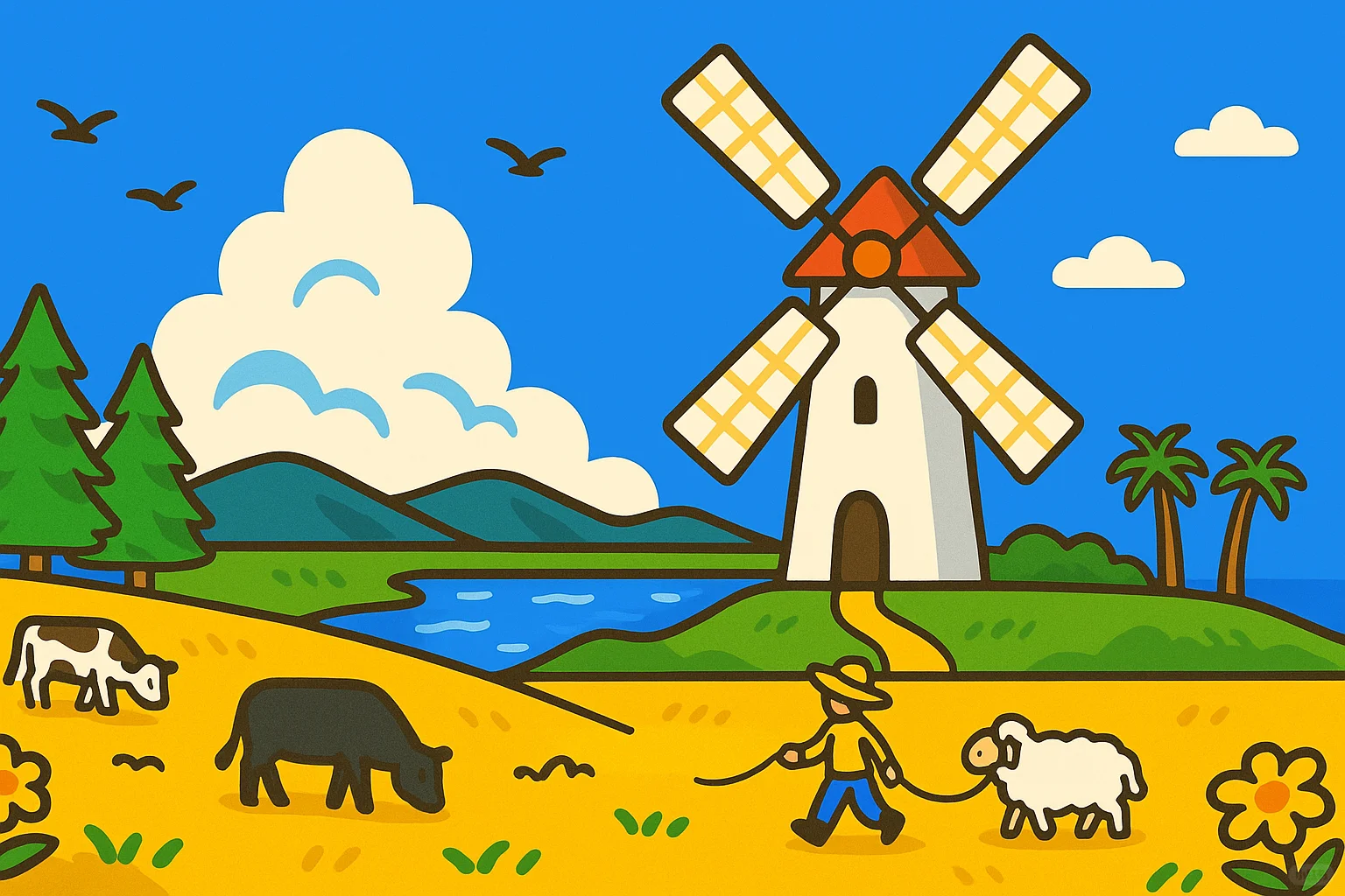 🌬️💙大风车吱呀吱呦呦的转|iPad壁纸