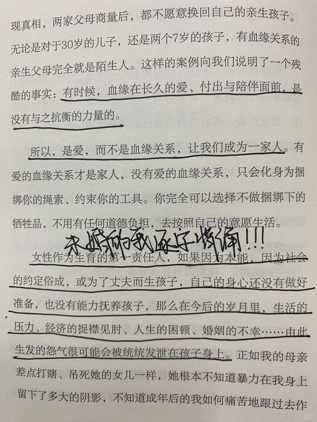 🌟书名:《基层女性》\n🌟作者:王慧玲\n🌼🌼🌼🌼🌼🌼🌼🌼\n \n🌟把精神寄托在任何除了自己之外的其他人身上,你这一生很可能会不停地陷入渴望与失望当中……女性作为生育的主体和第一责任人,这一点尤其要想清楚。\n🌼🌼🌼🌼🌼🌼🌼🌼\n \n🌟 女性作为生育的第一责任人,如果因为本能,因为社会的约定俗成,或为了丈夫而生孩子,自己的身心还没有做好准备,也没有能力抚养孩子,那么在今后的岁月里,生活的压力、经济的捉襟见肘、人生的困顿、婚姻的不幸……由此生发的怨气很可能会被统统发泄在孩子身上。\n🌼🌼🌼🌼🌼🌼🌼🌼\n \n🌟 成年后,我们要学会做自己的父母,重新教育自己、投资自己,选择有益于身心健康的方式成长,多去跟让自己快乐的人打交道,做自己喜欢的事,过想过的生活。成长,疗愈,最终完成自我救赎。\n🌼🌼🌼🌼🌼🌼🌼🌼\n \n🌟 世界上任何两个人之间的关系都是人际关系,建立健康亲密的人际关系,靠的是爱,而爱是互相流动的,父母爱你,你自然而然会爱父母。那些用外界的某种观念、思想来给你施加压力、道德绑架,让你屈服的亲情,只能说明你们之间没有爱,只是因为血缘捆绑在一起。对于这种没有爱流动的亲情,你是有选择的,你可以坚定地说“不”。\n🌼🌼🌼🌼🌼🌼🌼🌼\n \n🌟当你成长为一个精神、经济独立,内心温暖的人,你和父母的关系,包括你人生的大部分问题,都会找到答案。\n🌼🌼🌼🌼🌼🌼🌼🌼\n#送给所有女生 #女性的困境和力量 #女性的成长 #女孩子们好好爱自己 #女性的价值 #读书笔记 #书摘 #读书笔记分享 @阅读薯 @薯队长