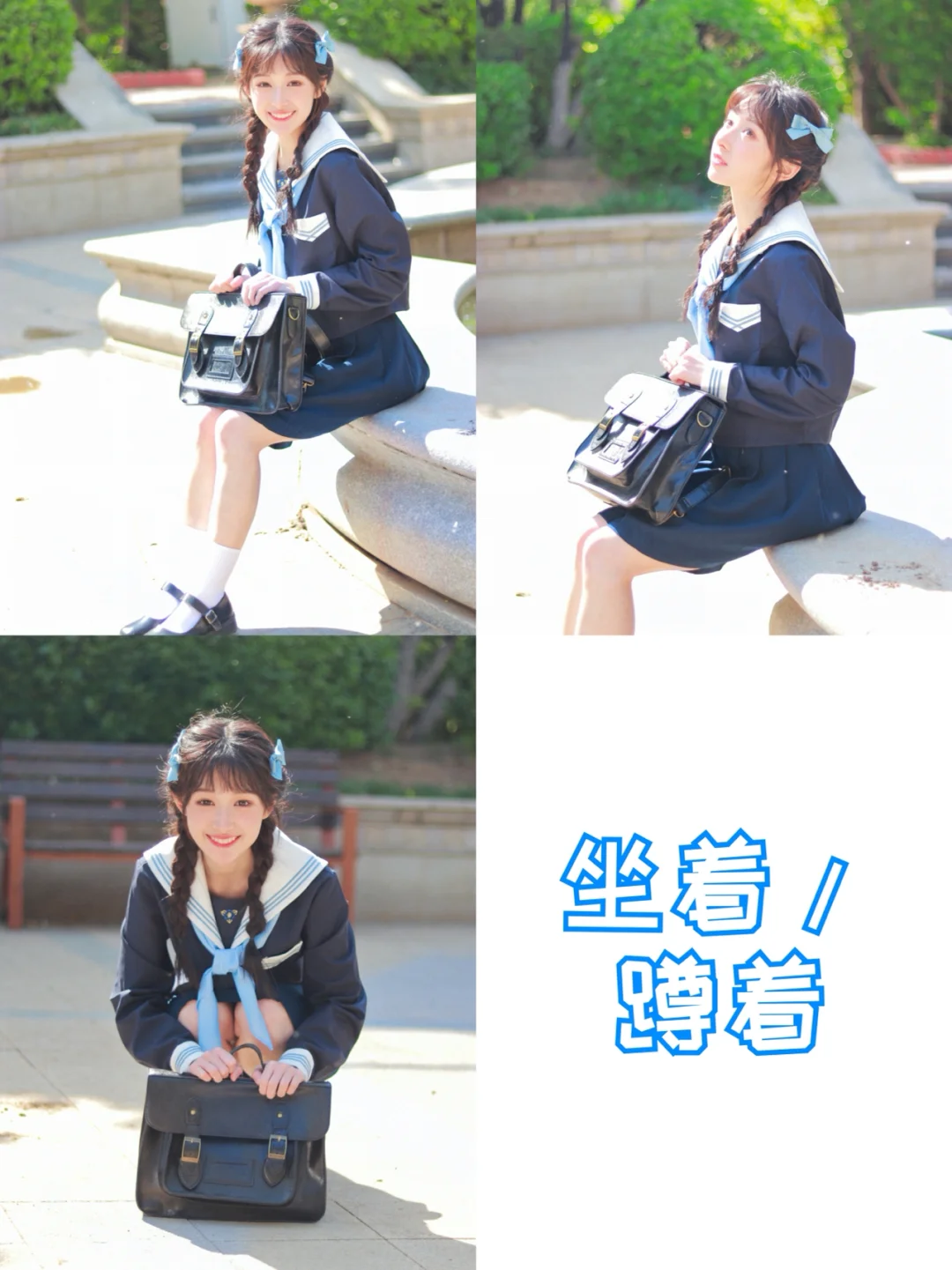之前拍的这套图是典型的一个环境拍一套片子\n背景没有换过\n但是通过不同的道具和不同的姿势排列组合成功get一套片子\n姿势|坐着 站着 蹲着 弯腰 回头 转圈\n动作|抱 背 搂 摸 举 看\n通过这些动作的变换 道具的变换\n再也不用担心拍照的时候动作枯竭了~\njk拍照必备道具‼️\n双肩制服包 jk圆帽\n好看的照相机 泡泡机\n耳机 书\n@日常薯 @生活薯\n北京拍照|日系写真|少女写真|jk制服|制服写真|胶片调色|毕业写真|校园写真|来拍照了|写真分享|日常生活里的快乐瞬间