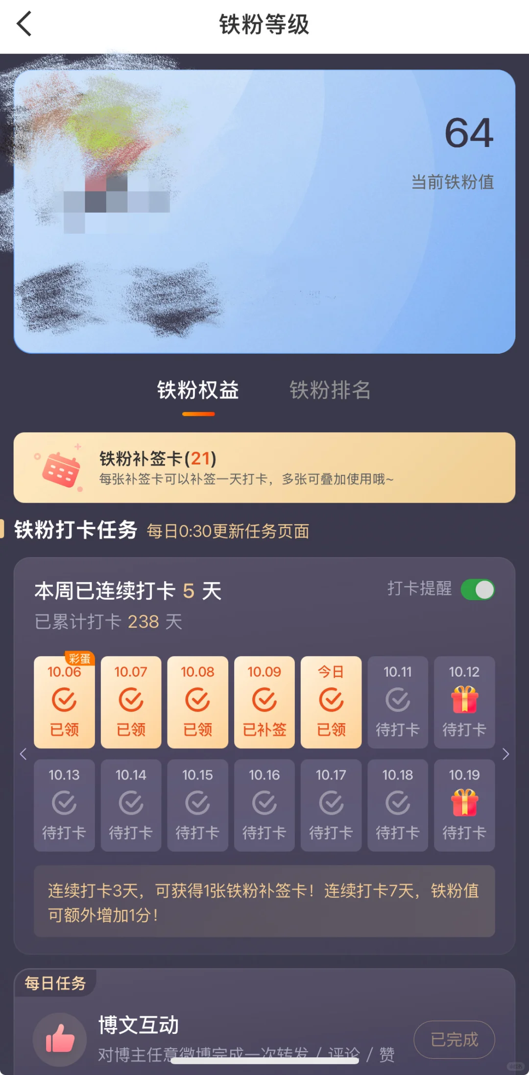为什么连着签了二百多天铁粉值才64分 不是一天涨一分吗