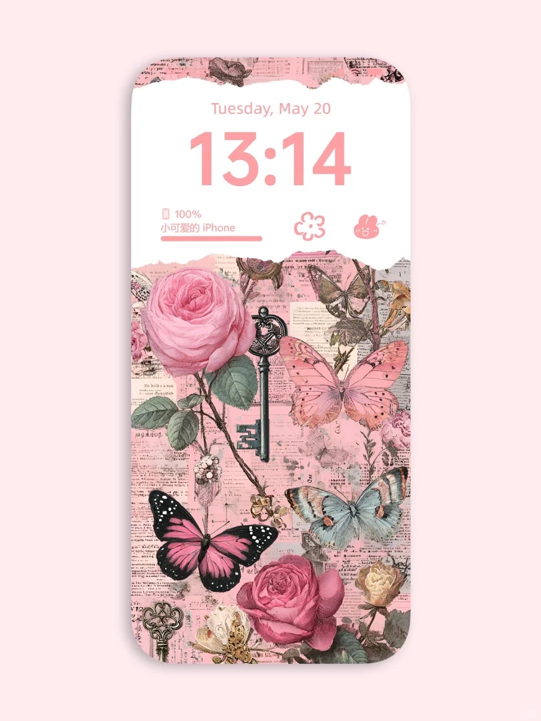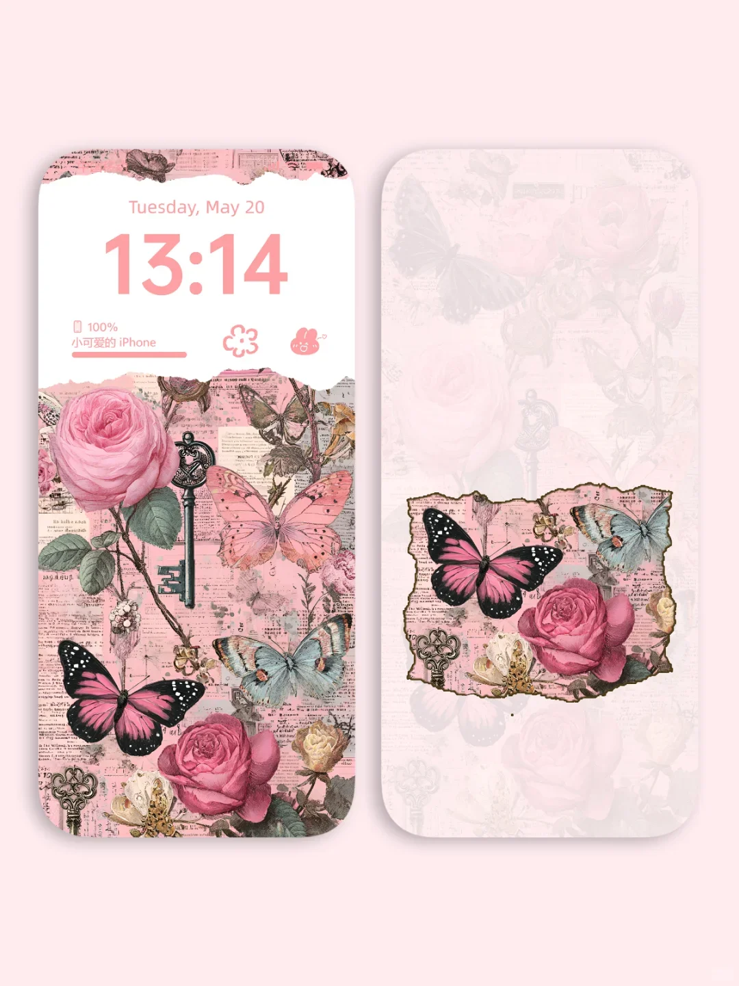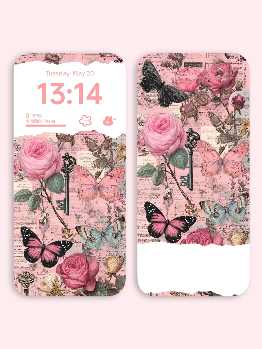 娇艳玫瑰与斑斓蝴蝶共舞|复古风壁纸