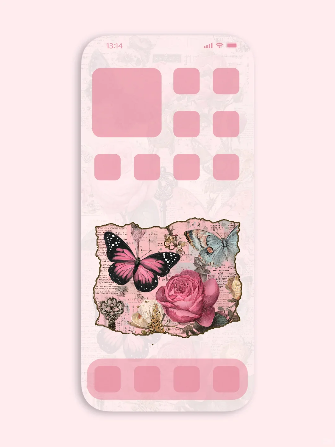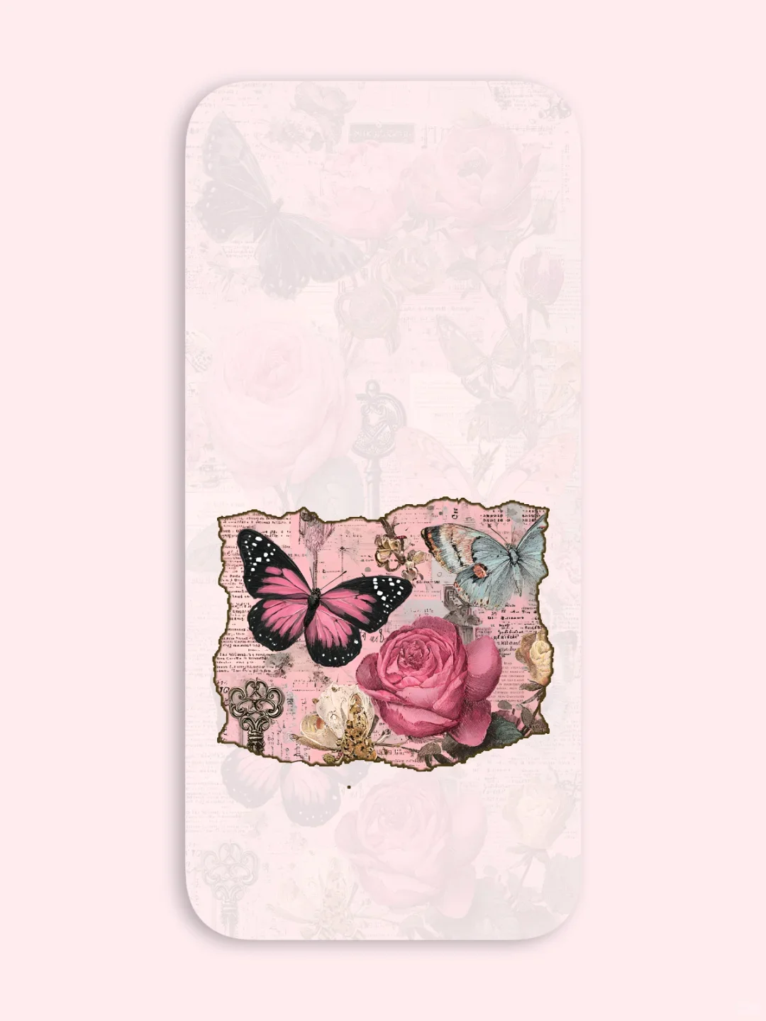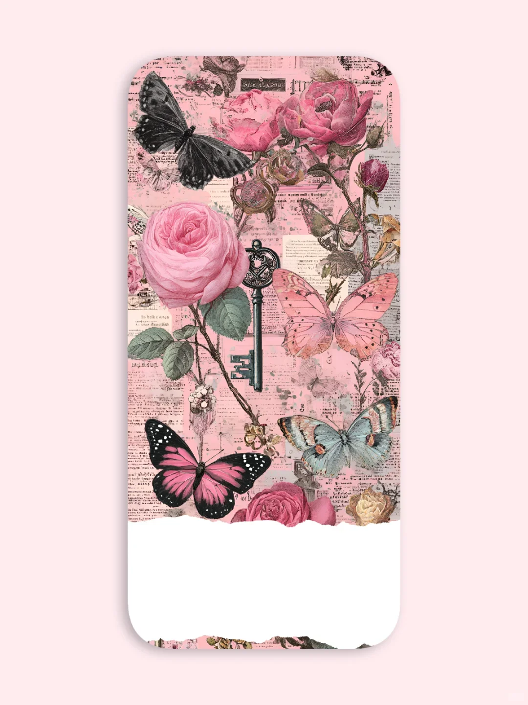 娇艳玫瑰与斑斓蝴蝶共舞|复古风壁纸