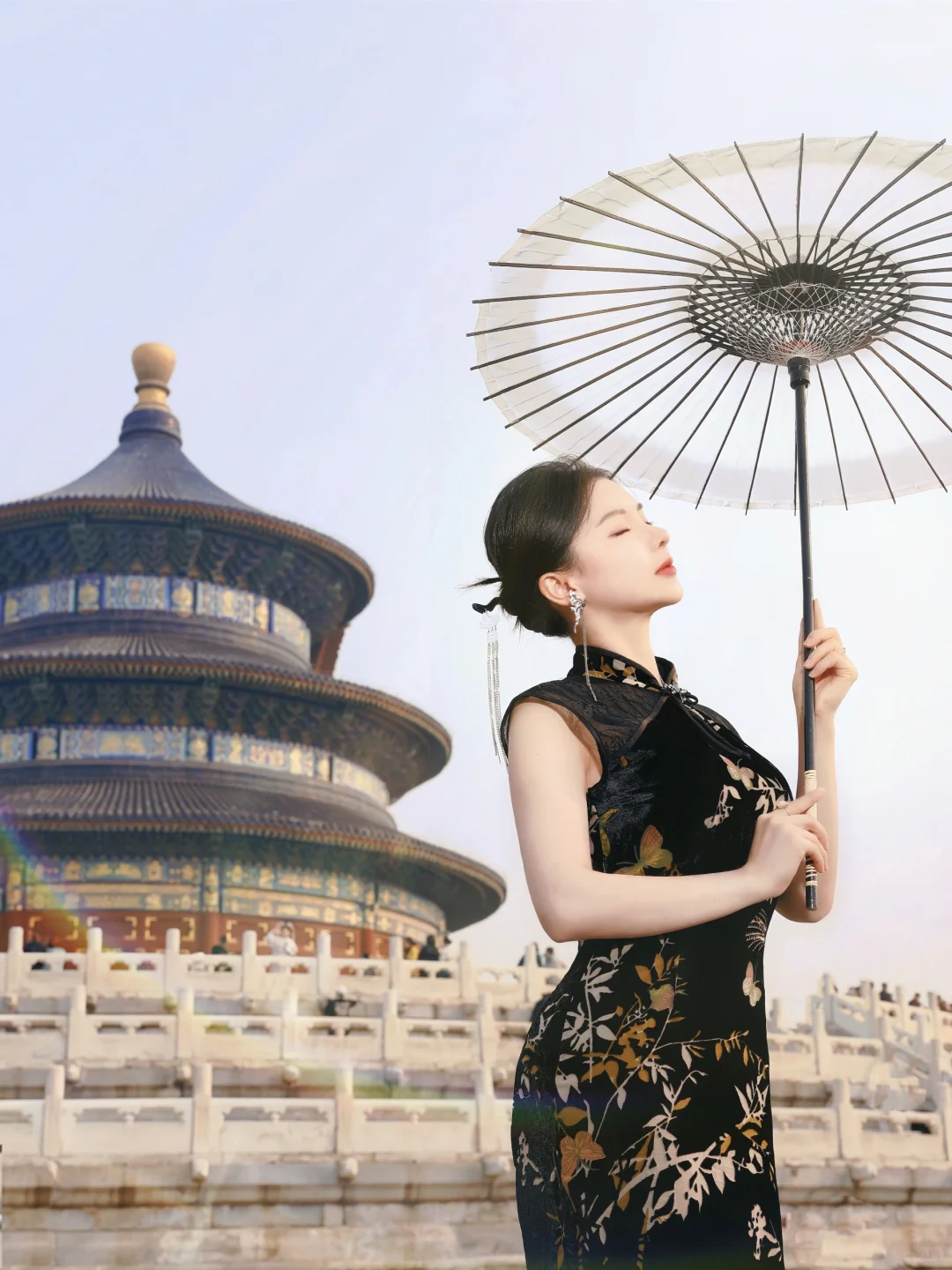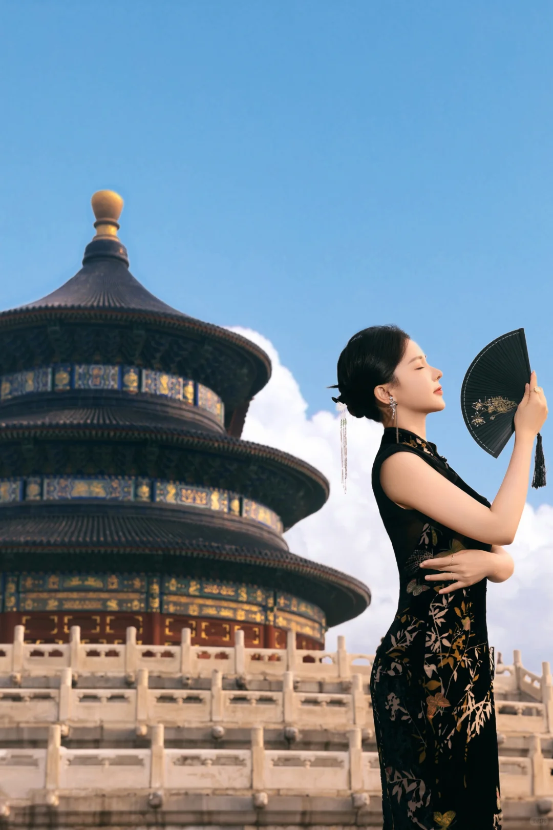 天坛好多人拍古装,我偏不,来一组旗袍写真
