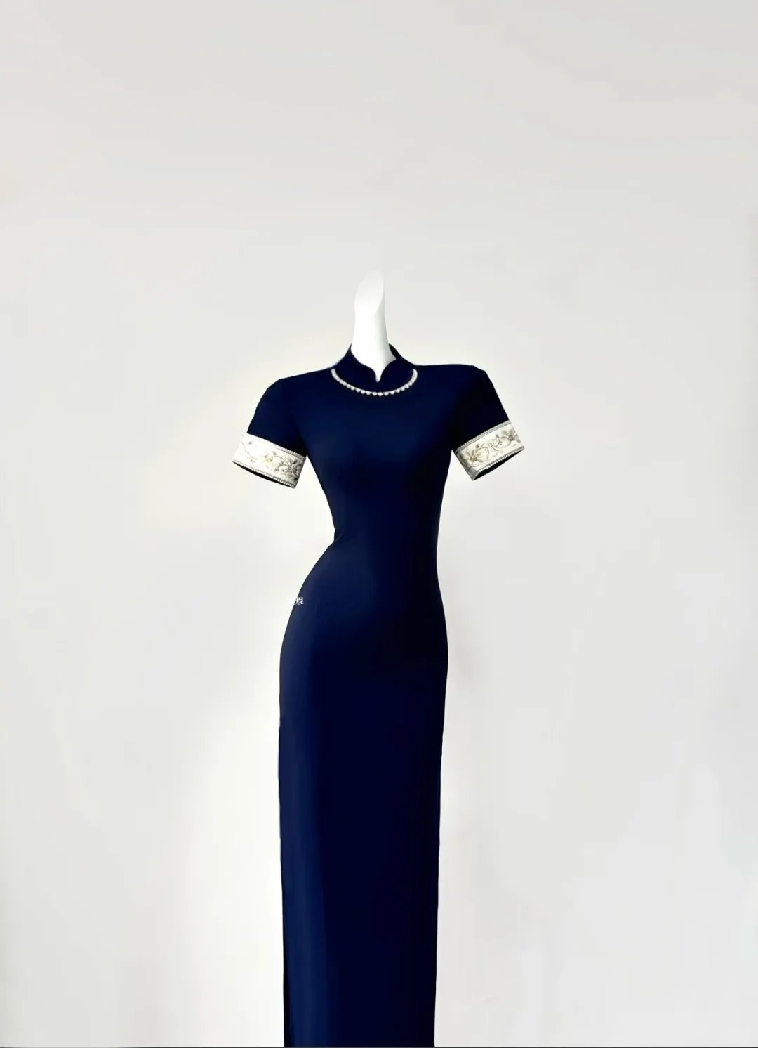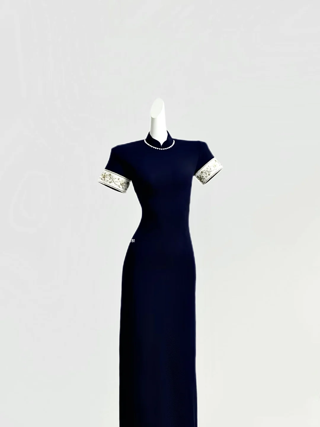 ✨【墨染芳华|一件旗袍穿出东方骨相美】✨\n▫️「墨色为魂 珍珠作魄」\n——这件旗袍的剪裁仿佛从民国老画报里走出来,墨玉般的缎面泛着幽微光泽,衣领那抹素白缠枝纹恰似宣纸上晕开的工笔,脖颈间珍珠串成的月光,一步一摇都坠着旧时光的优雅。\n▫️显瘦玄机藏在立裁的弧度里\n——真丝重绉顺着身形流淌,高开衩若隐若现的肌肤是最高级的性感。不必刻意凹造型,盘扣系起时自然勾勒出天鹅颈与蝴蝶骨,后腰暗省道设计让背影也成风景。\n💄搭配灵感:绛红唇色+哑光缎面手包,发髻松散挽起,耳畔只需一粒小米珠——真正美人从来赢在氛围。\n⚠️警告:穿它出门容易被追问店铺,建议收藏时顺手保存搭配图九宫格。\n#新中式穿搭天花板 #东方美学暴击 #新中式旗袍 #国风古韵 #旗袍美人美如画 #东方美学 #国风旗袍 #旗袍东方女性最美的象征 #古法旗袍 #东方韵味温婉国风