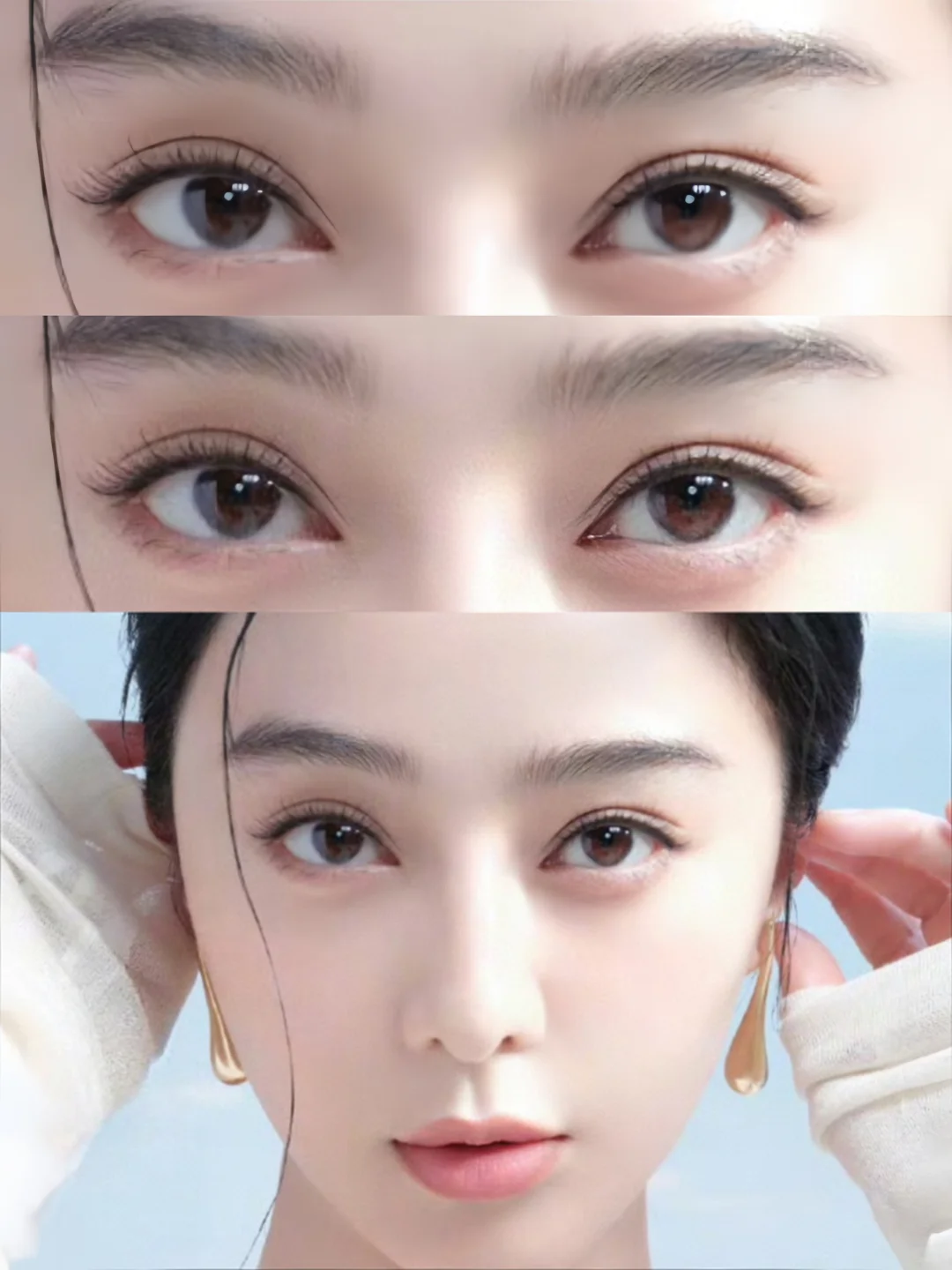 这么久了依旧是内🐟神颜的级别\n尤其是她的眉眼,为她的美貌增色不少!简直就是完美眼模版!她的美太锋利了!\n她的眼睛:平扇+窄卧蚕的搭配,灵动又魅惑~\n内眼角尖锐下勾,眼尾上扬,这种形态的眼睛通常比较难以驾驭,胜在她的眉弓立体深邃,眼裂宽眼白暴露度高的同时,黑瞳人明亮,在这样的鬼斧神工的搭配之下,眼睛魅惑勾人,每一个尺寸都搭配的恰到好处\n想用她的双眼皮当模版的求美者,需要满足以下几个条件:\n1.睑裂不能过短\n2.眉眼间距不能太近,且最好搭配有立体眉弓\n3.眼尾略微上扬\n4.上睑皮肤不能厚重\n这样才能 get 到她的神韵!\n#审美 #双眼皮 #美商 #女明星眼睛 #女明星 #神仙颜值 #自然双眼皮 #好看的眼睛会说话
