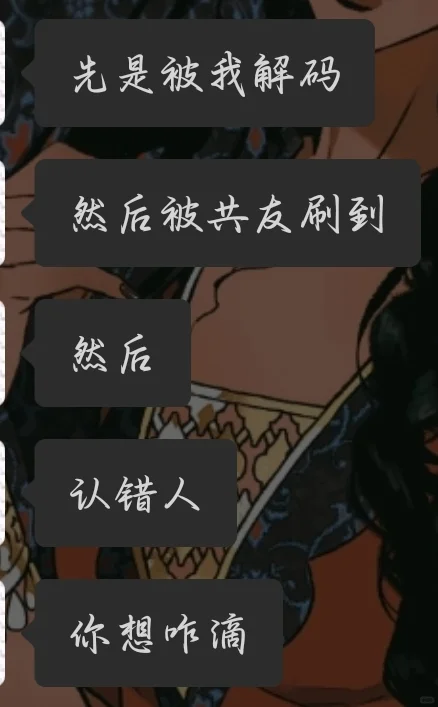 之前扩上女神的时候她还没开始产粮,后来她慢慢变成了圈内女神之一,小女子一直和女神玩到现在真的是小女子最喜欢的列表了,脾气又好又温良做饭好吃而且文画双修,和小女子也是观念重合度99.9%我觉得再也不会找到如此契合的女神了\n女神和我自从互承认是深交以后经常和我互犯点小贱什么的,在我们经历了互夸、互怼阶段之后我感觉女神有点不可控了起来。😨我正常给她发个我不知道吃什么的语音她说我又撒娇且把小女子的语音听了七遍还收藏了,她以前也不开这种实在是有点暧昧的玩笑,说真的这次小女子是真的吓到了😨之前暗恋过女神后来都释怀了这是闹哪样😨\n想问问大家客观角度来看女神是不是口嗨上头了😨\n二编:\n卧槽咋突然火了。⭕️和女神混熟教程我已经新发了一个帖子了可以去看看⭕️\n然后声明一下我和女神真的没有什么,今晚纯粹被女神贱出新高度吓到了后面发现女神只是跟我更熟了一点而已,谢谢大家我今晚快笑死了😨\n三编:\n和女神都没有确认关系的陋习/.(其实好像也说不上喜欢感觉是口嗨,因为评论区太好笑了所以我就不私密了挂着了)\n四编:\n我不行了吧一篇帖子被两个列表解码,还把其中一个列表认错了一个人一晚上怎么能捅这么大篓子。列表说要蹭我冷度@渝秋大王 你们去看看她好不\n#想说的如图所示 #大家看看我 #尖叫扭曲阴暗地爬行 #求助 #提问 #阴暗的蠕动 #