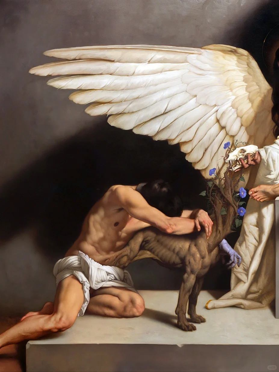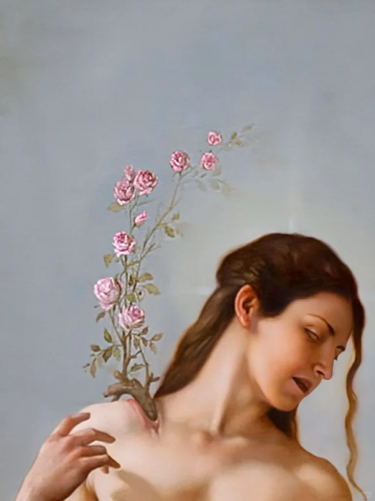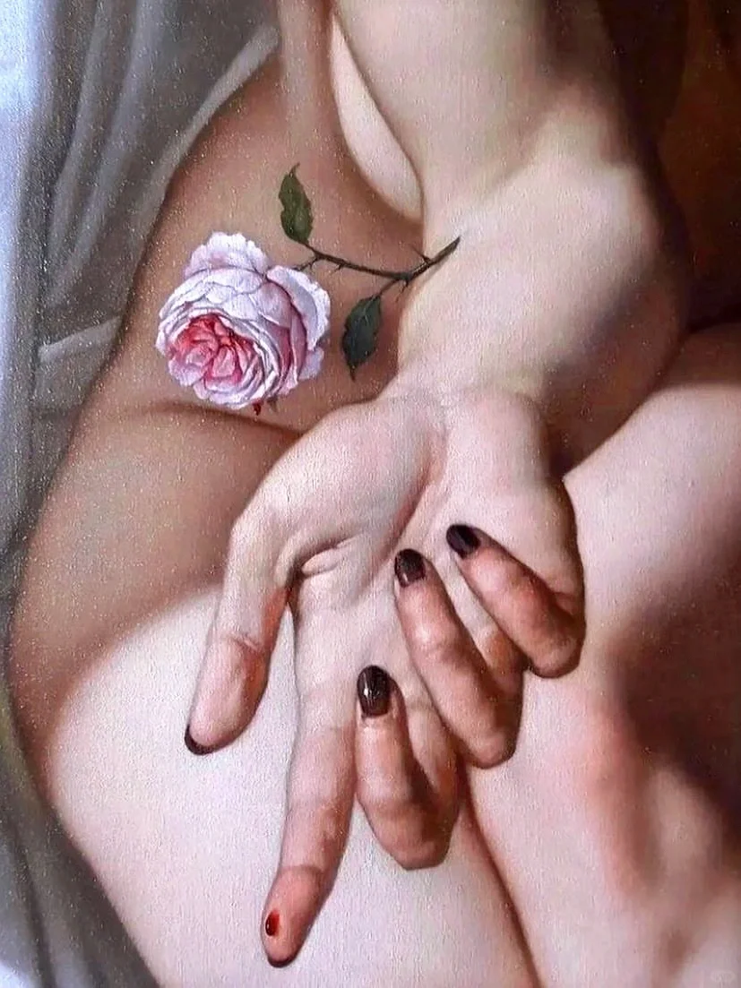 “我将我的身体贴向大地 我的脉搏紧贴着叶的筋脉 我呼吸着大地的呼吸 我感受到一支玫瑰 从我身体里长出”\n-\nRoberto Ferri是意大利艺术家,出生于1978年被称为罗马美院的天才,他的很多作品受到全球各地的私人收藏家的钟爱\n-\nRoberto Ferri的作品风格深受巴洛克时期的画家(尤其是卡拉瓦乔)和其他浪漫主义、学院派和象征主义的老牌大师的启发。他作品中充斥着真实且扭曲的人体,偶尔会被刺穿、流血或生出异物。\n-\n他同样擅长于提供戏剧性、隐喻和巴洛克式的潜台词的人物研究。就像他的古典艺术界的大师级先辈们,他们给古代或神话中的人物形象予以永恒的生命感,而Ferri当代版本的人物形象看起来更加写实和当代。\n-\n#520 #520礼物 #玫瑰 #玫瑰花束 #浪漫 #爱 #艺术 #每日艺术家 #艺术家分享 #来自星星的艺术家 #浪漫主义 #巴洛克 #审美提升 #高级审美 #审美积累 #美术生 #绘画 #油画 #意大利