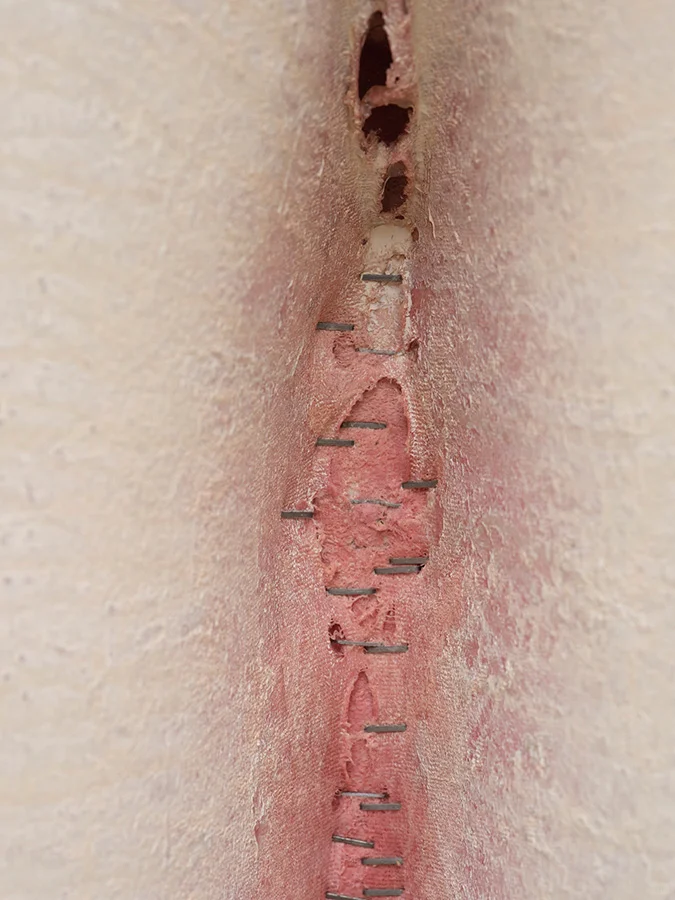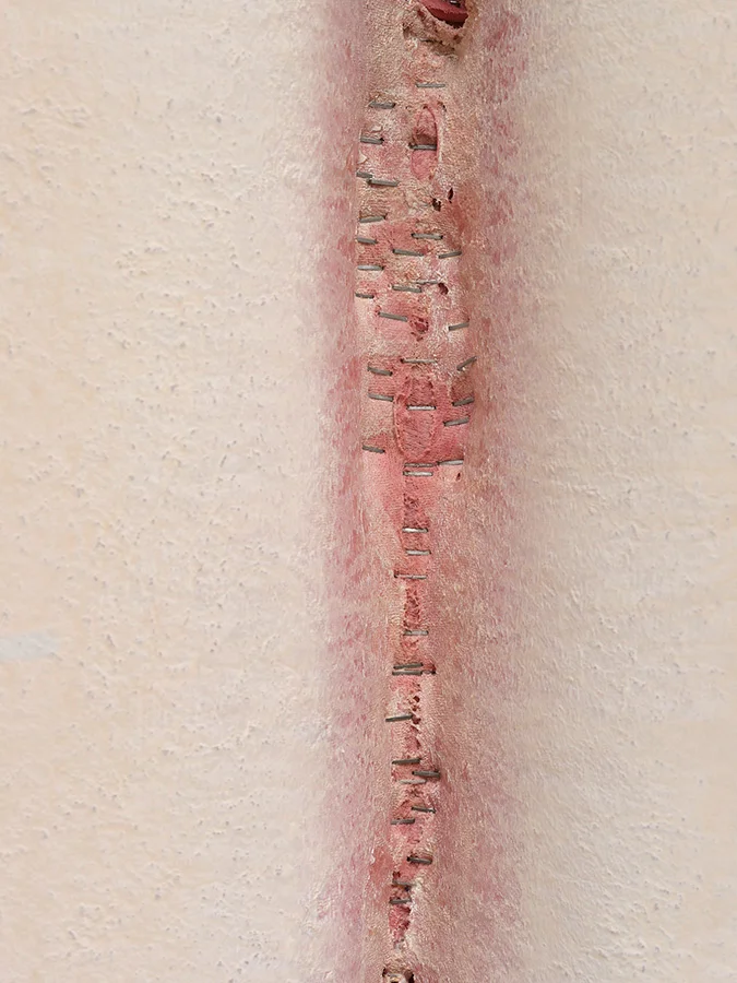 📎Jens Kothe展示了与人体、身体自我相呼应的触觉墙壁物体。以椭圆形的圆形空腔为例,就像从腹部切下的肚脐一样。科特的作品仿佛是放大的身体部位,它们采用柔和、肉质的颜色,并形成微凸的表面和柔和的曲线,乞求触摸。同时,它们常常会让你想起日常生活中熟悉的元素,例如长凳。\n📃身体是科特雕塑作品的核心。他的纹理和触觉雕塑和墙壁作品包含一定程度的抽象,但毫无疑问地指的是有机的、感性的形式——尽管是孤立的和碎片化的。科特的作品指的是身体方面,当时我们似乎越来越不专注我们存在的这一方面,其中许多功能就像“罐子里的大脑”。在他的作品中,艺术家使用了硅胶、混凝土、丙烯酸、聚氨酯泡沫、枕头、环氧树脂、石膏、天鹅绒、箔和织物。这些雕塑是独立的,但当放置在一起时,它们就形成了一个空间装置。它们的表面有时是无光泽的,有时是有光泽的。它们的肉质(白色)皮肤状结构看起来既坚硬又柔软。\n \n#艺术 #审美积累 #审美 #作品集灵感 #雕塑艺术 #艺术雕塑 #创作灵感 #雕塑 #雕塑艺术 #审美提升 #提高审美 #设计灵感