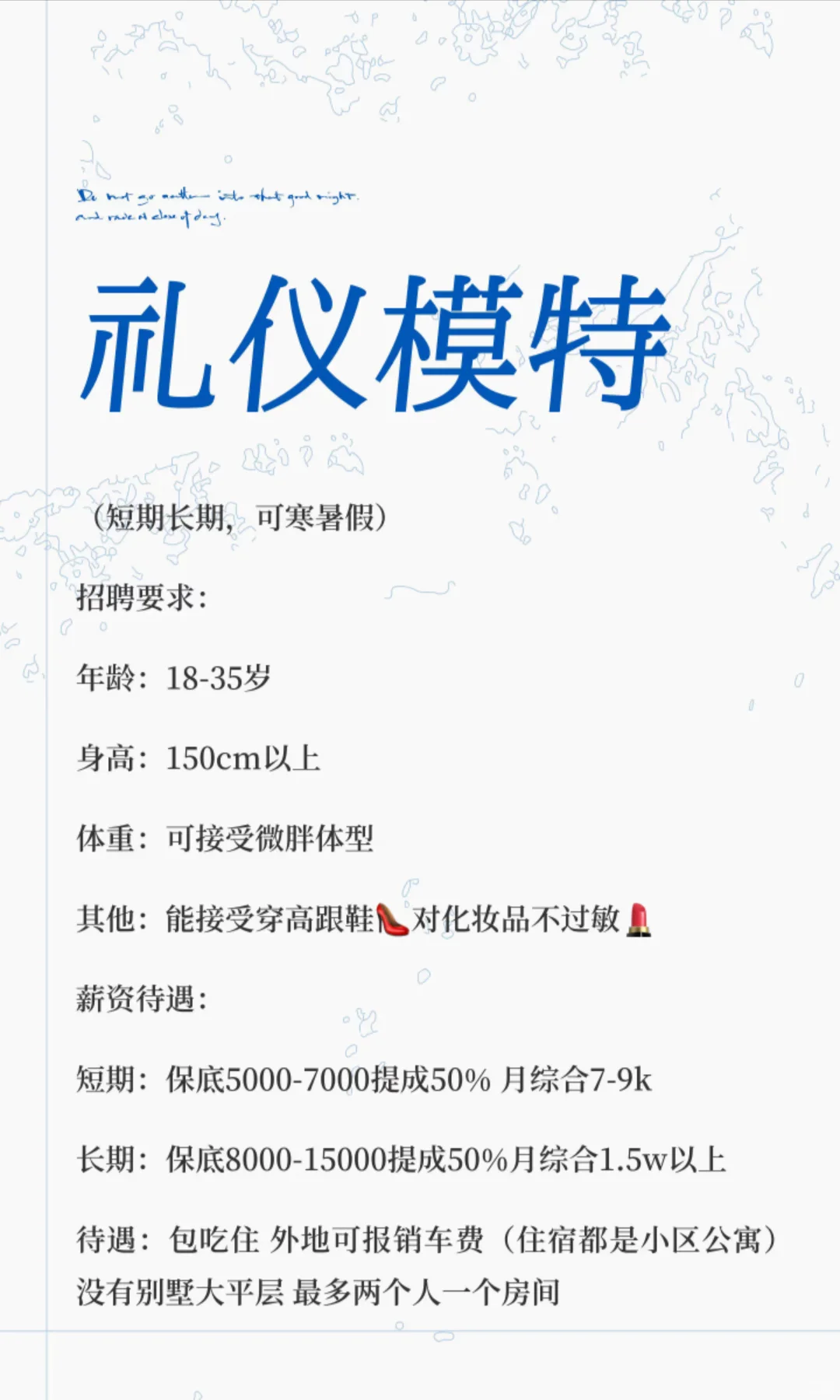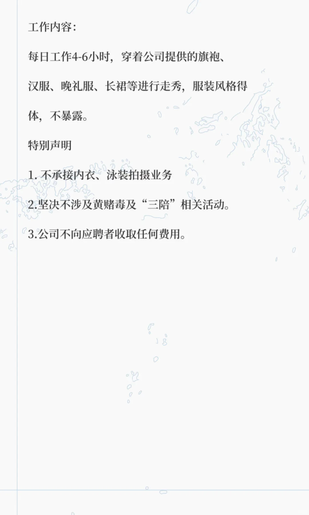 1.工作内容\n走秀表演:模特需在T台上展示服装,通过走姿和表情传达服装的风格与品牌理念。\n礼仪服务:部分走秀模特需承担迎宾、引领、站立烘托气氛等礼仪工作。\n节目参与:可能参与舞蹈表演或其他节目环节,与其他演员协作完成演出。\n2.团队协作\n造型师:负责模特的妆容和发型设计。\n服装设计师:提供特色服装,确保与走秀主题和品牌风格一致。\n编导:编排走秀流程和舞台走位,协调灯光音效等元素。\n营销团队:负责吸引观众和客户,提升演艺吧的知名度。\n3.薪资待遇\n收入构成:通常包括底薪和提成,优秀模特月收入可达2万以上。\n福利:部分公司提供住宿、餐饮、培训和差旅报销等福利。\n4.职业发展\n经验积累:通过演艺吧走秀积累经验,提升走秀技巧和舞台表现力。\n人脉资源:结识业内人士,为未来发展提供机会。\n职业目标:部分模特希望参与国际时装周或成为品牌代言人。\n5.注意事项\n环境适应:演艺吧通常在晚上营业,需适应夜班工作和复杂的社交环境。\n合法合规:选择正规演艺吧,确保工作环境合法合规。自我保护:保持清醒的自我认知,避免受到不良影响。总之,演艺吧走秀是一种兼具挑战性和机遇的职业选择,适合对时尚和表演有热情的人士。在工作中,模特需不断提升自身能力,同时注意保护自己的合法权益。#轻松的工作 #工作轻松简单 #礼仪模特#广州工作 #汉服模特 #模特走秀 #新人模特 #素人模特 #高薪 #适合女生工作