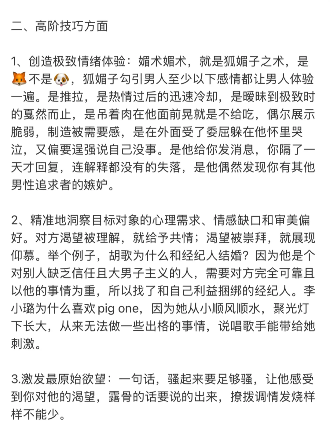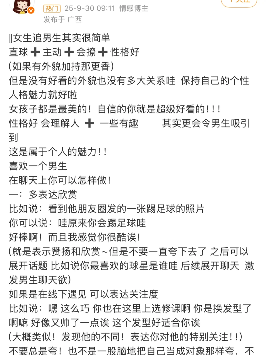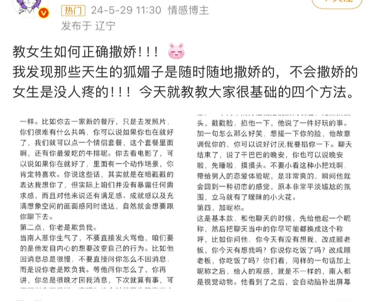 纯:洁净底色\n内在的澄澈感。眼神的干净、笑容的不设防、姿态里的自然松弛。白月光小仙女般的存在。\n媚:流动风情\n浑然天成的流露,内化的性感。它是水波的涟漪,柔和而具有穿透力,直接拨动心弦。\n烧:克制炽热\n最核心精妙的部分。引人靠近,不敢轻易触碰。在欲言又止的唇齿间,转身时若隐若现的曲线里,是一种引而不发的张力,一种让人心痒的、想要一探究竟的神秘感。是“可远观而不可亵玩”带来的极致吸引。\n \n如何打造“纯、媚、烧”的形象与人设\n形象\n清纯款式,搭配微妙性感。\n洁白的棉质连衣裙,剪裁合体,恰到好处地勾勒腰线;\n宽松的男友风衬衫,解开两颗纽扣,露出精致锁骨。\n神态:拥有好奇眼神,在理解某个笑点时,嘴角泛起一丝了然于心的、带着女人味的笑意。倾听时专注(纯),表达观点时带着温柔力量(媚)。\n语言:关键词上略有停顿,语言在唇齿间经过了温柔的斟酌,从而产生一种抓人的魅力。\n人设\n“纯”:展现对世界的好奇与善意,热爱小动物,会被简单的美好感动。\n“媚”:不经意间透露你的学识、见解和独特的爱好,让人发现你的有趣灵魂。\n“烧”:关键时刻,展现不轻易为人知的一面,酒吧里精准点评一款威士忌的专注,谈及梦想时有野心。反差是足以让人深陷其中。\n这样的女子像一座圣殿与秘园交织的城池。我们总是不可自拔地,迷恋着那介于神庙与深渊之间的、危险而圣洁的美。\n文字原创\n#女追男 #撩汉小技巧 #恋爱小技巧 #普通人的变美思路 #追男生 #撒娇 #女性成长 #女性智慧 #女性必看 #女性力量 #偷偷变美惊艳所有人#女性力量 #保持饥饿感 #变瘦变美变年轻 #理想型身材#女人保养 #女人爱自己 #美貌的尽头是养生 #发现我的女性力量 #女人爱自己从保养#水静纯pure #好嫁风 #撩汉小技巧 #普通人的变美思路 #恋爱技巧 #高情商 #撩汉话术 #绿茶#让男友瞬间上头 #亲密关系 #恋爱小技巧#撩汉 #恋爱技巧 #脱单 #我要脱单
