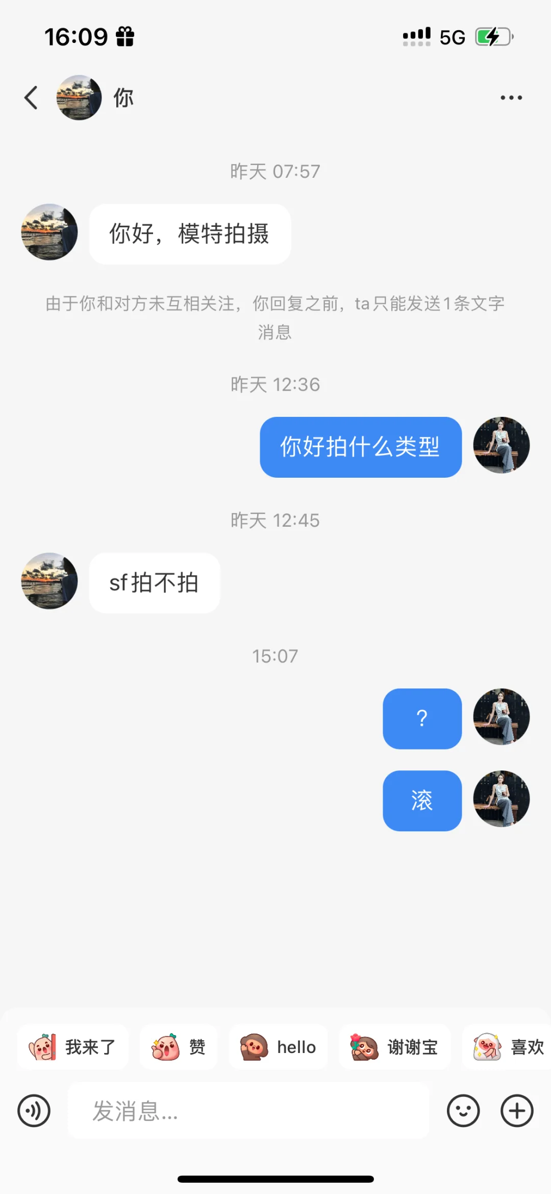 我觉得我没有错,为什么有很多称自己为摄影的人来找模特拍私房照啊#莫名其妙的人 #看见的过来评评理吧