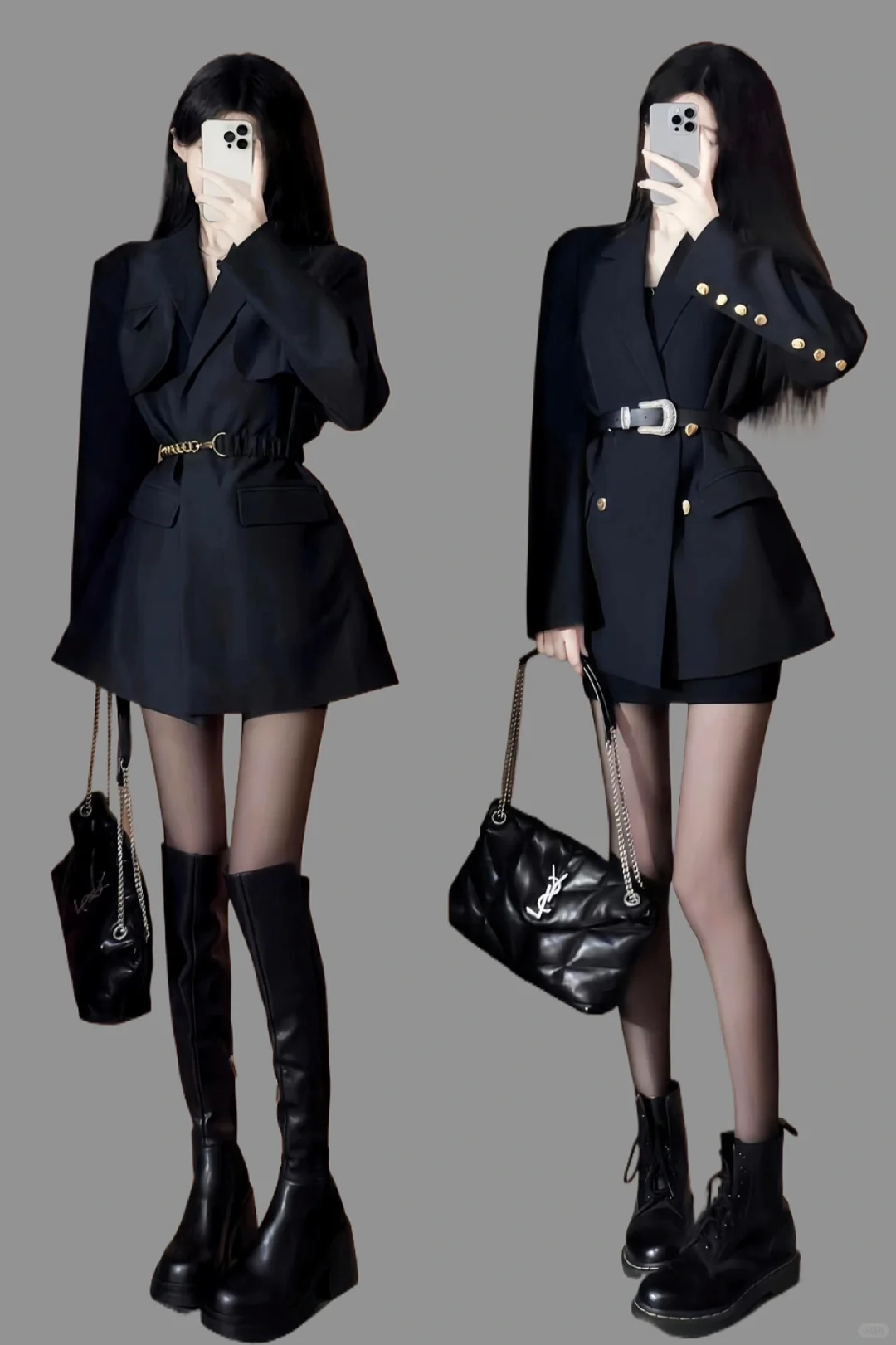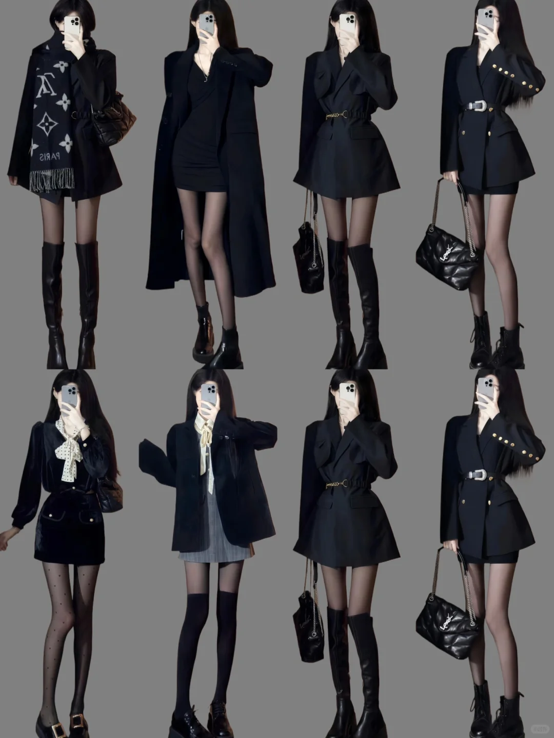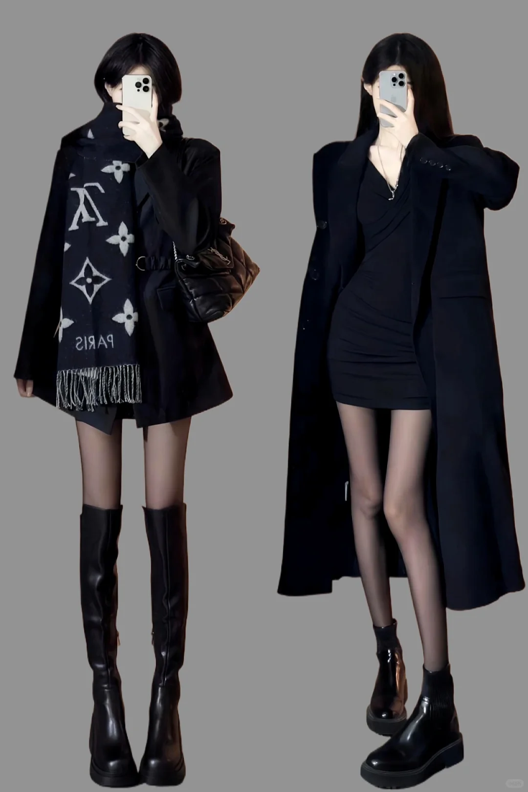 黑丝穿搭!这次带来一组超绝的黑丝穿搭。\n无论是干练西装,还是气质长大衣,搭配长靴或玛丽珍鞋,都气场十足。\n不同的组合,一样的高级,轻松应对各种场合~\n