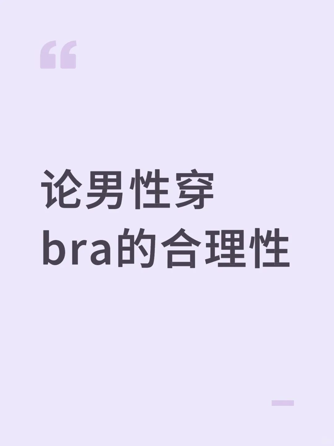 论给男性穿bra的合理性\n首先我们知道男性对bra有着超乎一般的兴趣,无论是普通直男还是男娘。根据美国佛罗里达州的一项研究报告,受访的8千名男性中有98%表示看到bra会异常兴奋,其中43%表示,如果是同性穿戴bra ,他们几乎马上会产生性冲动。由此可得,给男性穿bra是可以激励其他男性的最简单有效方式,成本不高的同时效果超群,可激发男性的生产积极性,同时推动社会生产力的发展。\n同时,因为男性成为bra的主力消费群体,生产商往往会研发更优质的产品,男性服饰不需要交“粉红税”:因为bra的设计通常有男性决定,男性更能懂男性的需求,了解男性的生理构造。所以如果男性拒绝bra,就如同死亡优惠券(第二碑半价)拥有却不使用一样——那真是太亏了。\n现代社会,我们支持性别平等与穿衣自由,但同时我们穿着也要得体。有些男性喜欢袒胸露乳,暴露自己的上半身。尽管我们尊重人类穿不穿衣服的自由,但是男女共有的乳头被他人看到通常会被认为是一件羞耻的事情。为了避免这种尴尬,Bra就很好的解决了这一问题:可以同时满足男性不喜欢穿上衣和避免裸露乳头,更何况,男性可以选择不同款式的bra 装扮自己:蕾丝的,冰丝的,紫色的,黄色的……多种款式,任君选择。\n古代社会并有男性穿bra的例子。《魏书·后明传》曾记录了这样一个人:“钱又,字一欠,号心赖先生,布裹,其有异香,世人谓之奇葩。”布裹,便是古代的Bra 名称。所以男性穿bra是有历史依据的,而今人倒不及古人开放,不禁让人感慨历史的倒退。Bra,只是男性传统服饰,不小心流失在历史的潮流中,复兴bra文化,这是吾辈的责任。\n如今,男性bra正成为一种文化自信的象征,尽管大部分男性未能完全接受,但一小部分先进男性同时也成为了其榜样先驱。我们研究社曾经采访过男性bra文化复兴的先驱,现在bra文化之父——L先生。L先生是一位亲和的男性,他大方展示了他最近的男性Bra 研究成果,出于商业保护,我们无法具体描述他的发明。但L先生曾经说过:“当bra存在在我身上时,我没有感到羞耻,而是另一种感觉:男性bra复兴势不可挡,而我很荣幸成为先驱。”L先生不负先驱的称号,他的发明可以说是一个划时代的杰作。\n最后,我们要说的是,男性穿bra不必羞耻,Bra天生就是为男性设计的——这不仅是装饰与礼仪功能,更是男性对自己的一种性别认同\n \n对不起,但是脑袋kua一下就想到这种东西了,不要骂我,纯抽象#bra #什么是穿衣自由 #抽象 #发疯文学