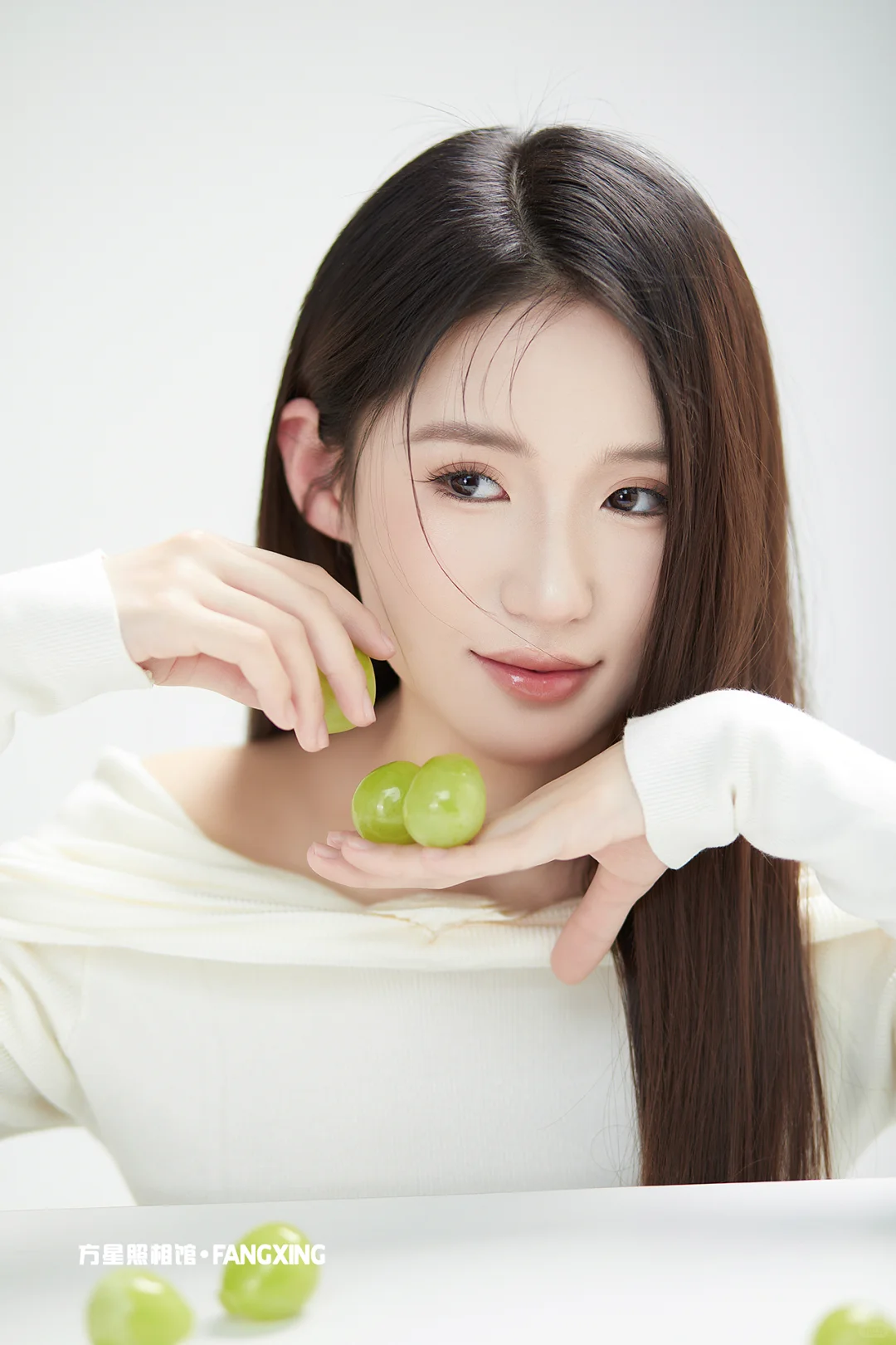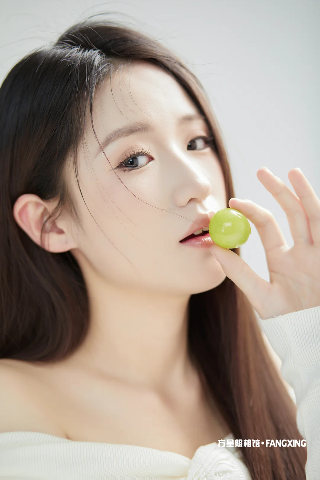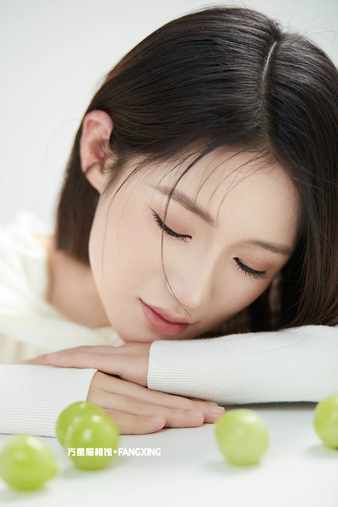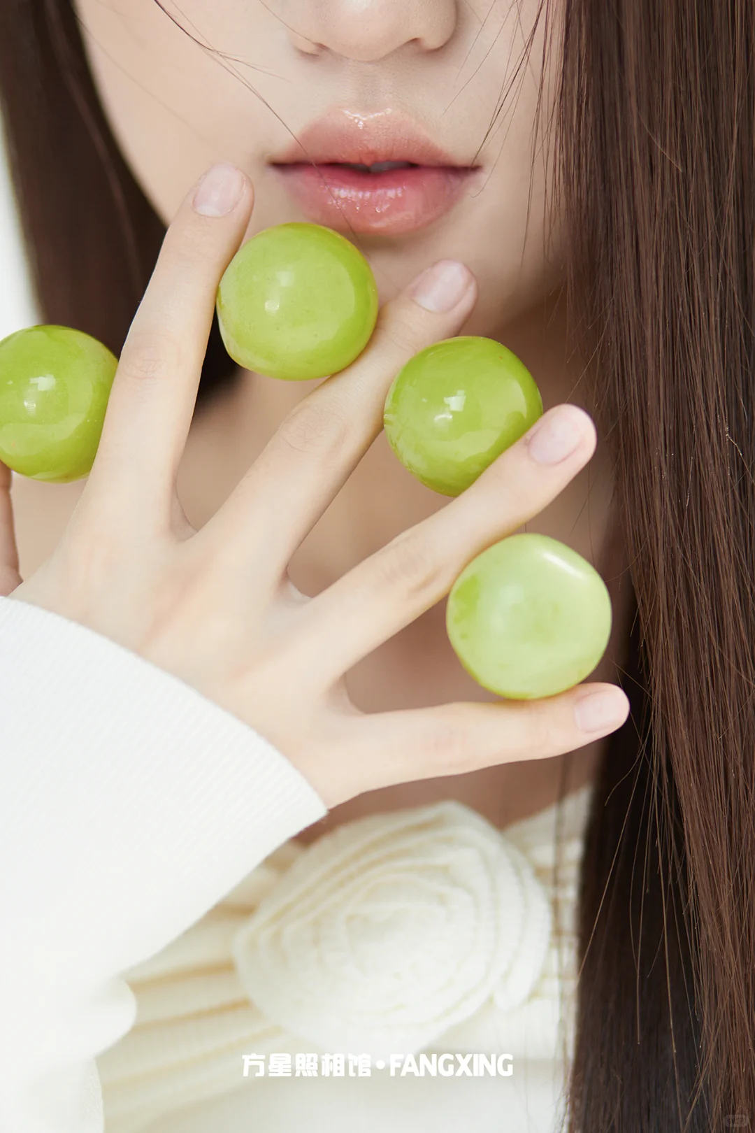 少女青提🍈\n绿色白色和春天太配了|\n| 清新 | 少女 | 室内\n春日必拍肖像写真系列📷\n水果风格真的太好看啦!\n少女手拿青色葡萄🍇\n清新的气息扑面而来\n氧气氛围感满满~