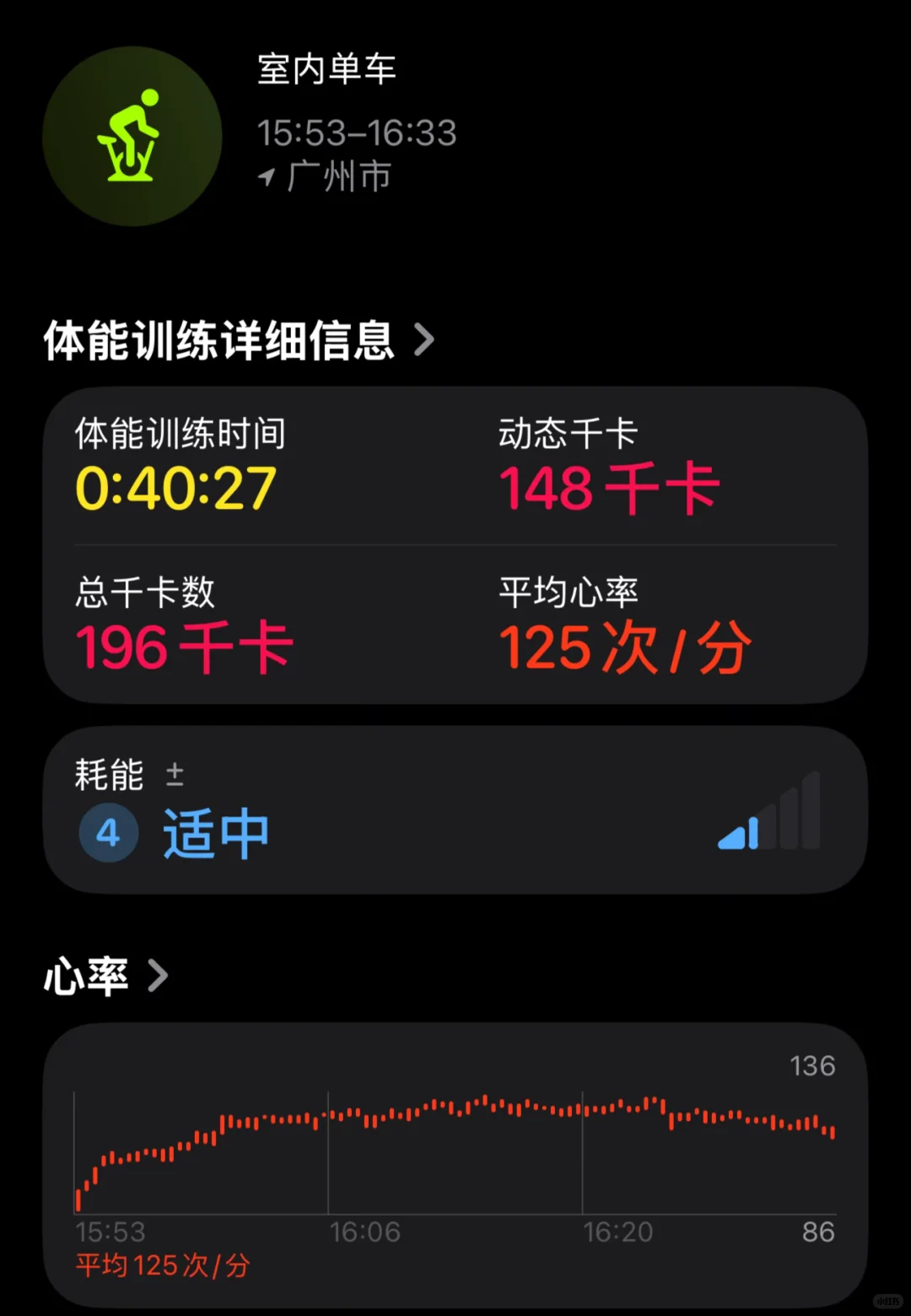 运动暴汗后总会给人更年轻的错觉,哈哈!\n这就是运动让人上瘾的原因之一吧?\n-\n今日运动打卡:\n室内单车40分钟✔️\n汗流完肚子都平了点😉\n昨天的月饼算是消耗了吧?\n大餐后的有氧能把吃撑的胀感消掉,感觉自己又可以啦✌️\n-\n其实我很久没单车,是因为有段时间一骑就腰痛🙃🙃🙃\n友情提示姐妹们🚴注意姿势!\n分享我跟教练学习的3个关键!\n1. 座椅高度到胯骨,脚踩踏板时膝盖微弯,别伸直锁死(膝盖容易受伤🤕)\n2. 手轻搭车把就行,别耸肩使劲攥,不然脖子和腰会酸到怀疑人生\n3. 收腹!不要驼背弓腰,保持骨盆稳定,不要塌腰摇晃!避免和我一样腰痛🥲\n室内单车40分钟不算长,看一集剧,跟着身体节奏调阻力,不知不觉就结束了✌️\n假期的尾巴,一起运动收官吧😎\n#100天运动打卡挑战 #运动 #减脂 #打卡 #奔四也可以很精彩\n#国庆后瘦身 #室内骑行打卡 #有氧运动好处 #运动一夏\n#你今天运动了吗