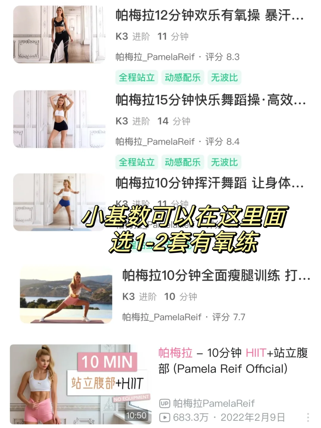 图一左边是我从110减了十斤后,95斤的样子,整个人瘦了一圈,但腿还是很胖,小基数瘦的慢是众所周知的,我建议大家不要通过届时的方式去减重,苦了自己也苦身体,把重心放在塑形上,比大基数的时候一遍有氧一遍无氧效率高很多,我日常就是就做一两个帕梅拉的减脂操,然后做很多的塑形,瘦腿我最开始做的是林芊妤后来换成了普拉提和帕梅拉,这两个基本就是只要你肯做就会有变化,然后上半身会做一些瘦手臂和改善体态还有马甲线的运动,饮食方面没有最开始110-95斤那样严格了,基本上都是吃正常的饭菜,但是不会很高热量的食物,比如奶茶油炸零食什么的,然后每天都要早睡和喝多多的水!贴了一些我做的运动在后面,大家可以根据自身的情况选择性来做!\n \n然后说一下练这些运动要注意什么\n1️⃣要注意收紧核心,吸气后再往外吐气感受肚子收紧。\n2️⃣普拉提内外侧强度比较大,刚开始坚持不下来的宝要慢慢来,觉得坚持不了就暂停休息一会再继续。\n3️⃣帕梅拉的深蹲很多,要注意保护膝盖,蹲到自己能接受的的高度即可,循序渐进\n4️⃣女团腿拉伸刚开始会很疼很疼甚至伸不直腿,但要注意‼️不要强行压下去,会伤膝盖,弯着膝盖也能练,练的次数多了就能下去了也不会那么疼了。\n5️⃣小基数还想继续减脂的宝就配合有氧一起,跳操跳绳都是可以的。\n#小基数减肥 #减肥经验分享 #运动前后的变化 #减脂 #减脂塑形 #小基数 #瘦#瘦大腿 #瘦腿