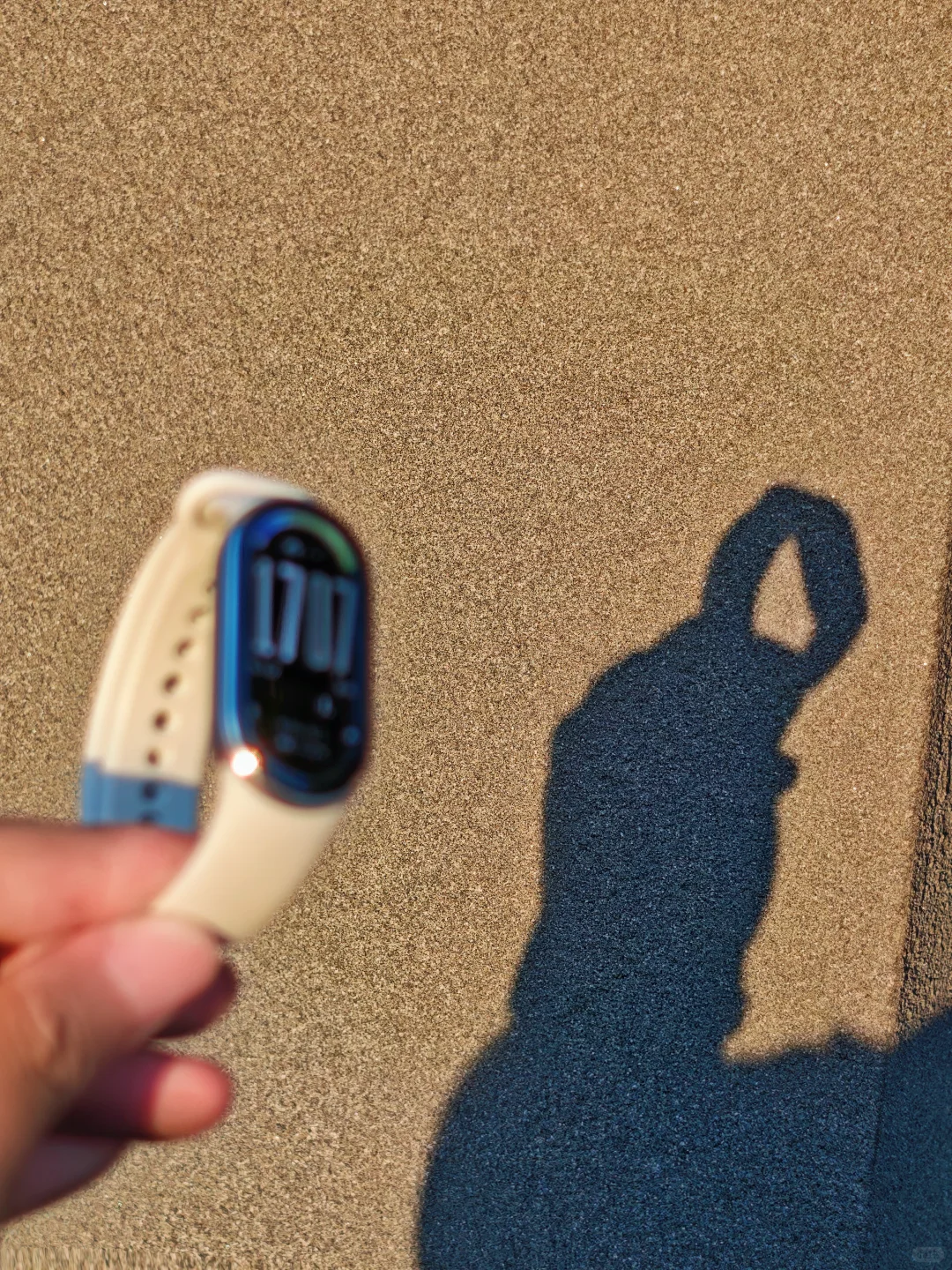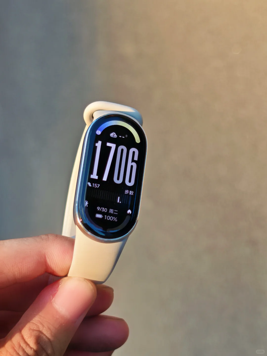 谁能拒绝银色手环的光影魔法啊!小米手环银色款在不同光线下,简直是腕间的 “小星光”~\n午后阳光下,表带折射出清透的金属光,配白 T 或运动服都自带清爽感,抬手时连光影都跟着灵动;傍晚路灯下,银色边框衬得深色表盘更清晰,亮起的屏幕光与金属光泽呼应,看时间都像在玩小彩蛋。\n颜值能打,功能也超贴日常!\n晨跑时,银色表身在阳光下不晃眼,屏幕数据清晰可见,实时看心率配速超方便;通勤挤地铁,抬腕刷 NFC 门禁,银色表带和背包金属扣莫名搭,低调又吸睛;晚上在家,台灯下银色手环轻轻震动提醒喝水,连睡眠监测报告弹出时,金属边框都像裹了层柔光,温柔又贴心。\n充一次用大半个月,戴着银色款从早到晚,既有配饰的精致,又有手环的实用,日常戴真的越看越爱!\n#小米手环 #小米 #智能穿戴 #高颜值数码 #智能手环推荐 #通勤好物 #运动手环 #小米奇妙
