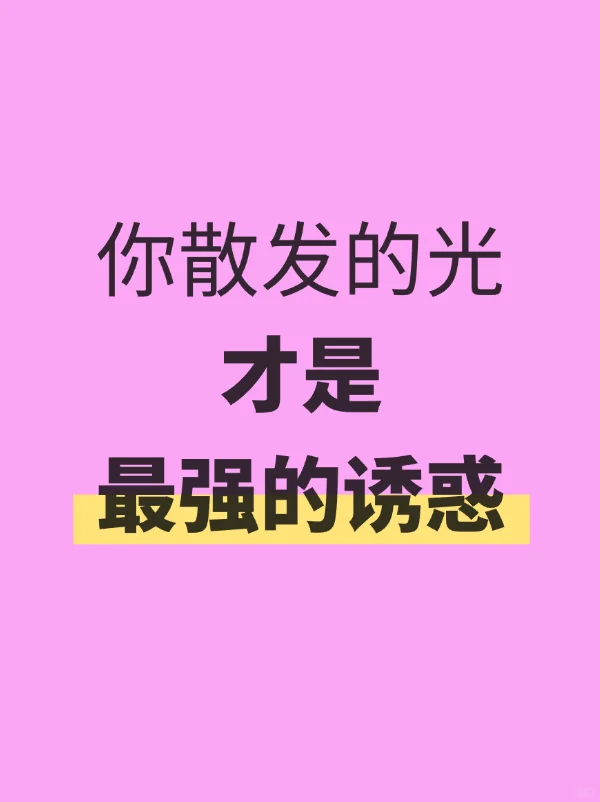 真正吸引人的,从来不是甜言蜜语,也不是讨好。\n而是你内里燃烧的光——\n那种光,不为别人而亮,它只是自然流淌,温暖又锐利。\n \n你走在街上,风轻轻挑起你的发丝,\n他看见的不只是你,而是你自由的呼吸。\n你笑着说话,他听到的,不只是声音,而是自信的节奏。\n你安静地坐着,他靠近,不为你做什么,而是为你那份完整心甘情愿地停留。\n \n真正的魅力,是你对自己的热爱,是你活成自己的样子。\n它像河流,悄无声息地冲刷世界,却不可阻挡;\n像光,穿透尘埃,却照亮所有靠近的人。\n你不需要取悦任何人,因为光本身,就是最强的诱惑。\n \n当你明白这一点,你不再焦虑,不再挣扎,\n不再用言语证明价值,也不再用行动讨好。\n你只需活出你的热烈,你的完整,你的自由——\n他自然会停下脚步,无法移开目光。\n \n你散发的光,是你生命的温度,是你的意志,是你的灵魂。\n它不喧哗,却足够震撼;\n \n不显摆,却无法忽视;\n不刻意,却足以让人心甘情愿沉沦其中。\n \n你无需追随,也无需追逐。\n光,自己会引来所有想靠近的人。\n你散发的光,才是最强的诱惑。\n \n#女人 #男人女人 #女性 #魅力 #男女情感 #女性成长 #男女关系 #男人 #婚姻 #男女
