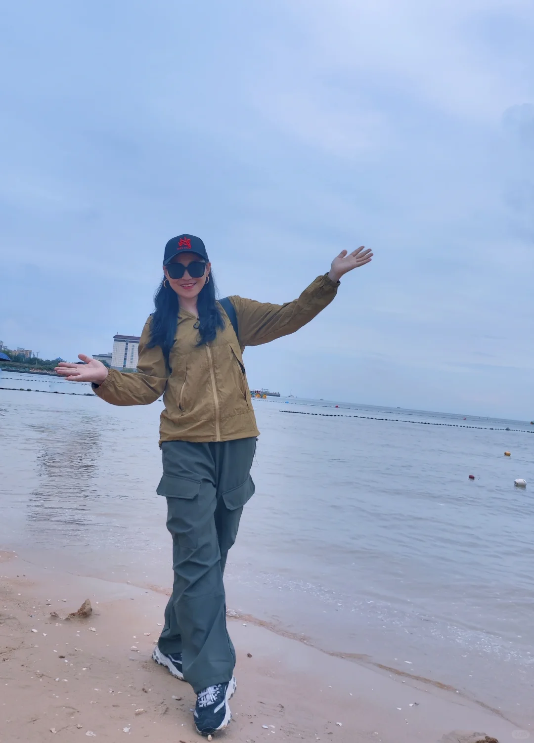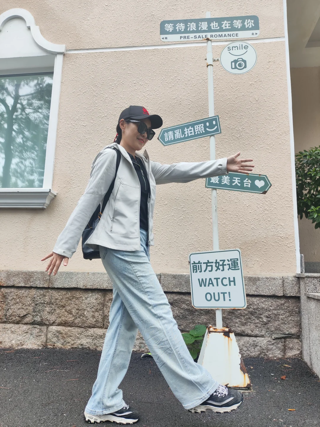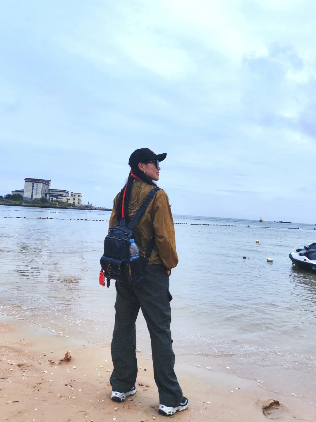 很日常的穿搭,在海边随便拍拍就很出片了。要是阳光再灿烂点就更好啦。真羡慕住在海边的人,每天都能看到这么美的大海。