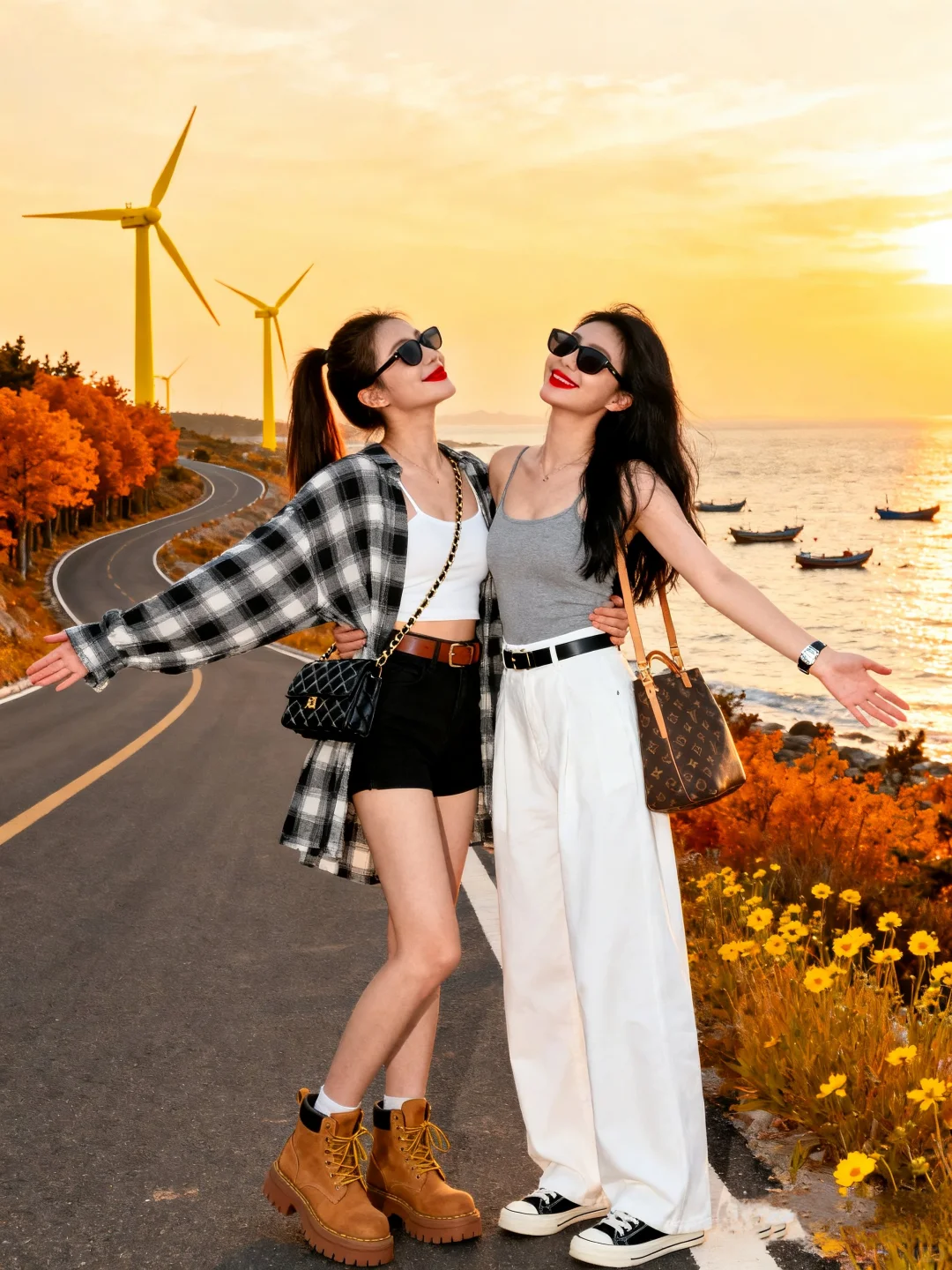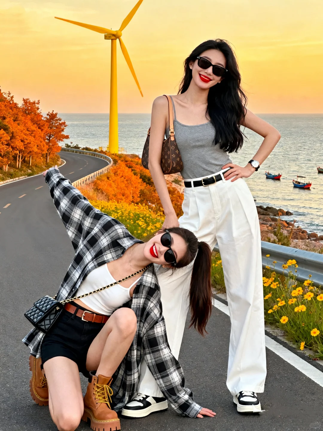 橘色的树,金黄的落日,波光粼粼的海面,在这绝美的海边公路,和闺蜜一起凹造型。每一张照片,都定格着我们的肆意青春,记录着只属于我们的闪光时刻。#拍照姿势 #闺蜜拍照📷 #女生的快乐从拍照开始