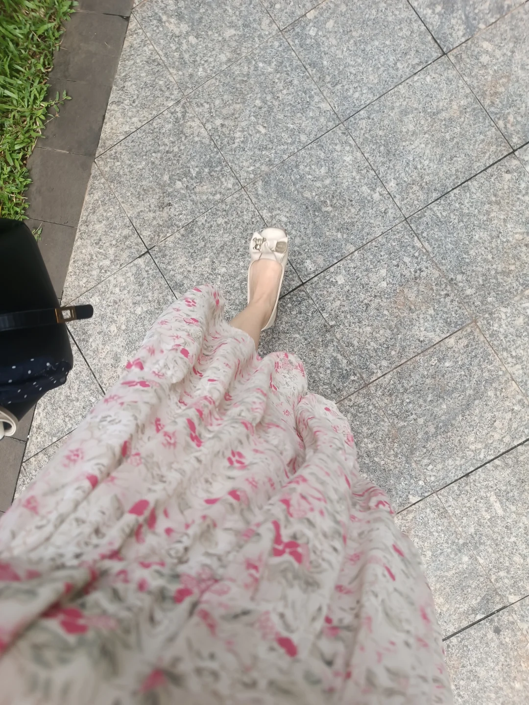 裙子在哪个光线下好看呀?\n今天周五穿了个休闲版小碎花裙\n恰好,碰上台风天,生怕裙子被风掀起来