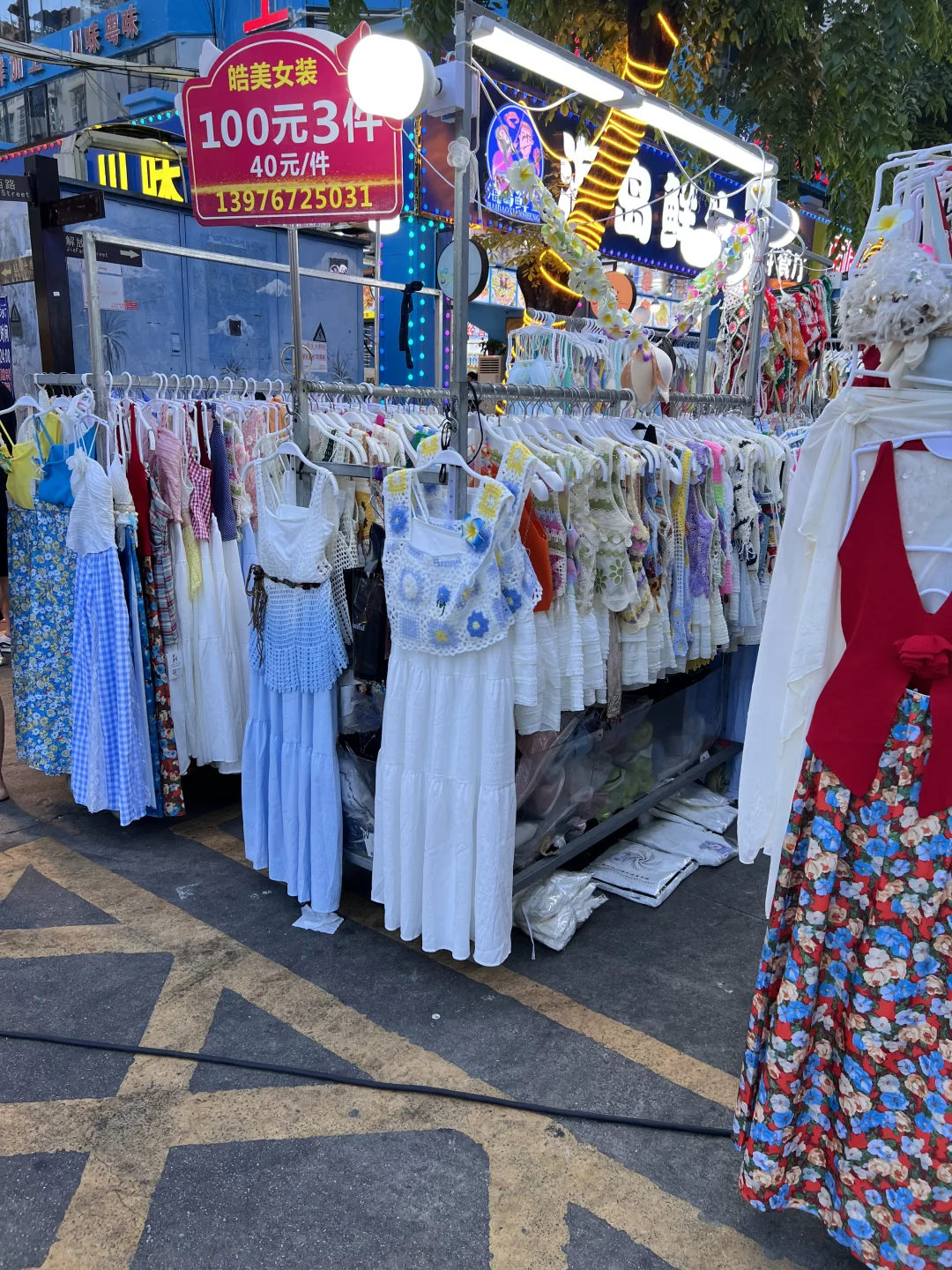 谁懂啊,没带够裙子来三亚,直接去夜市买了一堆,还挺便宜,反正是穿来拍照,质量好坏无所谓,便宜就行,真的有100块/3件\n.\n✅一市场夜市\n白天是正经的农贸市场,一到晚上就变身全是小摊的热闹夜市!一条街分两半,一半全是小吃,另一半卖衣服、鞋子、包包,摊位挤挤挨挨的。衣服巨便宜,吊带、岛服基本100块3件,摊主也挺好说话,砍价随便砍~本地人也爱来这儿逛,很有生活气\n❌路边好多海鲜店的人拉客,记住!眼神别飘,头也别回,直接不搭理就对了,不然容易被缠上\n.\n✅亿恒夜市\n三亚最火的网红夜市没跑了!人气直接拉满,卖的东西全到挑花眼——裙子、比基尼、岛服,还有墨镜、遮阳帽、编织包、拖鞋、珍珠饰品,连防水袋都有~水果、小吃、海鲜烧烤也不少,吃饭的环境还挺干净\n❌缺点就是人多车也多,挤到挪不动道!千万别开车或骑车来,根本没地方停,直接打车过去最省时省力\n.\n✅后海夜市\n这儿人不算多,但氛围感绝了,热闹又不挤!白天能去海边冲浪,晚上直接在夜市里蹦野迪,妥妥的年轻人聚集地~也有小吃摊,还有几家服装店能拍写真,逛着挺有意思\n❌就是物价有点坑,小吃味道也挺一般的,别抱太大期待,主打一个体验氛围就好\n.\n✅林旺夜市\n这儿主打本地口味的大排档,小吃就一小部分。卖衣服的不多,但价格特实在,还超好砍价——小吊带20块、沙滩裙50块就能拿下,性价比很高\n❌就是位置不太便利,停车也麻烦,不太适合专门跑一趟,住海棠湾附近的姐妹去逛刚好\n.\n【夜市指南⚠️】\n1️⃣骑电动车过来的不要乱停放🙅,会罚款!!\n2️⃣夜市有收费停车场,假期日人多建议打车过来,不然停车很麻烦🅿️\n3️⃣夜市都是小吃多,想吃正餐可以去不仔客海鲜(推荐香辣蟹面)、喜乐宅友融合中餐、红兴老火锅、不仔客糟粕醋椰子鸡,这几家味道不错,性价比也高\n4️⃣夜市很多工艺品当作普通首饰寻个开心,不要太当真了,一分钱一分货\n5️⃣夜市的衣服买的多都可以砍价,货比三家\n6️⃣买水果价格不贵,越晚越便宜,如果想邮寄回家建议还是直接去批发市场\n#三亚海鲜#三亚海鲜外卖#三亚美食推荐#第一市场海鲜店推荐#三亚平价海鲜 #三亚夜市 #三亚夜市攻略 #三亚旅游攻略 #三亚 #三亚吃喝玩乐