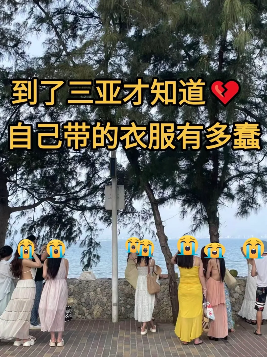 真的直接哭死,来三亚看了好多攻略,各种坑都避免了,结果没有告诉我不能带好看的小裙子啊三亚已回总结的精华\n-\n👗衣着建议:\n1.现在三亚天气27-31°左右,白天穿吊带、沙滩裙都可以,但是晚上温差巨大尤其是亚龙湾这边,一定要带外套,另外岛上紫外线强蚊虫多,建议带上防晒衣不晒黑还可以防叮咬\n2.越鲜艳的颜色越出片,尤其是薄荷绿、橙黄色绝美,再搭配草帽👒、编织包、夸张点饰品一拍一个不吱声\n3.来三亚一定要带一双好穿的拖鞋,最好是人字拖,运动鞋去沙滩上真的很难受\n-\n🏠住宿建议\n预算低:三亚湾、大东海,性价比高且出行很方便,离市区近物价没有那么离谱\n预算高:亚龙湾、海棠湾,酒店设施很好,入住体验会很不错,但是出行不便更适合开车一党\n-\n🍜美食建议\n小吃:馨妈家儋州米烂、正和中西茶店、斑斓馒头、华姐养生粥、阿菊炒冰\n正餐:南海黎村、骑楼老街香草鸭、疍家佬味道、小公主包鸡\n-\n🚫避雷建议\n1.三亚景区物价很高,能自带就自带,尤其是用餐方面,建议出去之后再吃\n2.黑车比较多,不要相信一口价,老老实实平台打车,司机不能随便更换路线更安全可靠,出租就直接导航\n3.玩潜水项目之类的需要在平台上找可靠的,注意看差评选择,不然随机容易踩坑\n4.西岛和蜈支洲岛风格不一样,西岛可以看日出日落赶海,蜈支洲岛更适合玩项目,时间充足建议2者都去\n5.不出岛的日落打卡点:椰梦长廊、鹿回头\n#海边度假 #三亚旅游攻略 #玻璃海 #三亚美食攻略 #三亚美食 #三亚 #三亚旅行 #海边穿搭