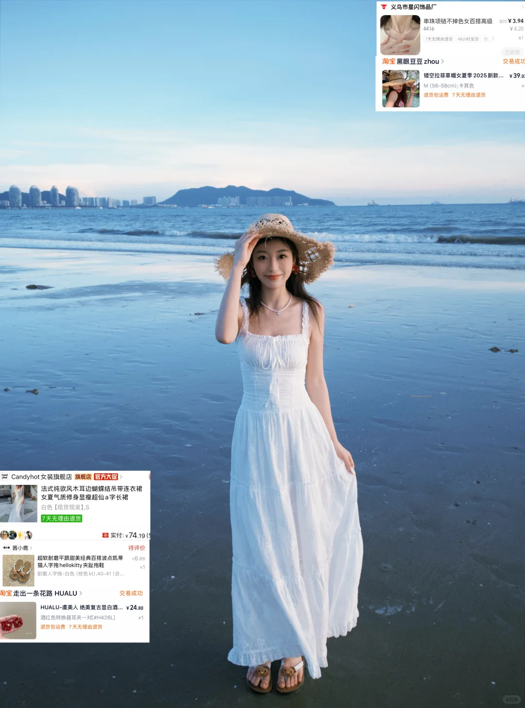 这条简直白月光长裙!也太适合海边啦谁懂\n而且面料也挺舒服 不怎么皱感觉不属于次抛衣服\n便宜又好穿的小白裙✌🏻\n \n