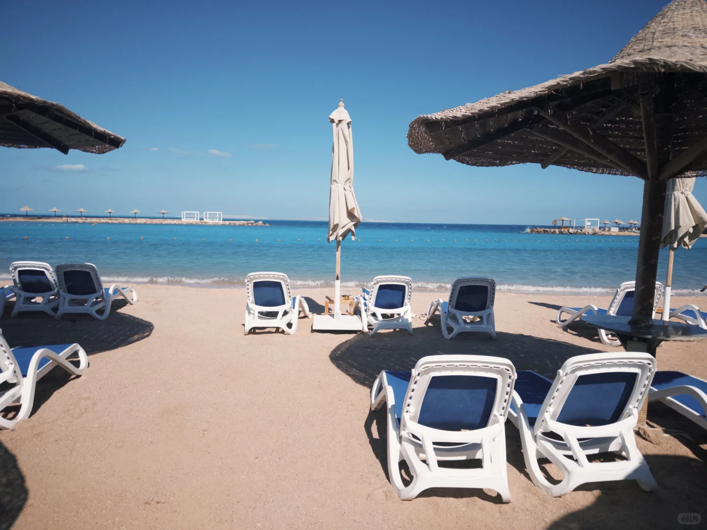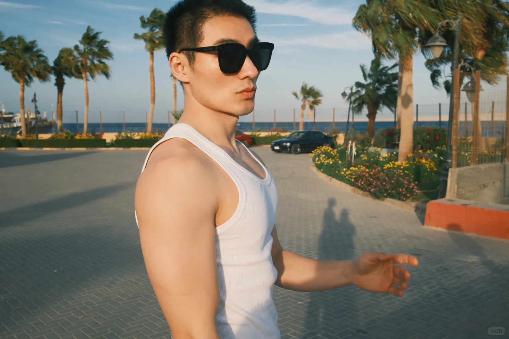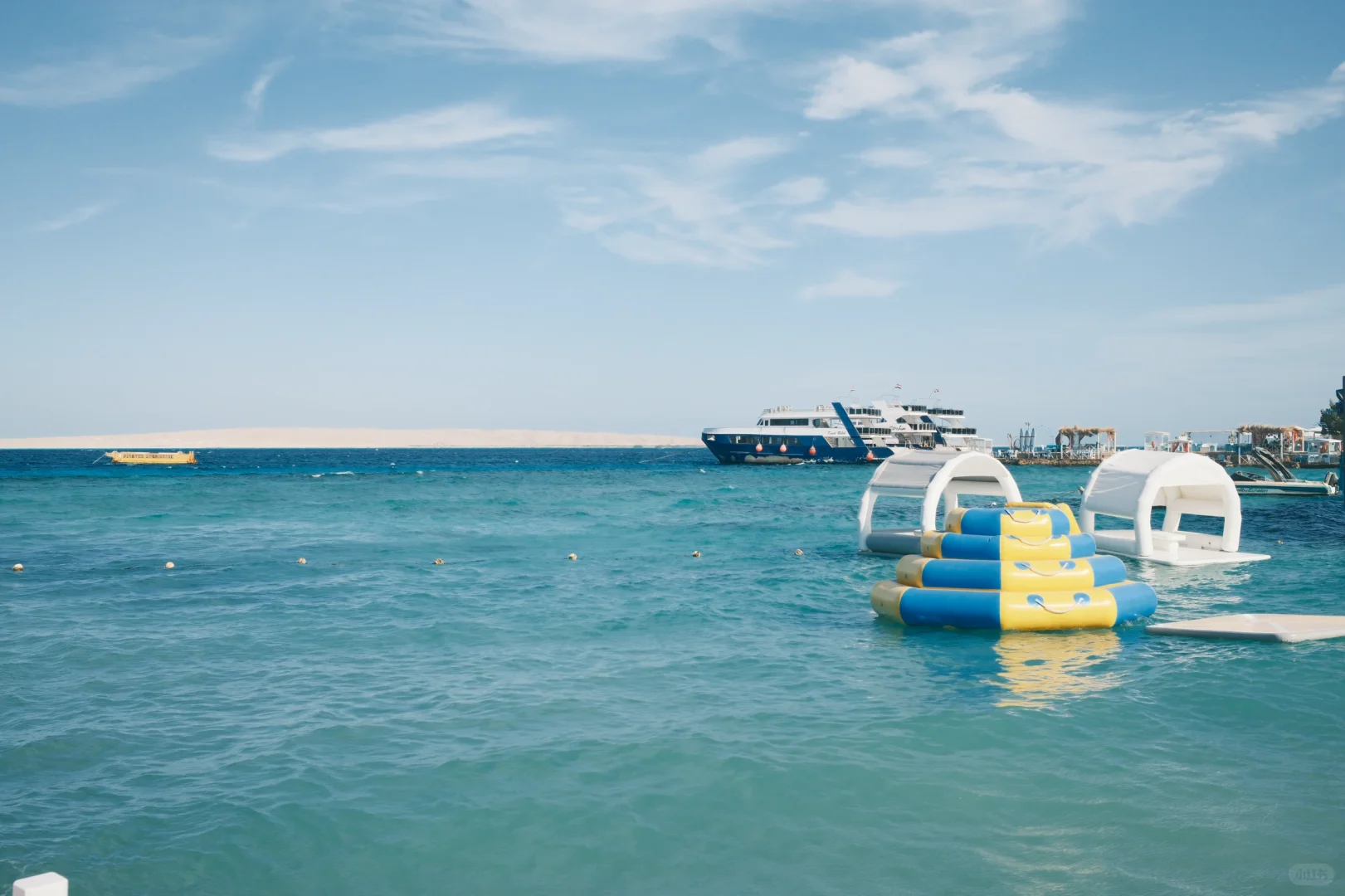 来到埃及的赫尔格达的红海、\n世界上最蓝的海洋🌊\n当到看到英国伦敦大本钟,埃及开罗金字塔、帝王谷…\n来到赫尔格达的红海,世界上最蓝的海洋…\n旅行的意义就是记住过去和此刻,\n更勇敢的去闯未来未知💪\n最近很喜欢听羽泉的《奔跑》\n吹风奔跑自由是方向\n追逐雷和闪电的力量\n把浩瀚的海洋🌊装进我胸膛\n即使再小的帆⛵️也能远航!\n题外话:\n赫尔格达好看的海滩都被酒店圈起来了\n这个海滩🏝️是在Hilton的海滩🏝️\n最后想说在埃及没有遇到骗子\n埃及很安全~有机会还要来埃及旅行\n \n#旅行的意义#Longchamp珑骧包\n#富士x100vi直出 #世界各地的海 #脂包肌#海滩拍照 #男生海滩穿搭#肌肉 #男生泳装 #体育生 #白背心#度假 #埃及 #红海 #赫尔格达#游泳#豹纹泳裤 #男生泳裤巴厘岛 #红海沙滩 介绍一个小哥哥 #海岛度假游 #冲浪生活 #旅行日记#冷白皮肌肉男