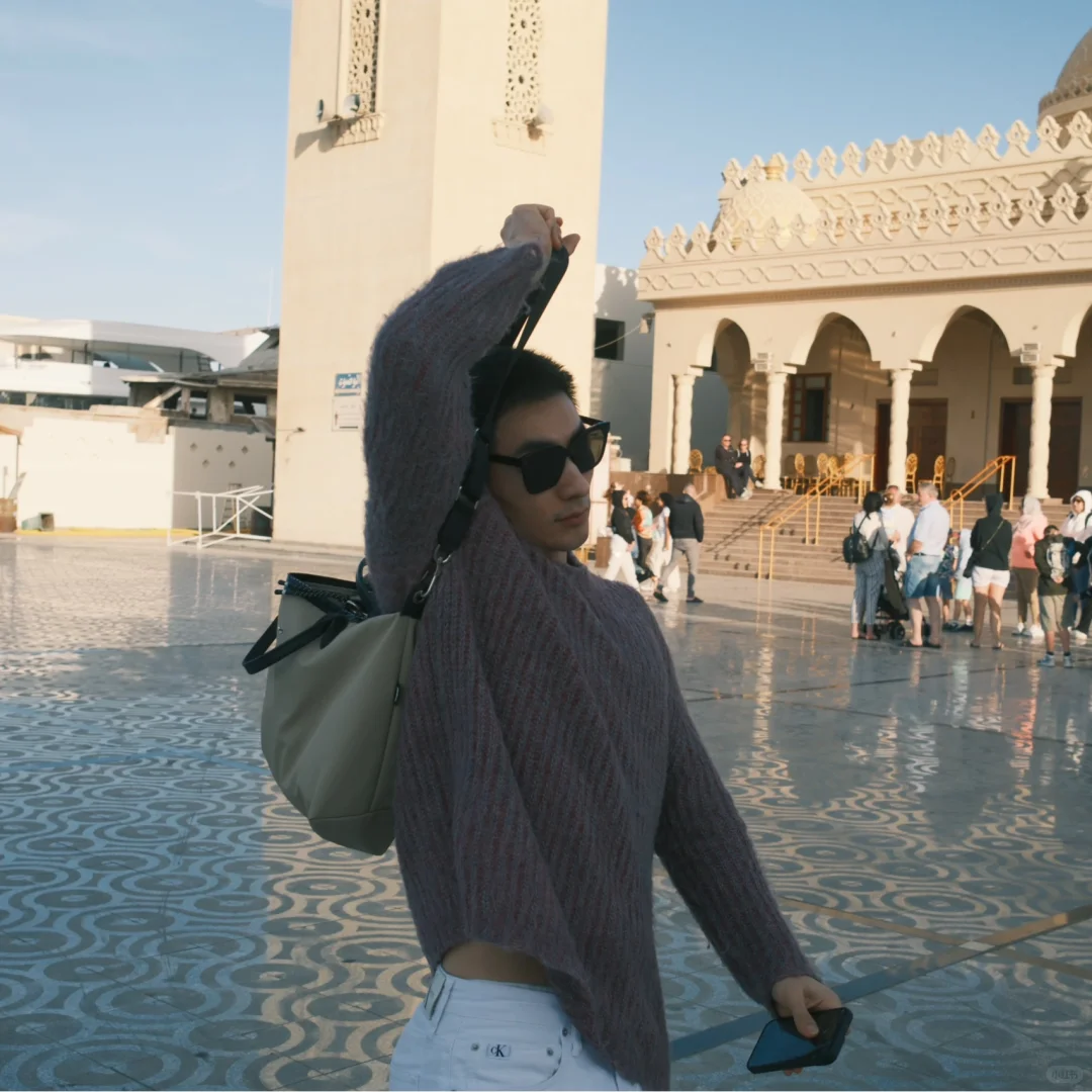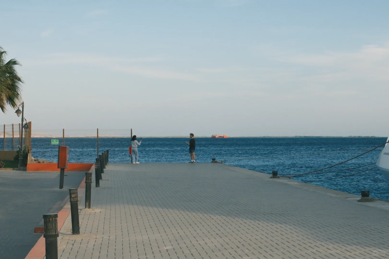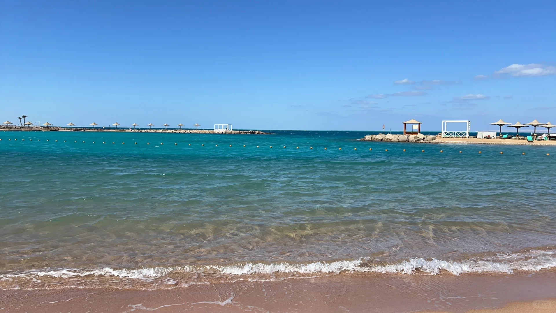 来到埃及的赫尔格达的红海、\n世界上最蓝的海洋🌊\n当到看到英国伦敦大本钟,埃及开罗金字塔、帝王谷…\n来到赫尔格达的红海,世界上最蓝的海洋…\n旅行的意义就是记住过去和此刻,\n更勇敢的去闯未来未知💪\n最近很喜欢听羽泉的《奔跑》\n吹风奔跑自由是方向\n追逐雷和闪电的力量\n把浩瀚的海洋🌊装进我胸膛\n即使再小的帆⛵️也能远航!\n题外话:\n赫尔格达好看的海滩都被酒店圈起来了\n这个海滩🏝️是在Hilton的海滩🏝️\n最后想说在埃及没有遇到骗子\n埃及很安全~有机会还要来埃及旅行\n \n#旅行的意义#Longchamp珑骧包\n#富士x100vi直出 #世界各地的海 #脂包肌#海滩拍照 #男生海滩穿搭#肌肉 #男生泳装 #体育生 #白背心#度假 #埃及 #红海 #赫尔格达#游泳#豹纹泳裤 #男生泳裤巴厘岛 #红海沙滩 介绍一个小哥哥 #海岛度假游 #冲浪生活 #旅行日记#冷白皮肌肉男