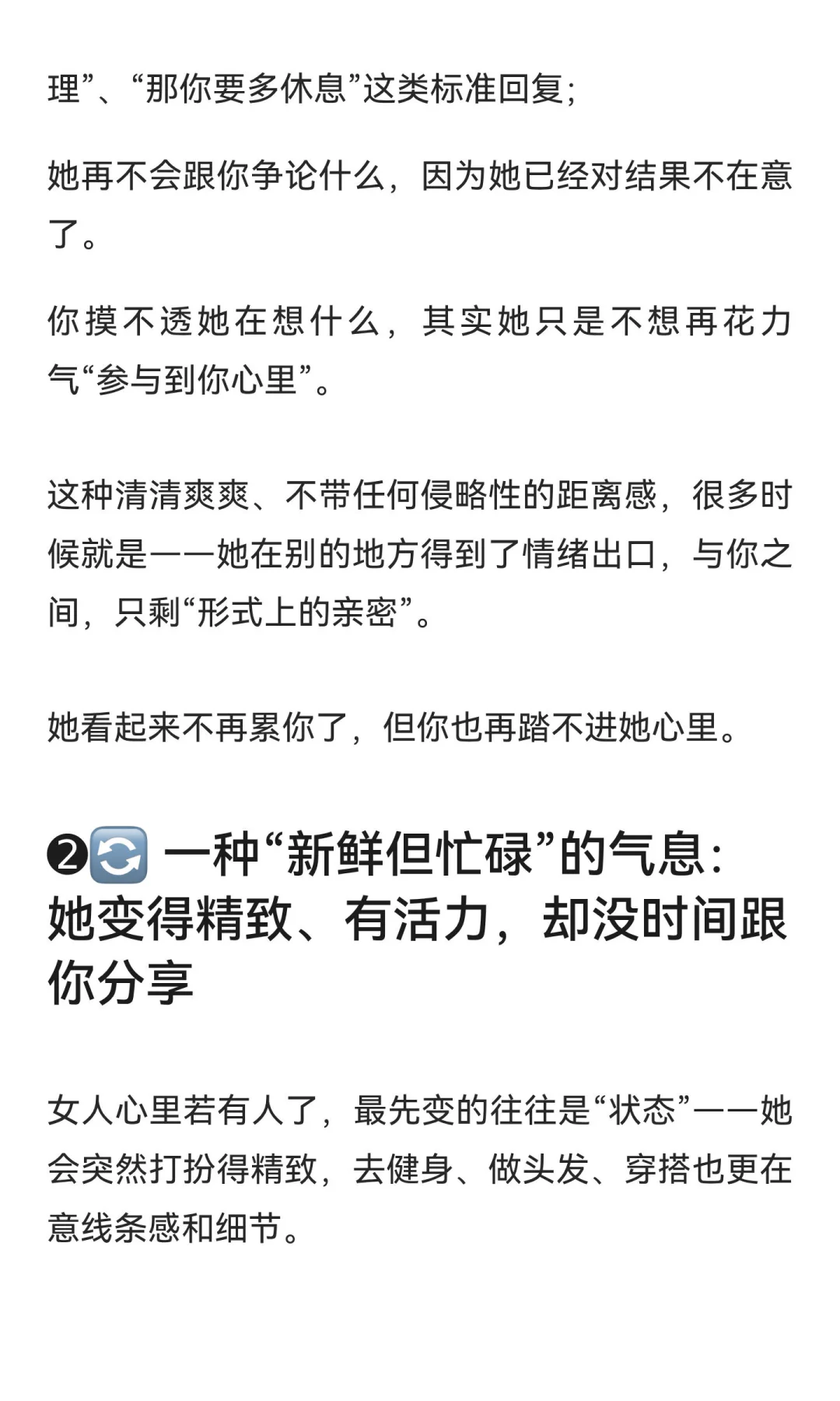女人在外有人时,可能表现出“清爽疏离”、“新鲜忙碌”或“防备内疚”的气息。这些变化并非出于爱意,而是心理上的疏离与逃避。察觉到这些微妙变化,才是认清现实的关键。
