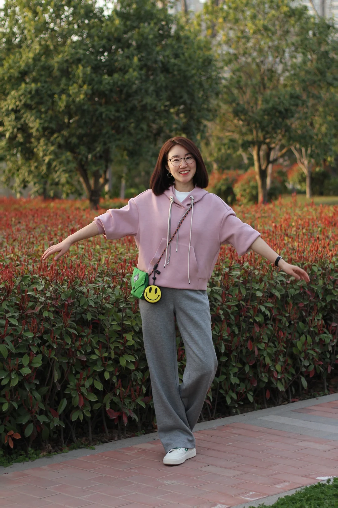 今天穿的粉嫩嫩\n队友抓拍了几张后说怎么有点像高圆圆\n被说像我的女神那我还是很开心的哈哈哈\n \n今天卫衣卫裤出行\n不要太舒服\n春天的公园生机勃勃\n太爱这样草长莺飞的人间二月天~\n \n#158小个子穿搭 #减龄穿搭 #中年老少女 #做一个精致自律的中年少女 #奔四也可以很精彩 #这是不会输给年龄的美 #做一个洒脱的中年少女 #我和我的大方脸 #刻在基因里的松弛 #显着年轻穿搭 #ootd每日穿搭 #春天穿搭 #卫衣穿搭 #卫裤女 #粉色穿搭