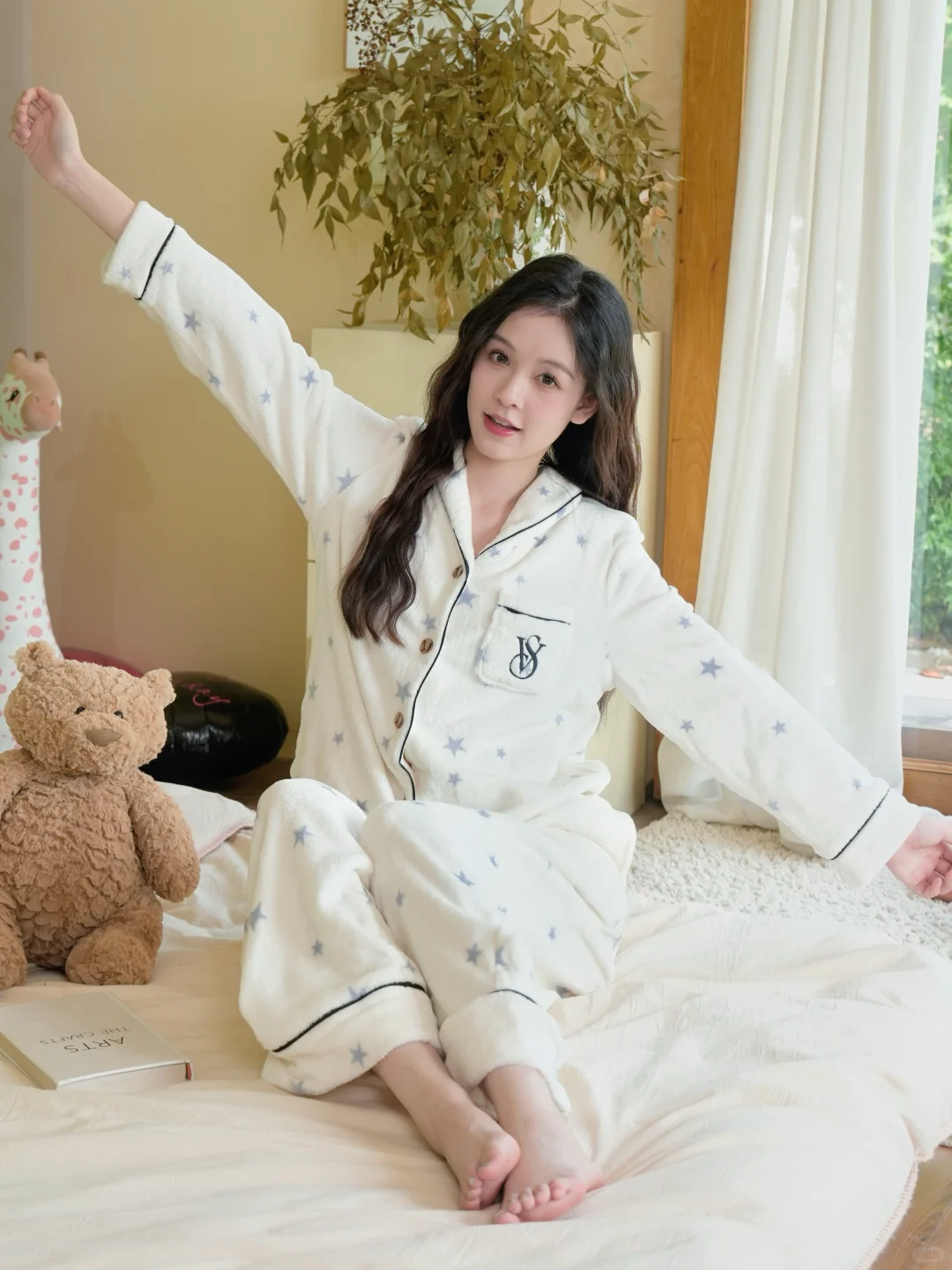 本J人已经在为冬天的幸福感做准备了!\n \n提前备好了🛒维密暖舒绒睡衣,刚试穿就被幸福到了\n这件是很有一些厚度的,但是上身也很轻盈☁️☁️☁️\n面料的绒毛很密实,接触皮肤软软乎乎✨还不容易静电粘头发\n❄️尤其适合怕冷的南方姐妹!\n \n新色🩵天蓝星芒,超级温油耐看~\n🥛奶白底色点缀可爱的星星印花,穿它睡觉,应该连梦境都是甜味的吧~\n \n#维多利亚的秘密 #维密暖舒绒睡衣 #软乎乎睡衣 #秋天的第一套OOTD #秋季穿搭2025 #早秋上新指南 #人总是在夏天怀念冬天 #秋天的正确打开方式 #小红书市集秋上新