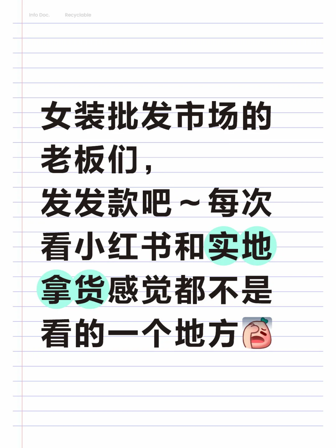 女装批发市场的老板们,发发款吧~每次看小红书和实地拿货感觉都不是看的一个地方,好的衣服贵我是能接受的,但是顾客群体她不能接受,小衫89觉的我赚60,动不动还某宝某多比价格,很多第一次合作的一批二批给的拿货价格也的确不低,我也不能天天去现场逛款,有时候线上选的款发过来有质量问题来回折腾真麻烦,所以我还是愿意去线下看好了拿现货或者长期合作熟悉的几家批,不用费口舌讲价,她懂我的顾客定位和拿货价格区间,我懂她的衣服风格,连退换货都很好说话。其实做服装大家都忙,很多批发大可不必初次不拿货就阴阳怪气,逛档口也是,不看看怎么知道适不适合我的店,拿货了不试试怎么知道我穿版好看不好看(在店里我一般穿好看的版顾客下单率超高)