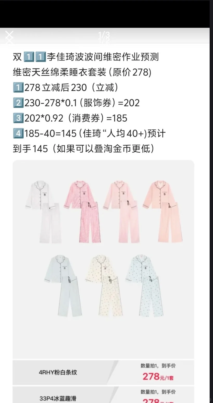 双十一李嘉琪维秘睡衣拼单