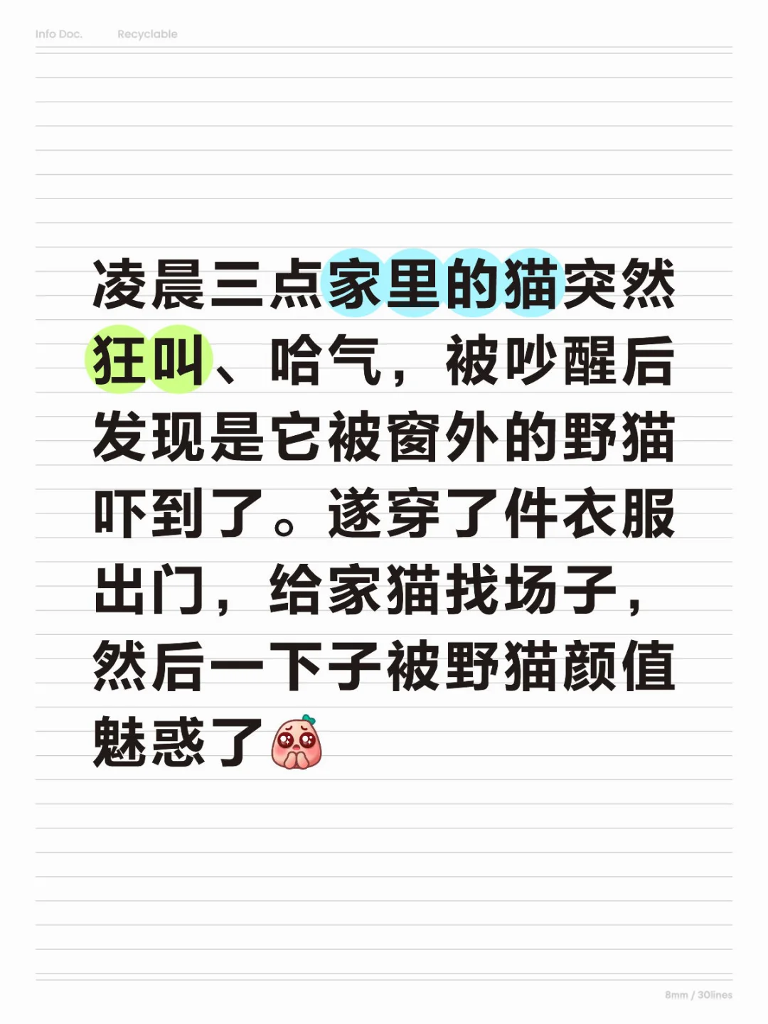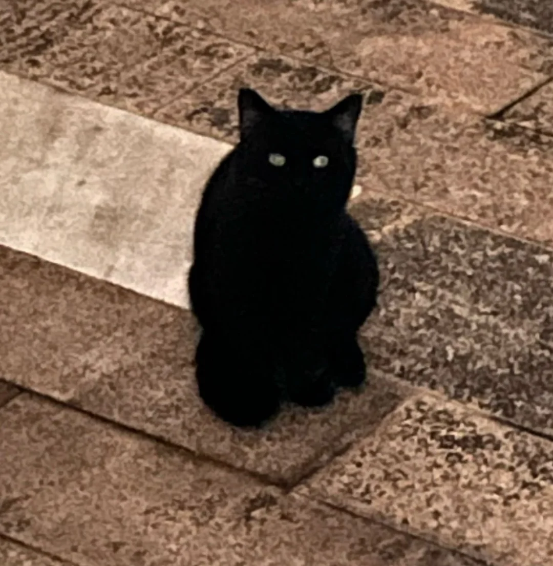 凌晨三点。\n睡得迷迷糊糊的时候,听见猫不停地哈气、发出“我要鱼我要鱼要鱼”的声音。\n我家有两猫,相处和谐偶尔打闹,不是从小养一起。\n老二抱来的时候老大已经养了一年,即便如此老大也没太大的排斥,很快就一起玩了。\n老大脾气特别好,从来不哈气,老二刚来的时候哈过,此后除了被肌肉老大啃疼了,从来不哈气。\n[抽泣R]我当时以为两猫闹出什么惊天大矛盾,下死手开启世子之争了。\n慌慌张张起床,摸到老大在窗帘后,两猫对峙。\n然后再一看。\n另一只好大好黑……怎么长得有点不像老二。\n在窗外——\n登时就给我干清醒了。\n老大特别紧张,不停地叫,我就穿了件衣服出门。\n[完啦R][完啦R][完啦R]\n一只纯黑的猫杵在家门口,巨无敌可爱。\n我现在完全被魅惑住了。\n黑猫一晚上来了我家边上好几次,好像很在意我家老登,但是特别怕我。\n如果我献出自家老登的话……它愿意来我家吗[抽泣R][抽泣R][抽泣R]\np2是小黑猫\np3是我家老登,p4是我家小登\n#猫 #猫猫 #萌宠 #萌物 #黑猫 #无法抵挡的魅力 #全世界都吻了上来 #小猫#可爱
