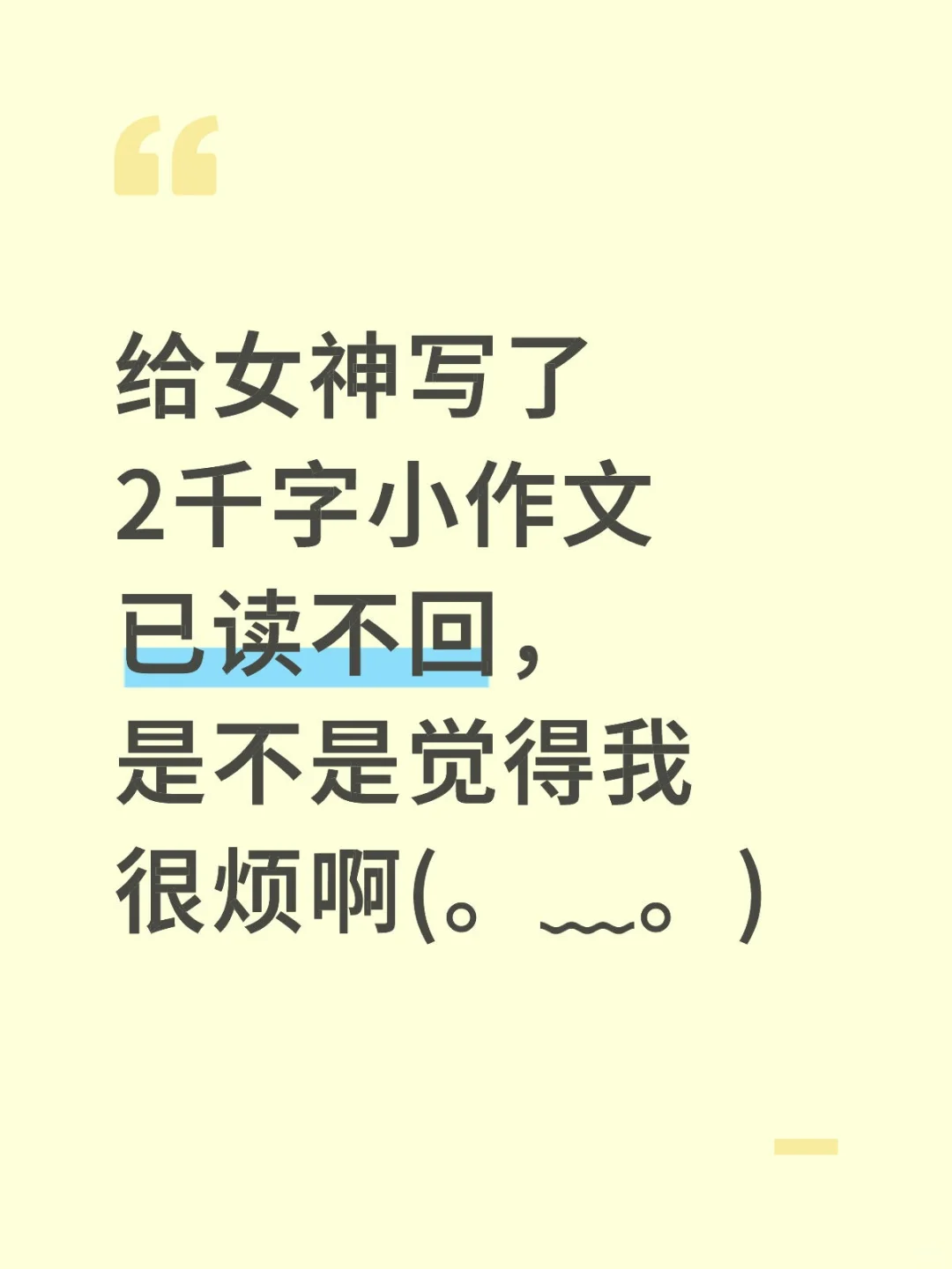 我昨天晚上失眠满脑子里都是女神画的图,写的文,精神状态恍惚下决定给女神写一篇小作文表达我对女神的爱意,为了让女神不那么嫌弃我,我还一边翻名著翻找能够夸奖女神的诗词,删删减减耗费三个小时写了一篇将近2千字的小作文,虽然光“超级无敌喜欢女神”这句话就重复了三遍……在我反复检查后深呼吸点击了发送,发给女神的那一瞬间,我既兴奋又忐忑,像一个刚给crash递情书的娇羞小女孩。在这样的情绪下,我睡着了,今天早上起来脑袋清醒了,为我昨天的事情感到有些羞耻,点开女神的私信发现已读但没有回复,这时更是羞耻心爆棚,想把那段私信撤回,但却无能为力。只能希望女神把我当作胡言乱语的疯子,但是我还是为女神没有回复我有点小伤心,好吧,其实是大伤心。我为女神没有回复我想了一大堆理由,但还是没有把自己哄好。我写的这篇作文是不是给女神的现实生活带来的麻烦啊(╥_╥)我现在还有一点不知名的小尴尬,不敢去看女神写的文画的图了,原本打算下个月底找女神约稿也被我放弃了……\n二编:非常感谢大家对我的安慰,我女神昨天晚上回我啦!她说好像是因为系统什么的,不过我没听懂。她回了我很长一段,啊啊啊O(≧口≦)O好开心!#同人 #同人女 #同人文 #同人图