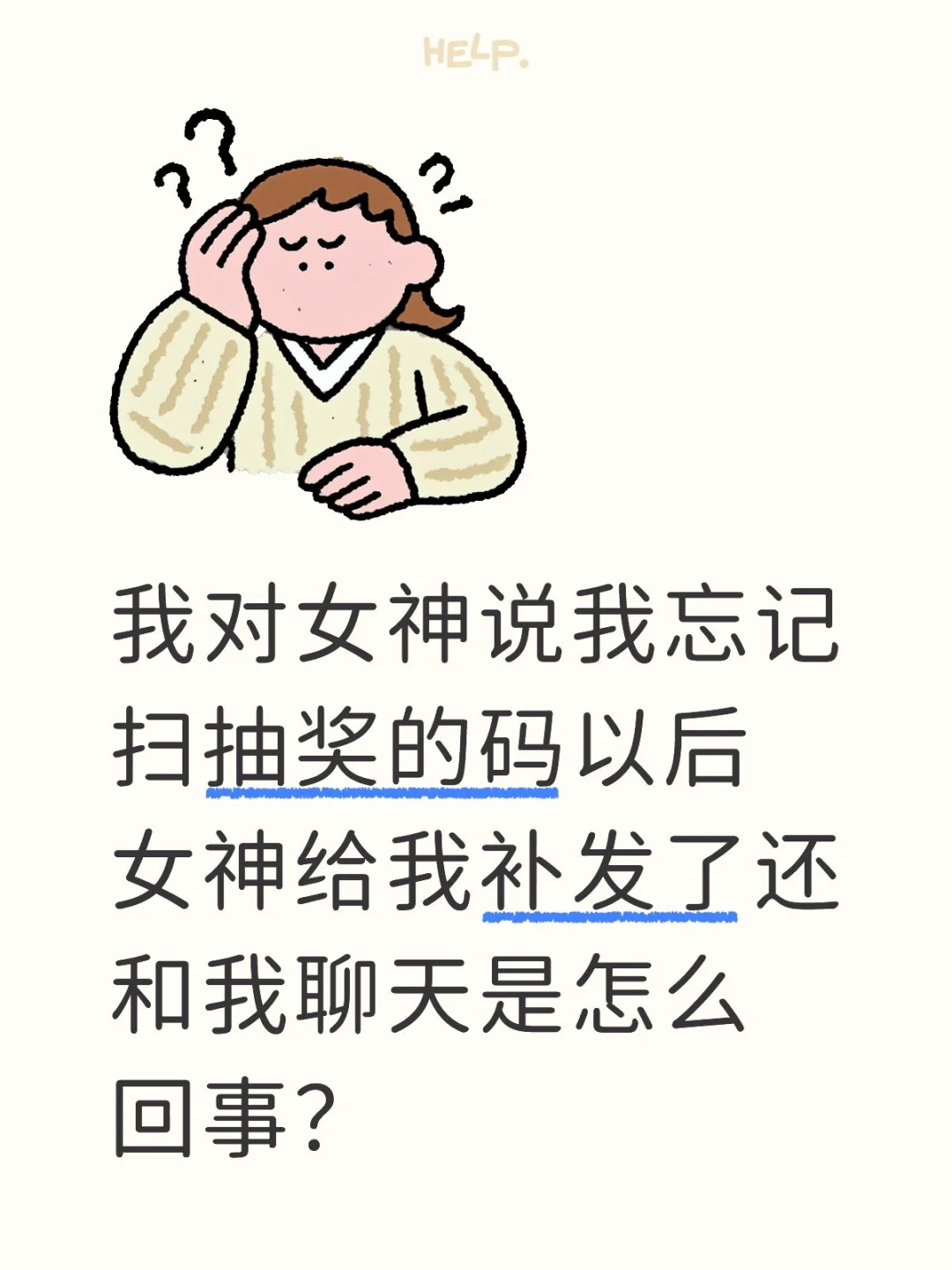 我对女神说我忘记扫抽奖的码以后女神给我补发了还和我聊天是怎么回事?