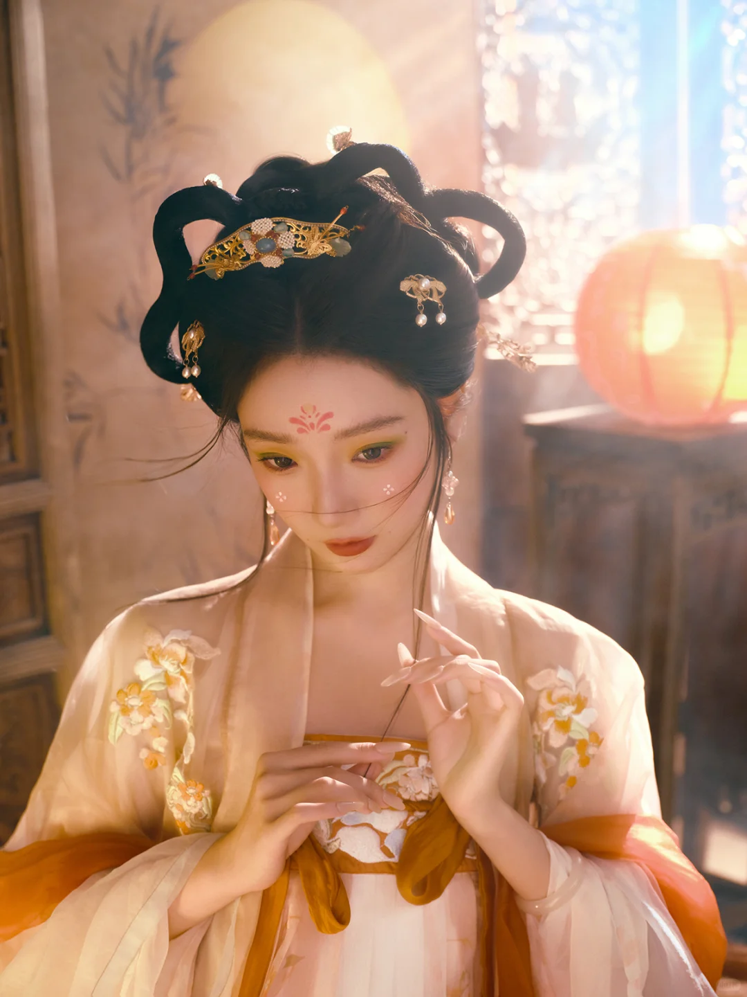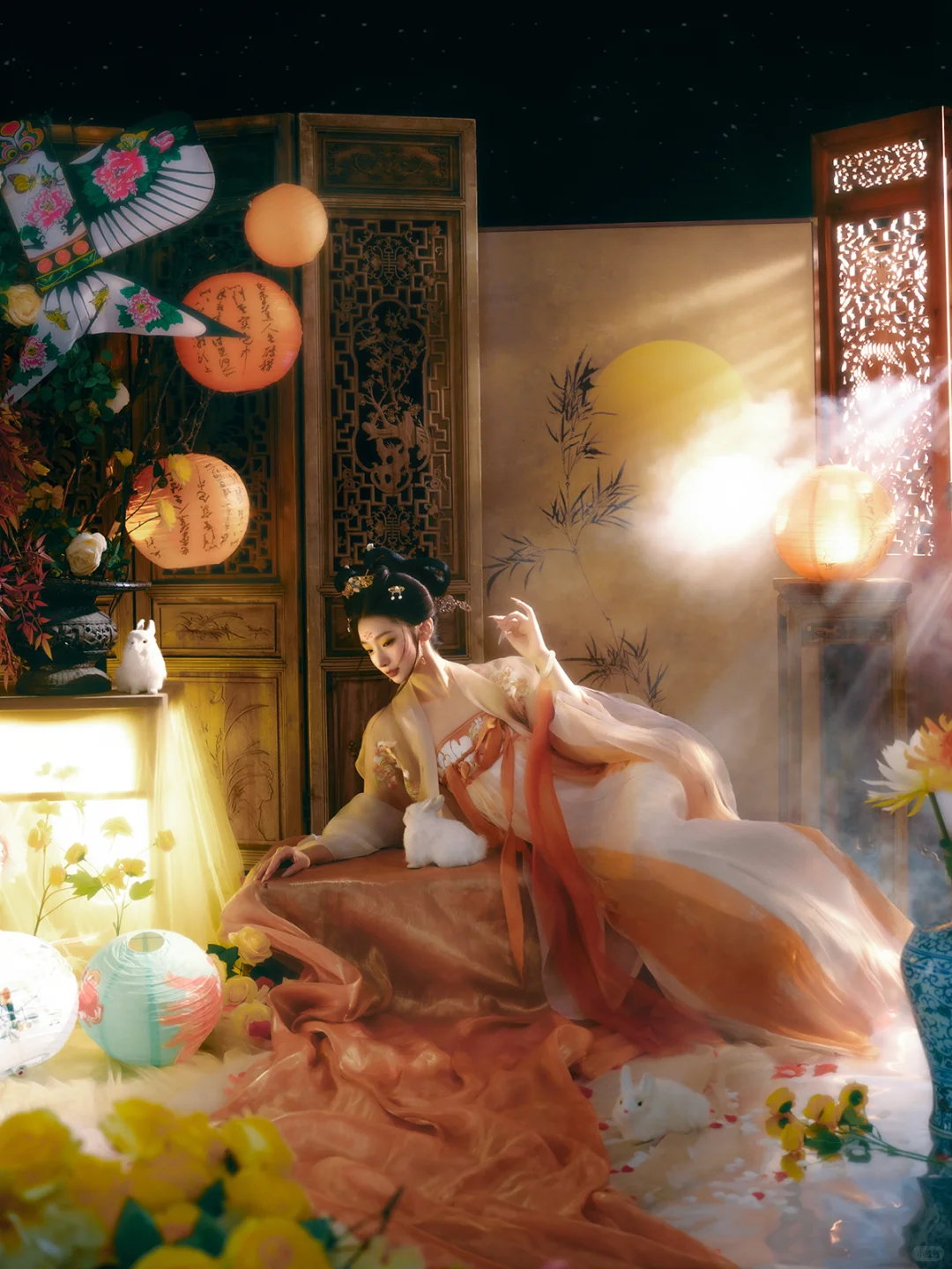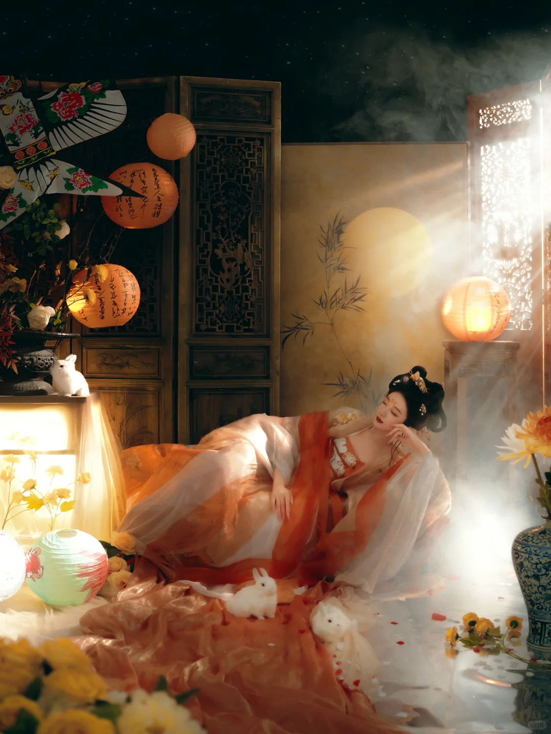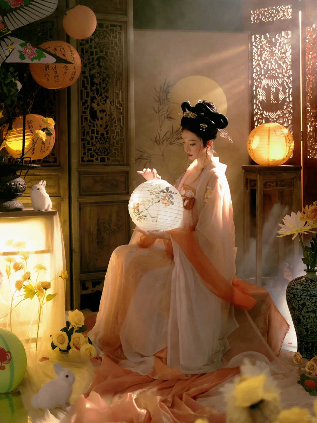 古风 写真 汉服 摄影 中秋 唐风\n \n柔纱广袖的齐胸襦裙\n杏色纱衣绣着桂花与流云\n橙红内里像裹了块蜜橘糖\n袖摆垂坠时能扫起一片烟霞\n让人沉浸在古韵芳华中\n \n————点击主页 查看更多风格————\n✅专注写真18年 坚持原创风格\n📸明星级拍摄团队 全程1v1服务\n🚫无任何隐形消费 品质保障\n预约拍摄可在下方💬召唤小编\n摄影出品: @HITOMI 瞳摄影古装写真馆\n \n▫️人像写真▫️室内棚拍▫️北京拍照\n▫️古风写真▫️汉服写真▫️国风写真\n▫️北京摄影▫️少女写真▫️写真风格\n \n#古风写真 #国风摄影 #东方美学 #唐风 #古装写真 #古风 #国风写真 #汉服拍照 #北京写真 #汉服约拍