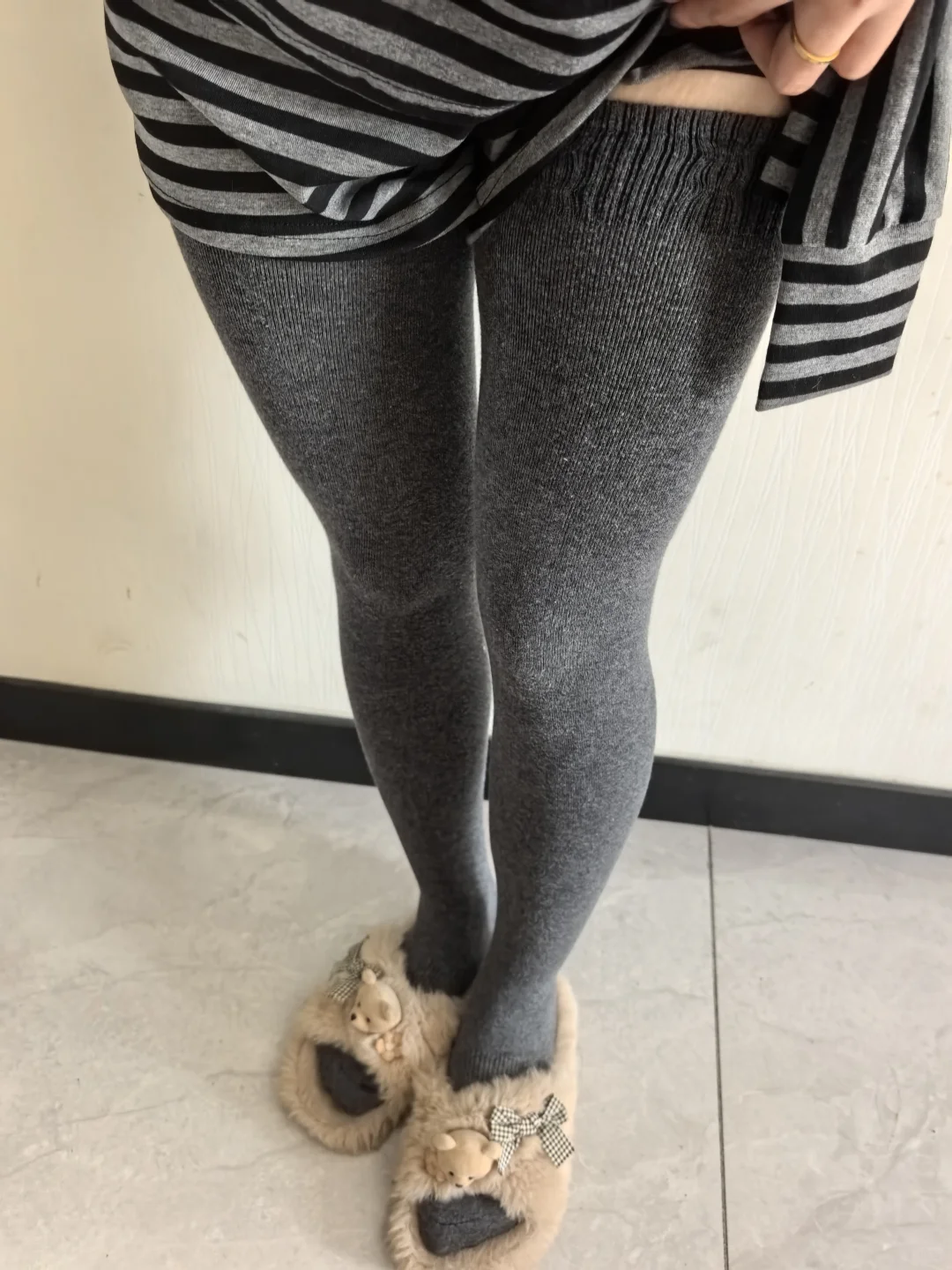 谁懂啊!之前买大腿袜踩的坑能绕衣柜三圈——要么勒得大腿根发麻,坐下全是红印子;要么走两步就卷边,手伸裤子里扯袜子的样子像在跳奇怪的舞;更别提洗两次就松垮变形,堆在脚踝像堆咸菜。直到挖到这双“本命大腿袜”,才知道什么叫“穿了像没穿”的快乐!\n先说最戳我的“不勒肉黑科技”!它的袜头是加宽的高弹面料,比普通袜子宽了快一倍,哪怕我这种微胖梨形,把腿🦵肚子上的小肉肉藏好后,袜头也能稳稳贴住,不会卷也不会卡。之前穿别的袜子,久坐后一脱裤子,大腿根的勒痕能留两小时,这双全天穿下来,皮肤还是滑溜溜的,连印子都没留!\n再夸夸它的“防滑魔法”!袜口内侧有隐形的硅胶条,不是那种硬邦邦的塑料条,是软乎乎的、贴在皮肤上几乎没感觉的那种。早上赶地铁跑两步,中午去楼下买咖啡大步走,下午在工位上翘腿敲键盘,袜子始终乖乖待在大腿根,完全不用偷偷伸手去拽,体面感直接拉满!\n质感也绝到离谱!是那种雾面的棉线面料,摸起来软fufu的,不像廉价袜子反光显廉价,腿线看着直了不少。而且它不是薄得一吹就破的那种,厚度刚好适合春秋,冬天穿在裤子里当秋裤也不臃肿,一双能顶两双用!\n现在我衣柜里的旧袜子全被我扔了,就留着这双换着穿。不管配短裙还是阔腿裤,出门再也不用纠结“袜子会不会掉”,安全感直接拉满!真心建议所有姐妹试试,我赌你穿一次就会和我一样,再也离不开它~\n#大腿袜#全棉大腿袜#可以穿到大腿根的袜子#百搭大腿袜 #显高显瘦显腿长#大腿袜推荐#孕妇加大码大腿袜#浅秋系本命饰品#秋冬配饰不重样#小红书市集秋上新