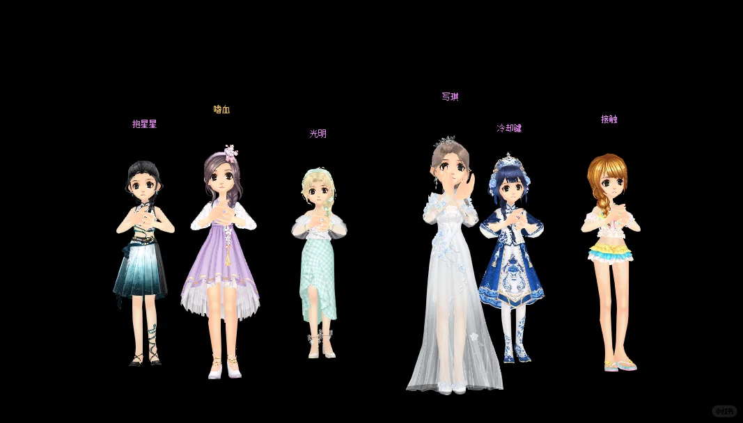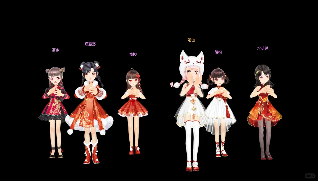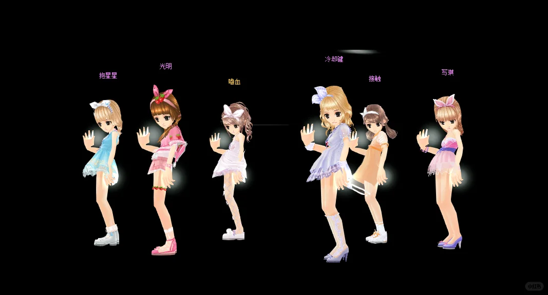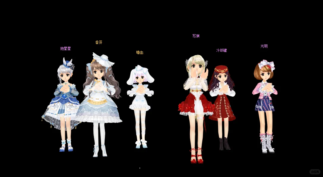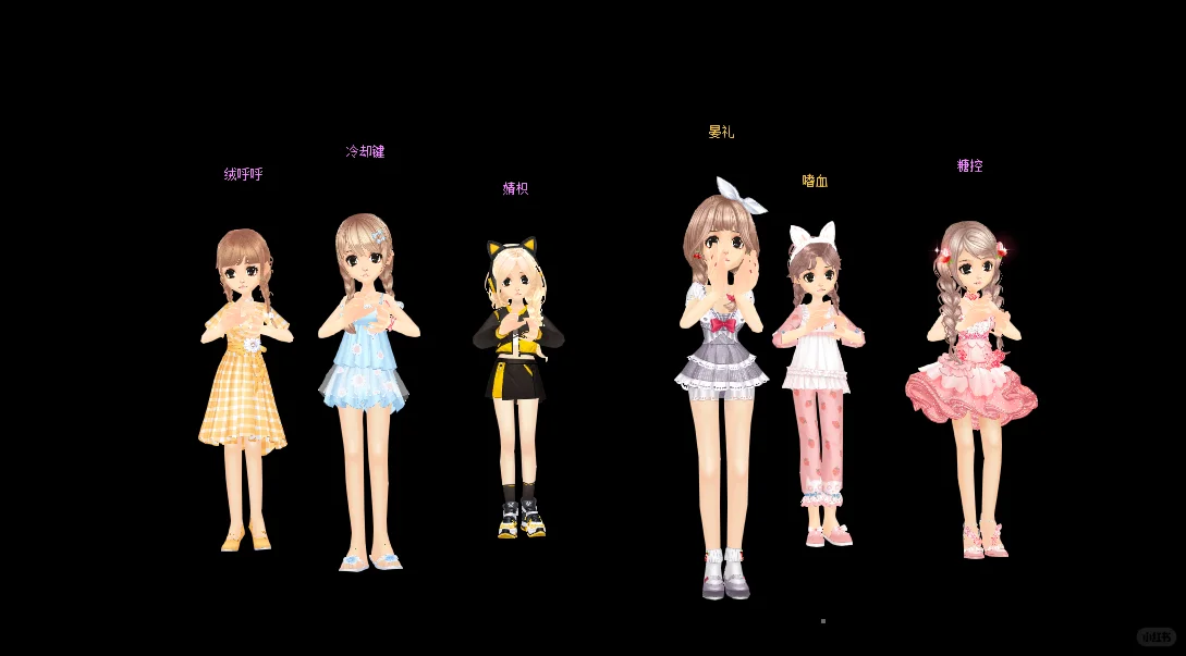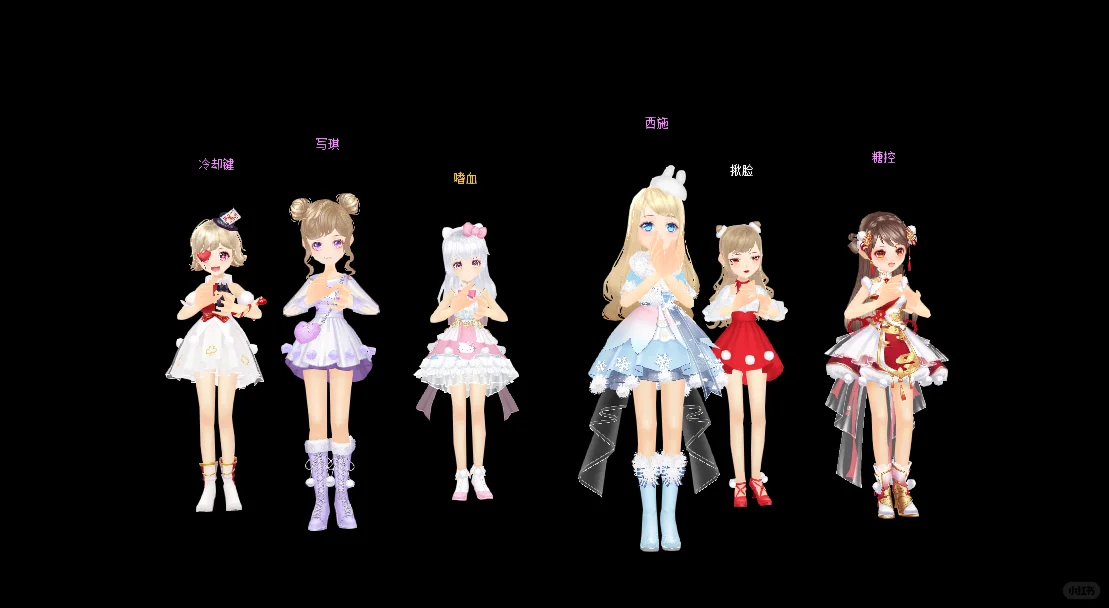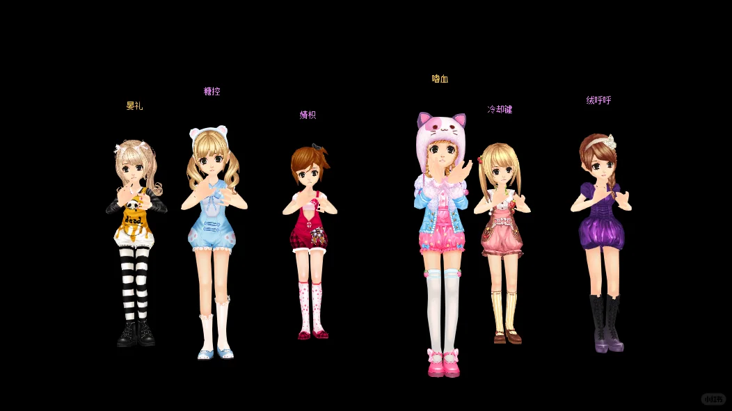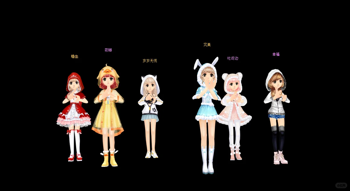 🎀小腿长短袜\n🎀头上大蝴蝶结\n🎀连帽一套\n🎀束腰绑带裙\n🎀小红鞋洋装短裙\n🎀一前一后麻花辫\n🎀鞋面交叉\n🎀灯笼裤\n🎀长泳衣太阳帽\n🎀裙摆一圈毛球短套\n🎀中国结一套\n🎀皮裤\n🎀单侧麻花辫\n🎀袖口荷叶边\n🎀兔耳结发饰一套\n🎀长短靴一套\n🎀珍珠发箍短套\n