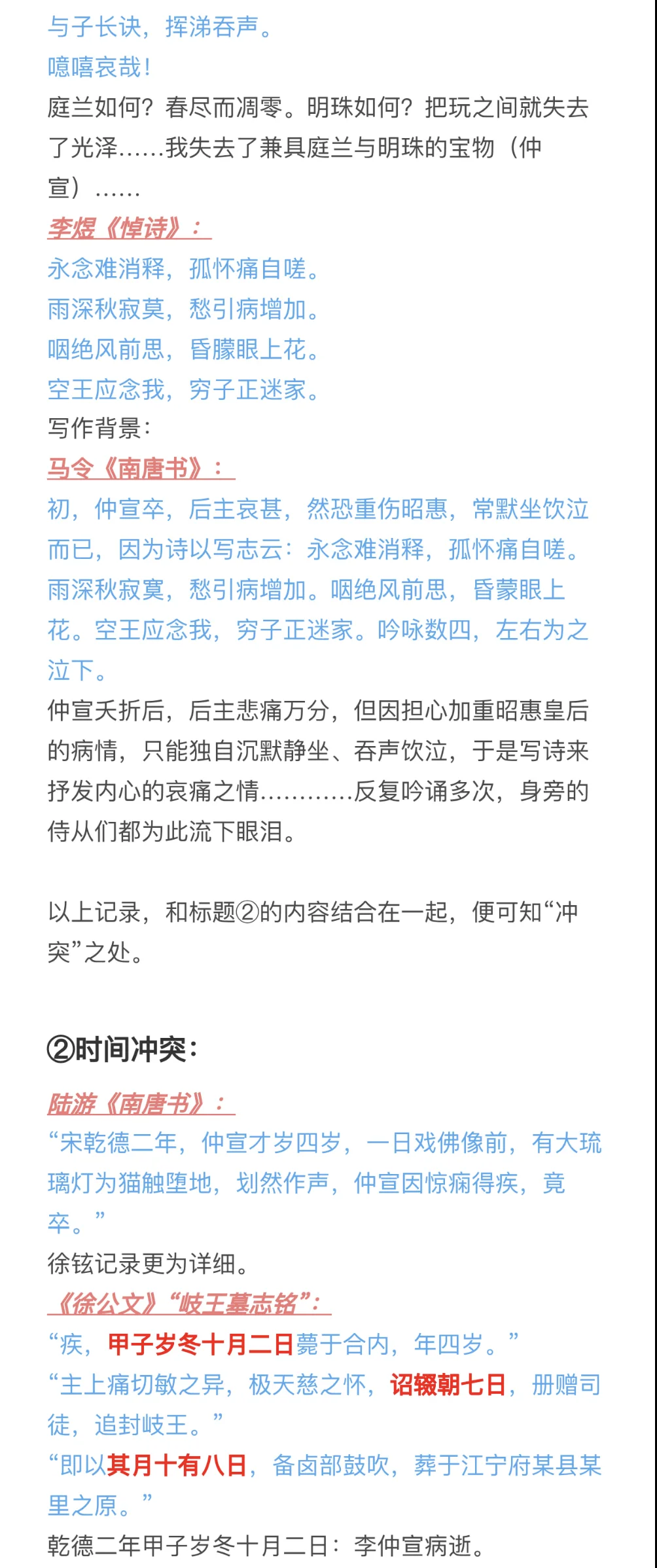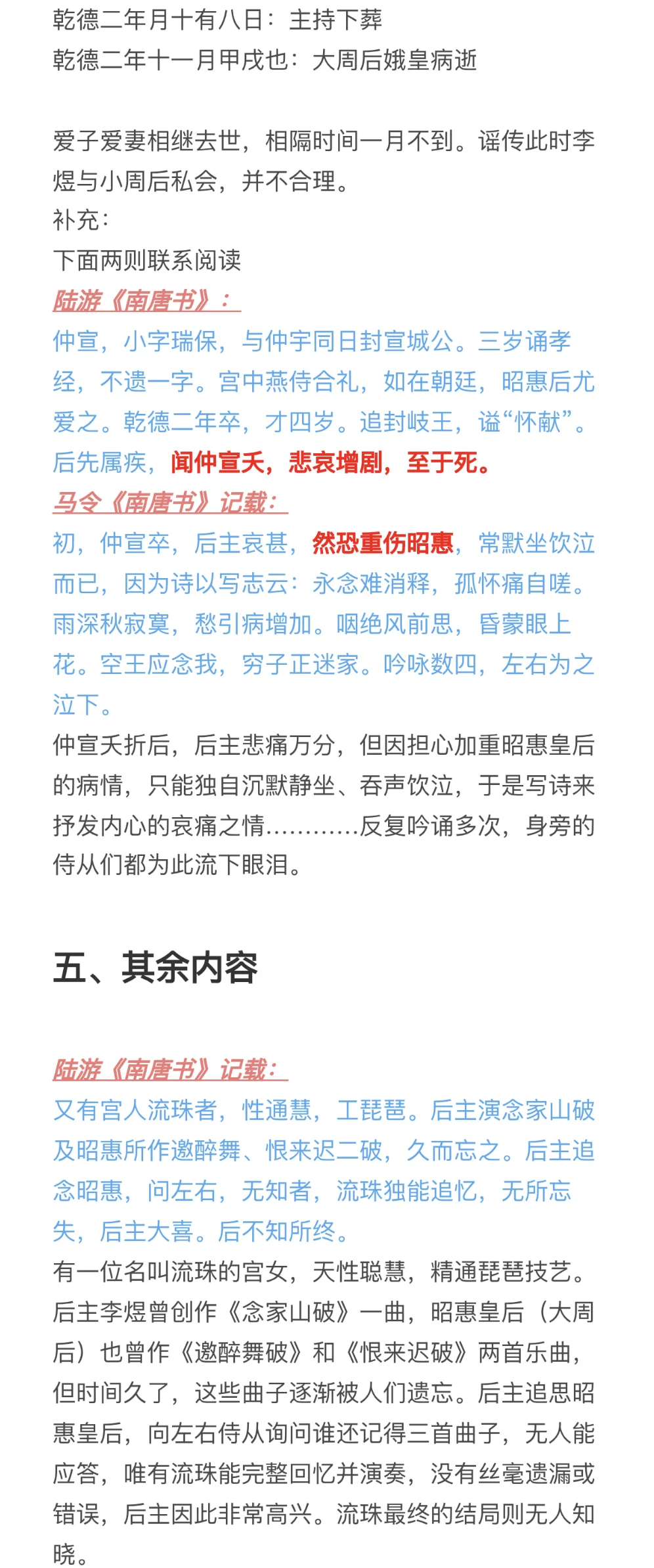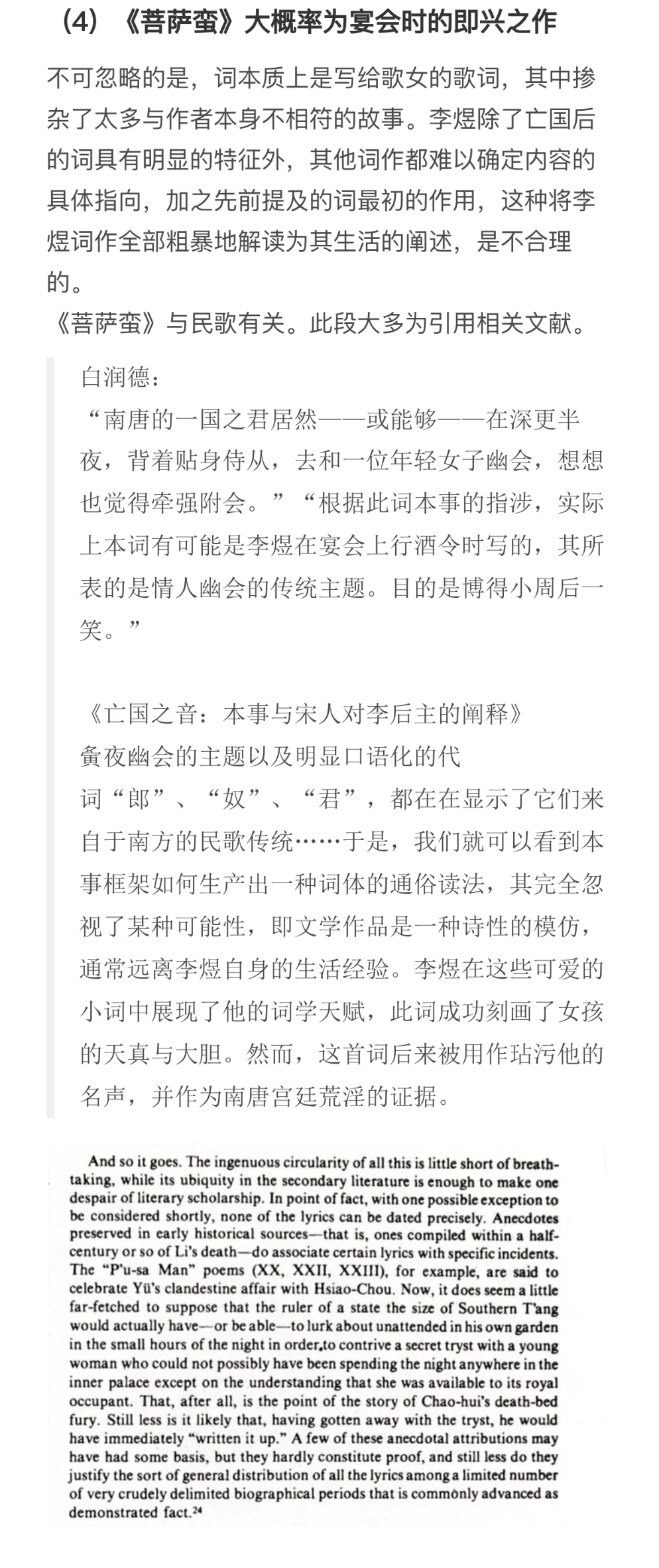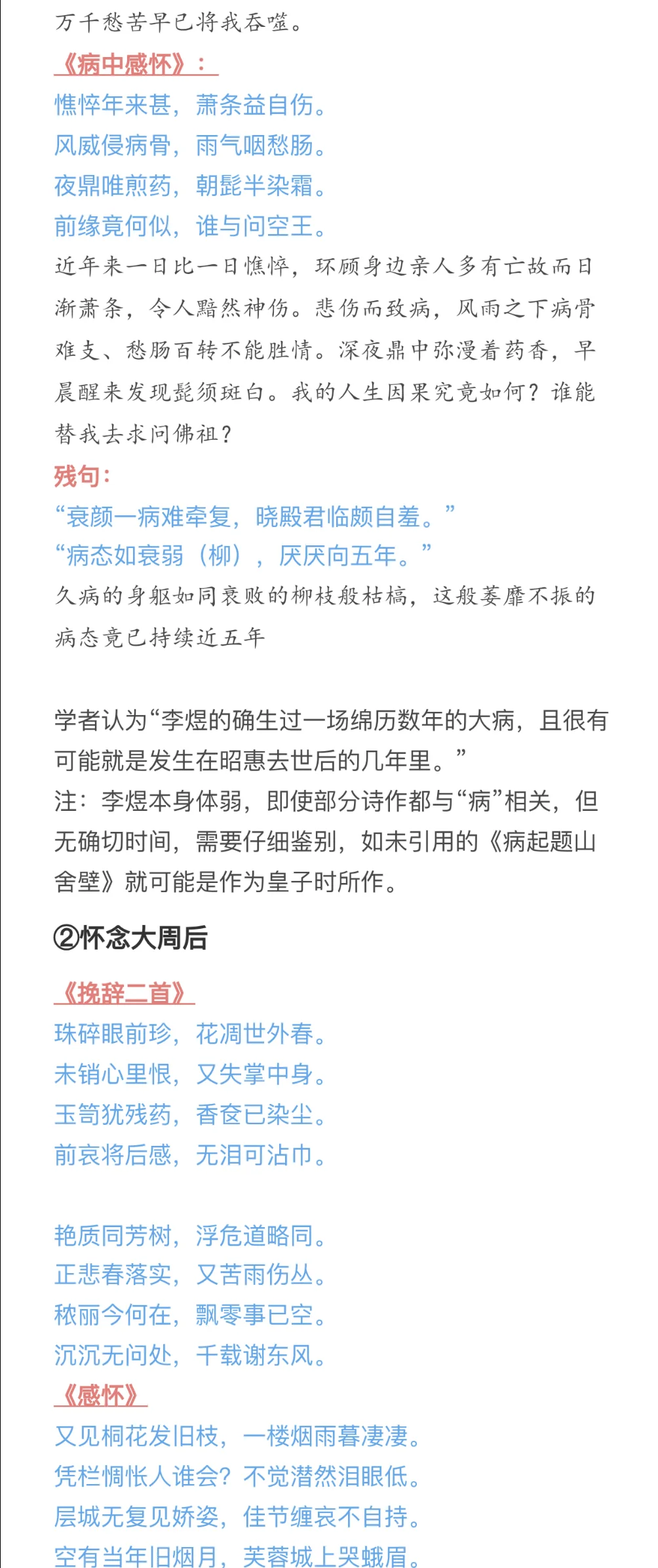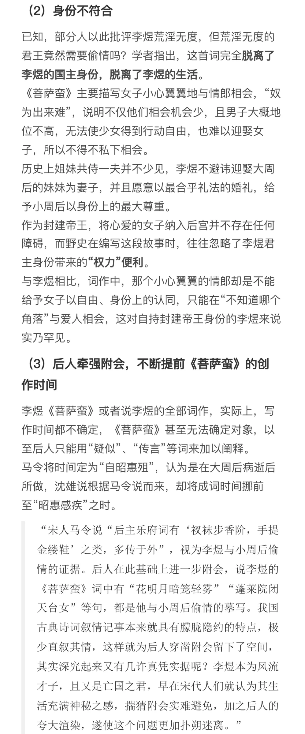 因为上一个版本有疑问,且最近这方面问题蛮多的,再写一篇[抽泣R]\np3-6:史料冲突(和第一版差别不大)\np6-8:《菩萨蛮》不合理之处(有新增)\np9-12:李煜与大周后感情深厚(有新增)\np12-15:时间不合理(新增)\np15-17:其他(新增)\n \n参考:《南唐史》、《李煜<菩萨蛮>三首非为小周后所作》、《亡国之音:本事与宋人对李后主词的阐释》、《Lyric Poets of The Southern T\'ang:Feng Yen-ssu, 903-960, and Li Yu, 937-978》、《武夫当国》、《作为诗人的南唐三主》、《论李煜其人》、《风流才子,误作人主》、“汉诗大观”\n \n#李煜 #史同