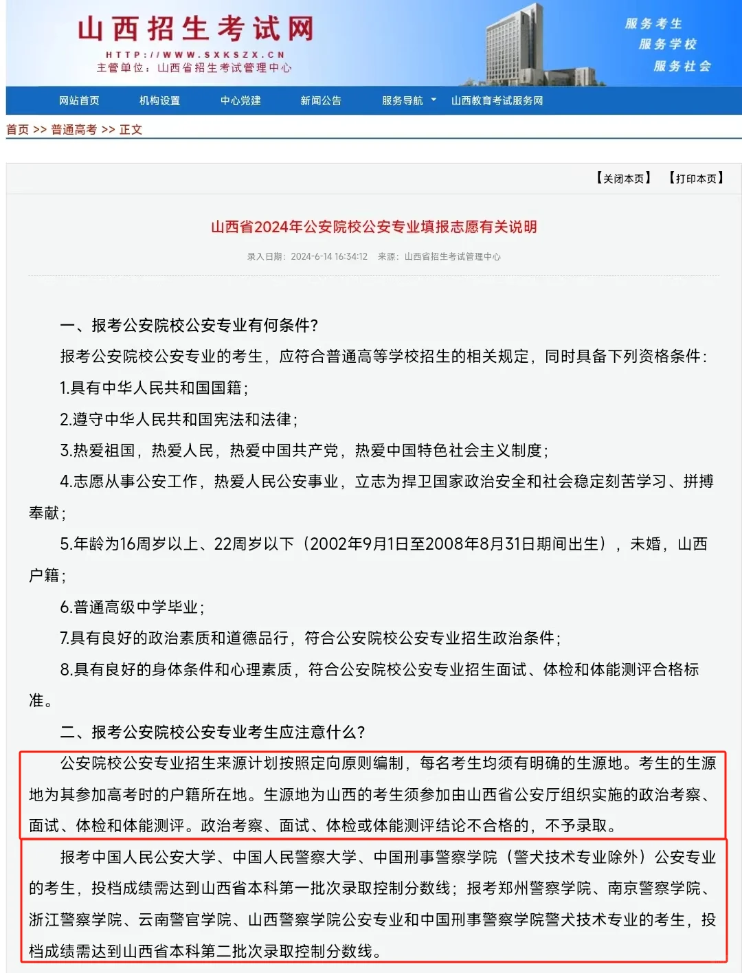 山西省公安院校公安专业志愿填报要求