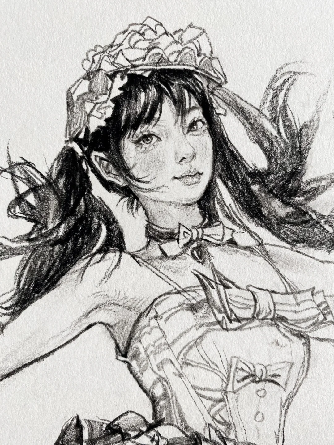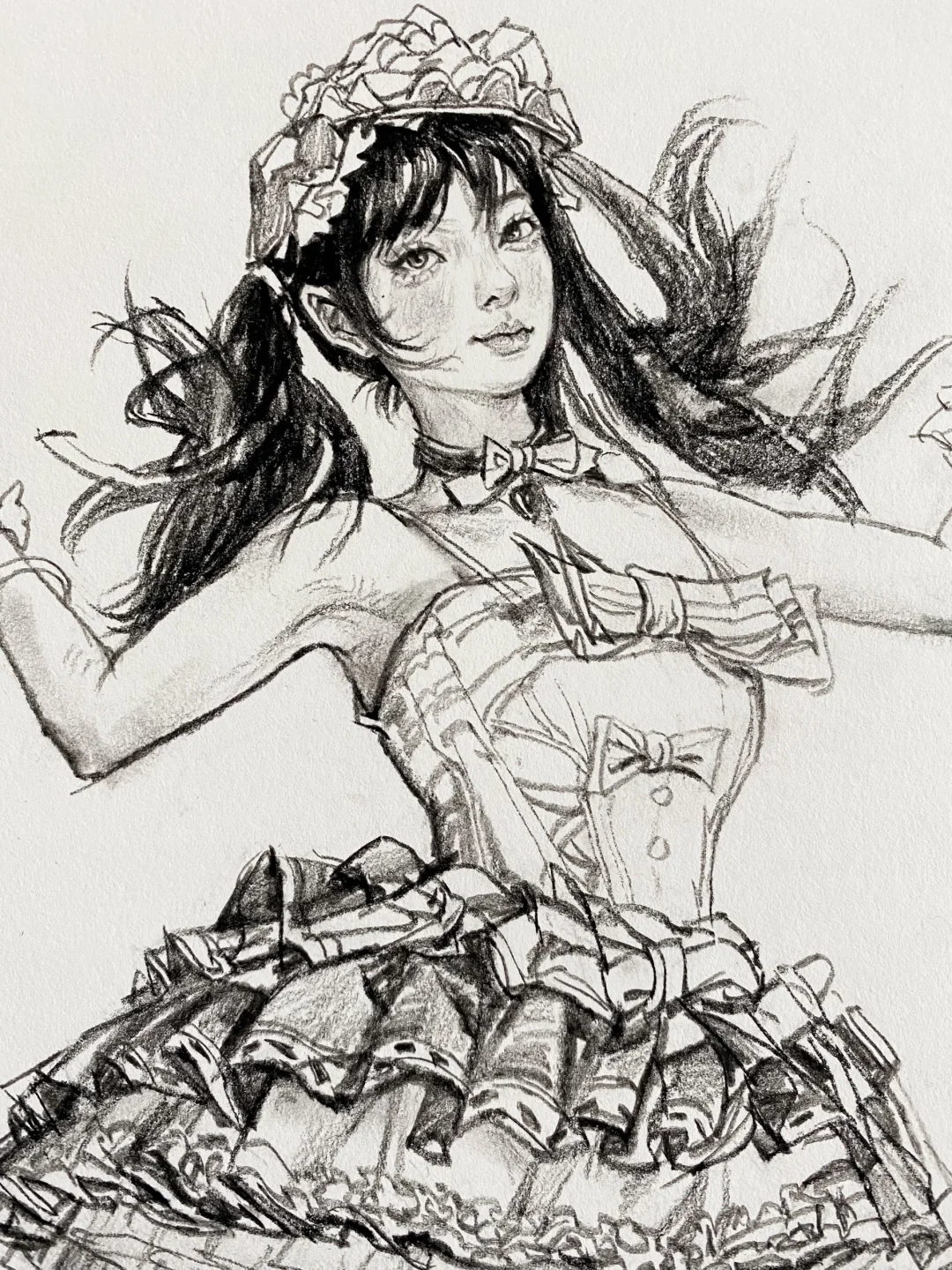 终于抽空撸完了一张,单人美女速写,周末愉快。\n