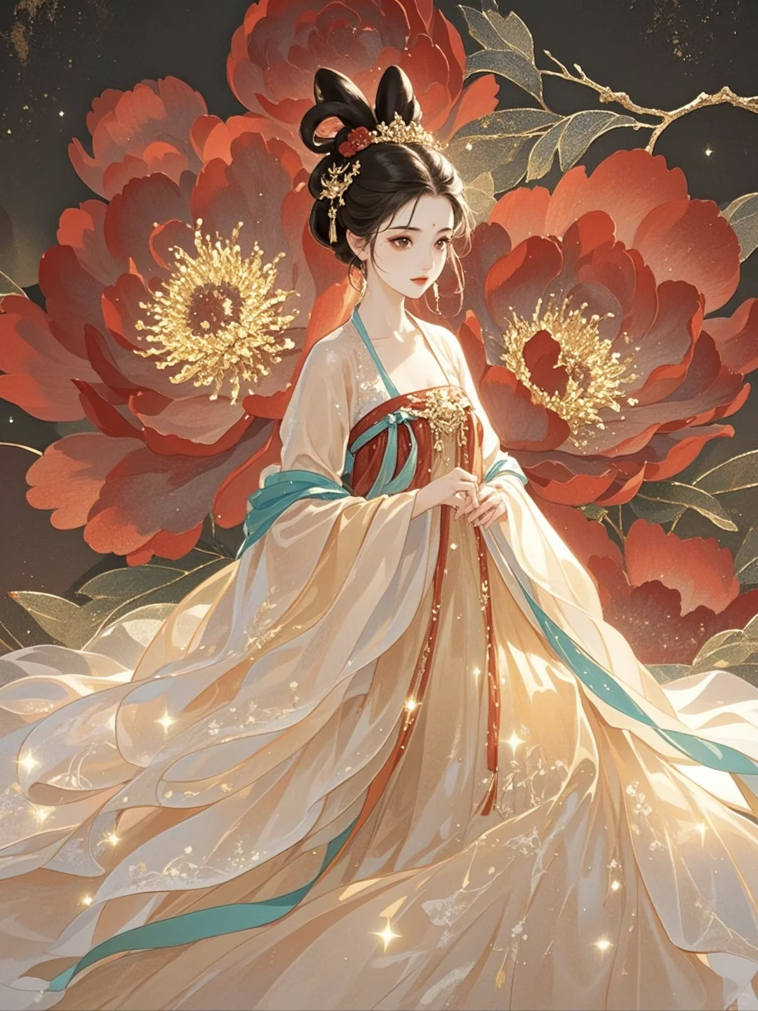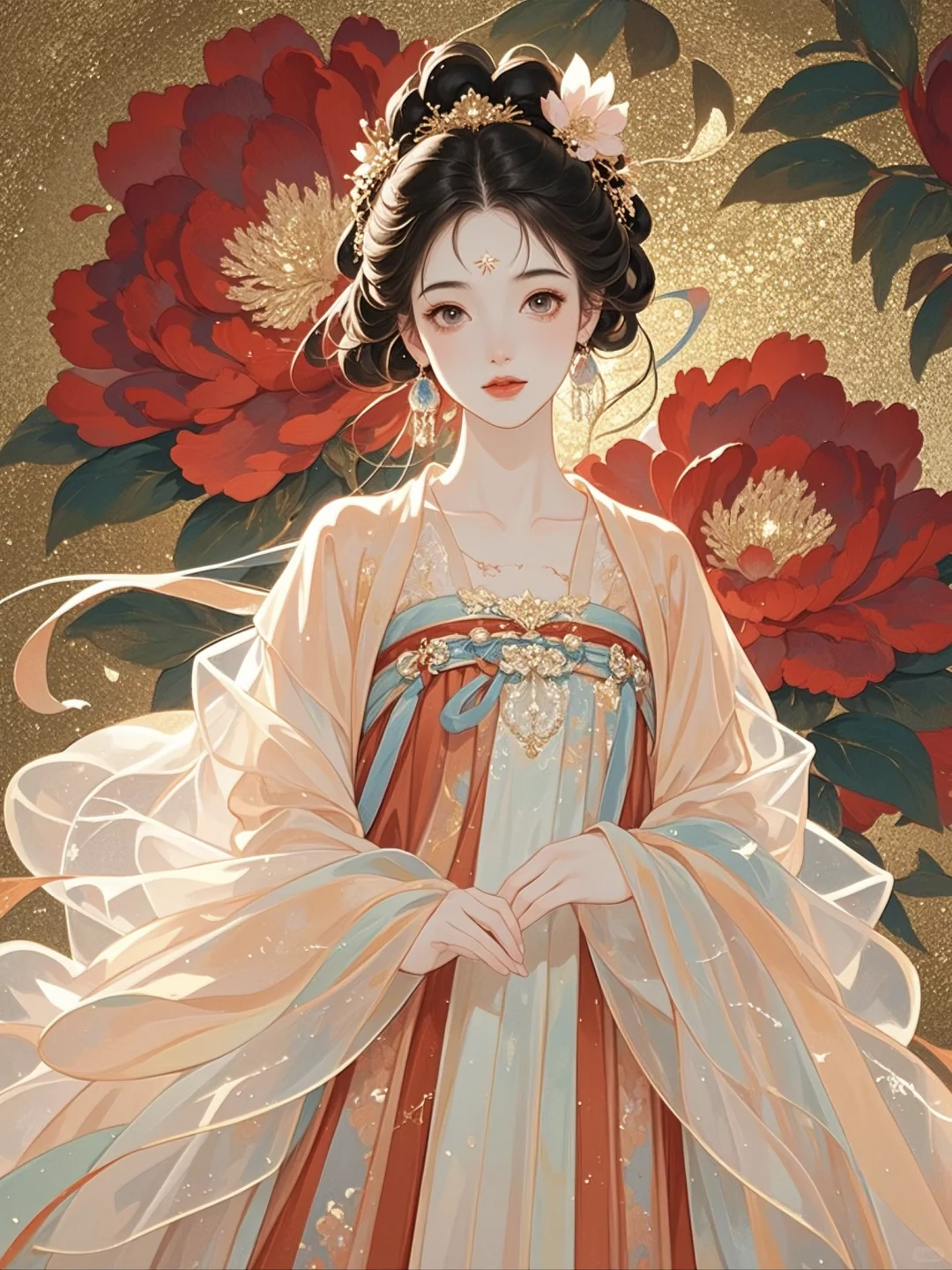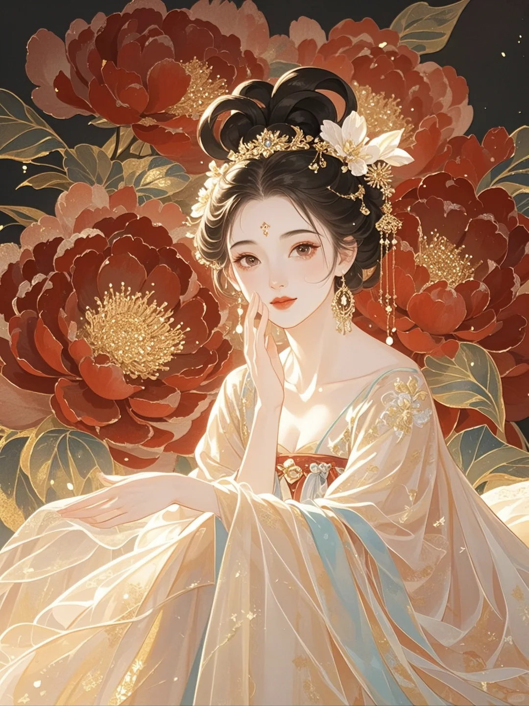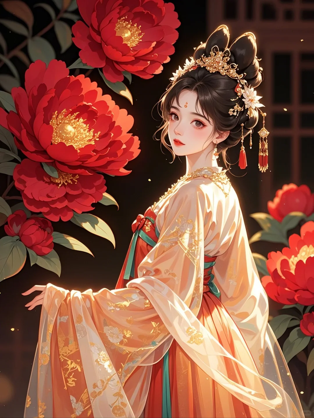 牡丹相伴,一袭华裳绽芳华