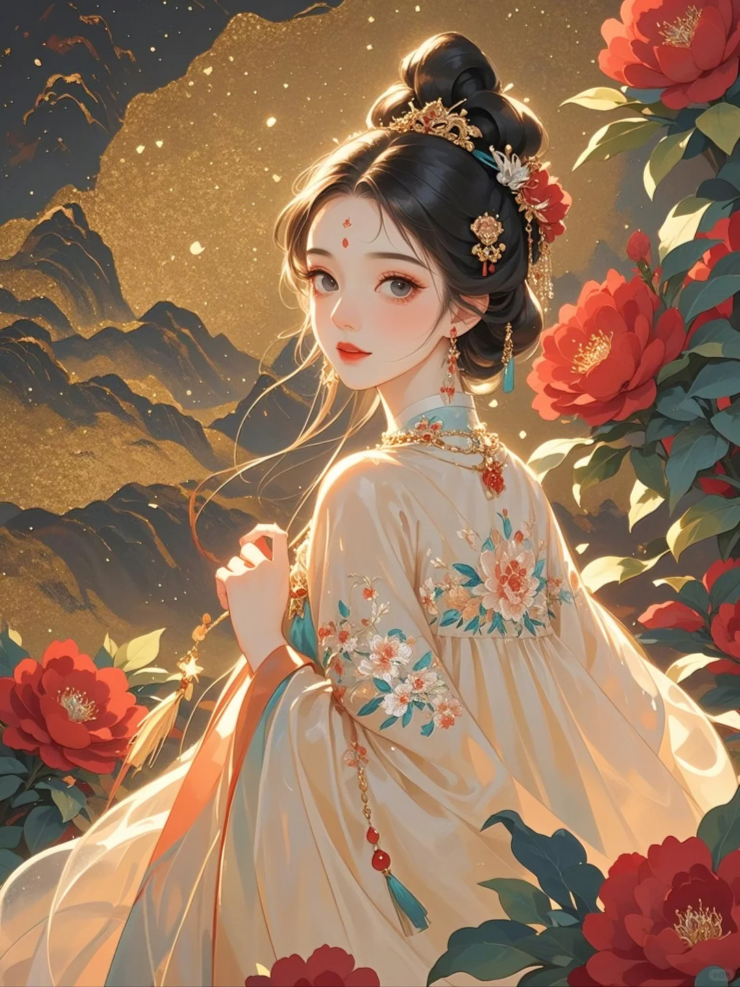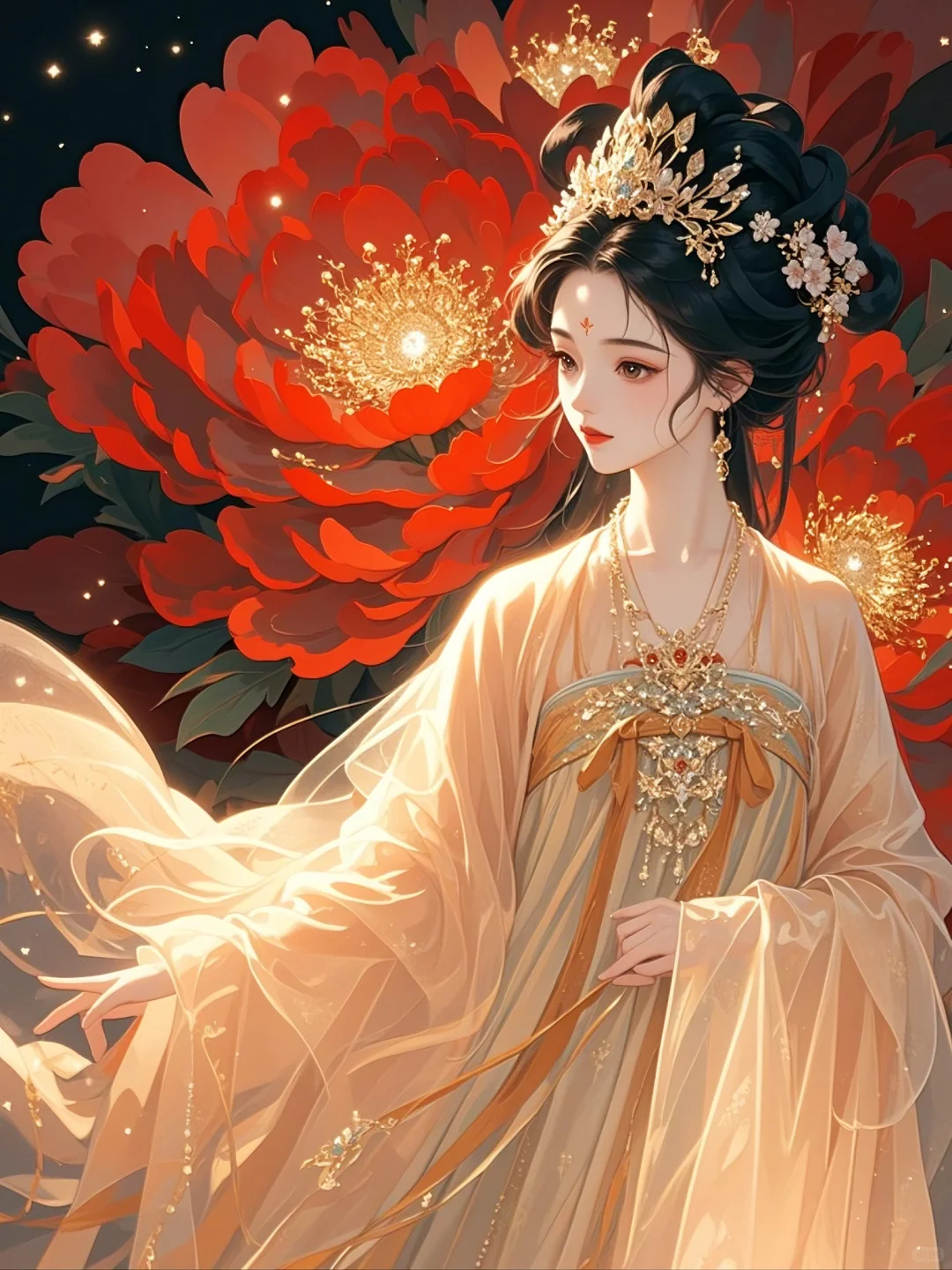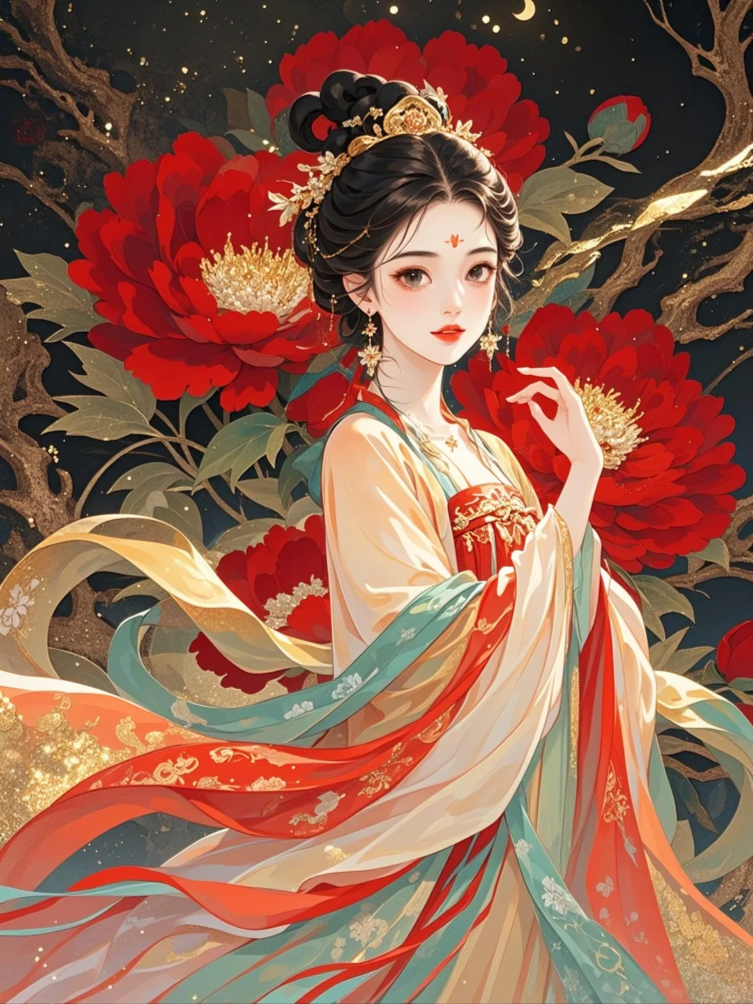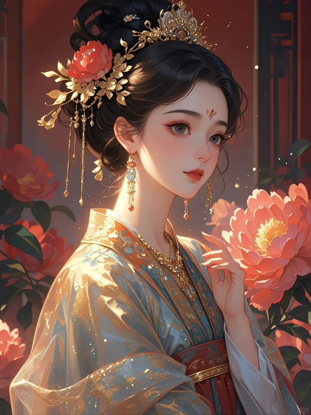 牡丹相伴,一袭华裳绽芳华
